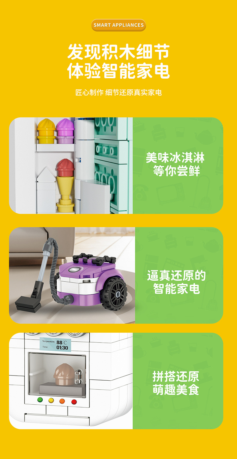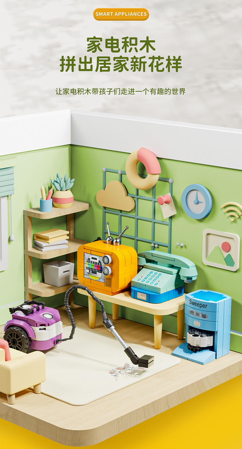 팡 오렌지 가전 세트 TV 냉장고 커피 머신 밥솥 조립 모델 어린이 조립 건물 블록 장난감 선물스토어 가기