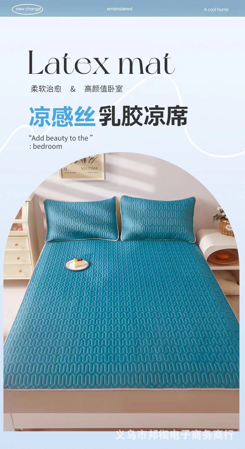 여름 라텍스 여름 매트 3 피스 세트 여름 가정용 기계 세탁기 아이스 실크 에어컨 소프트 매트 기숙사 싱글 여름 매트스토어 가기