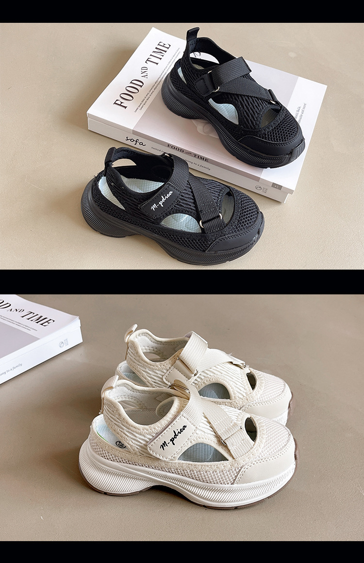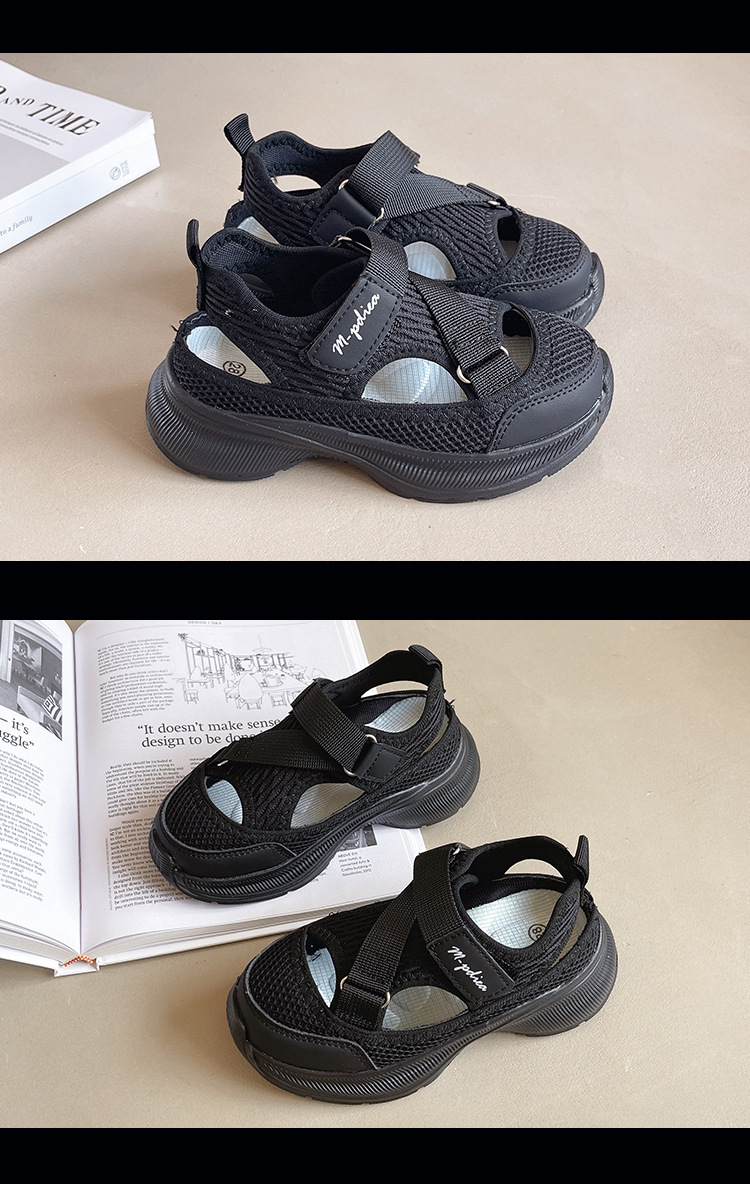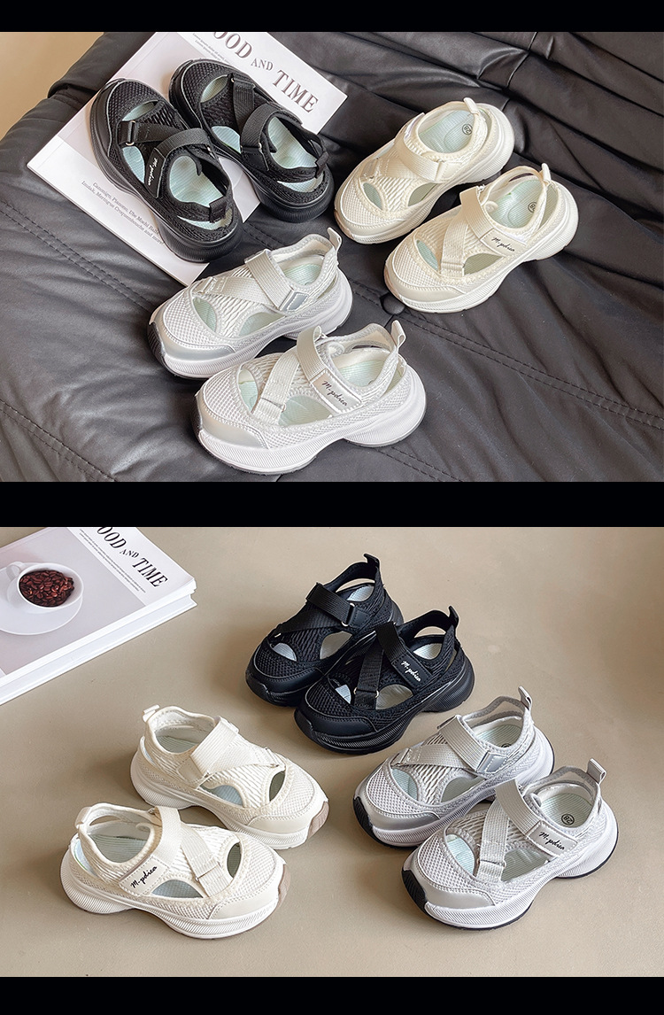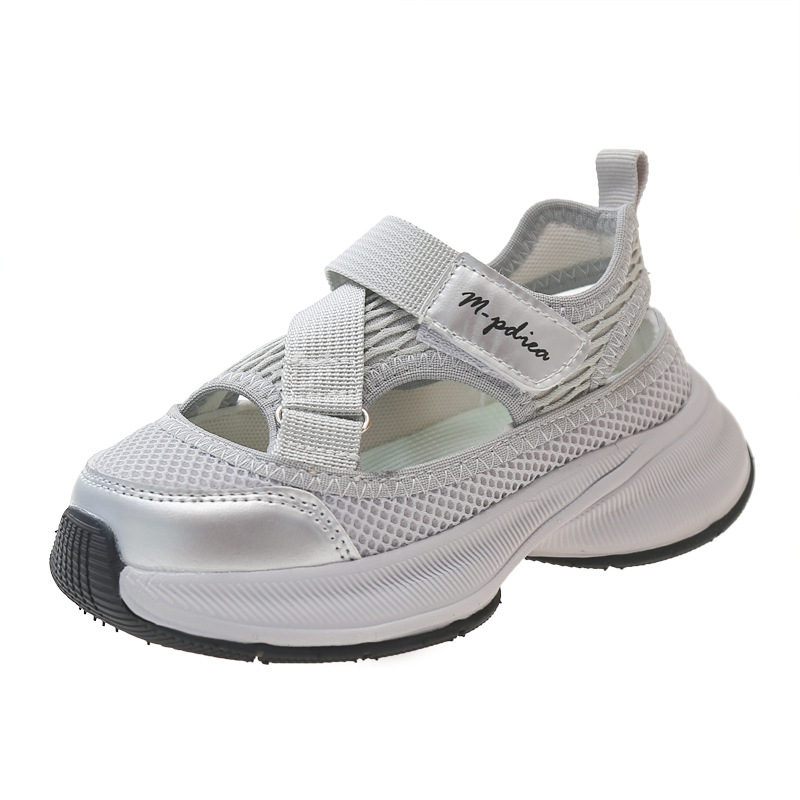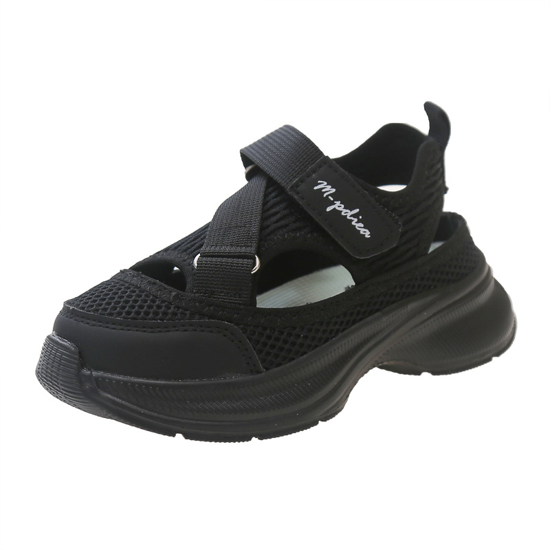 어린이 스포츠 샌들 2024 여름 새로운 싱글 그물 속이 빈 통기성 여성 신발 한국 소년 미끄럼 방지 비치 슈즈