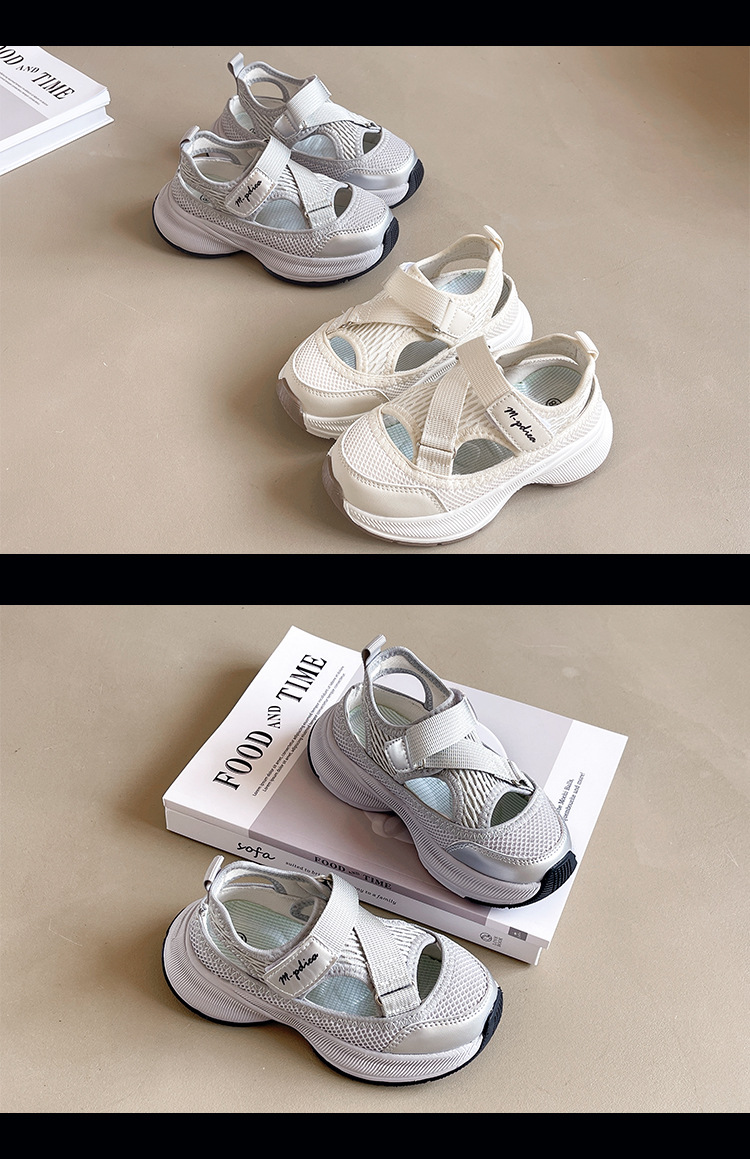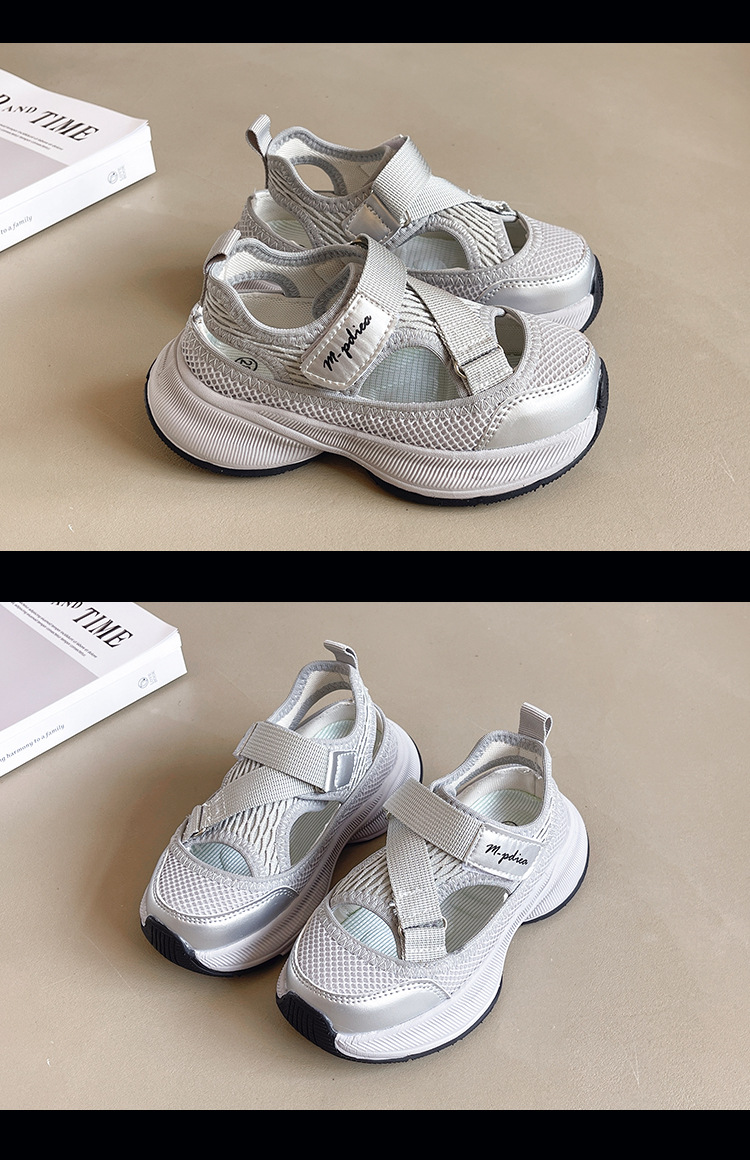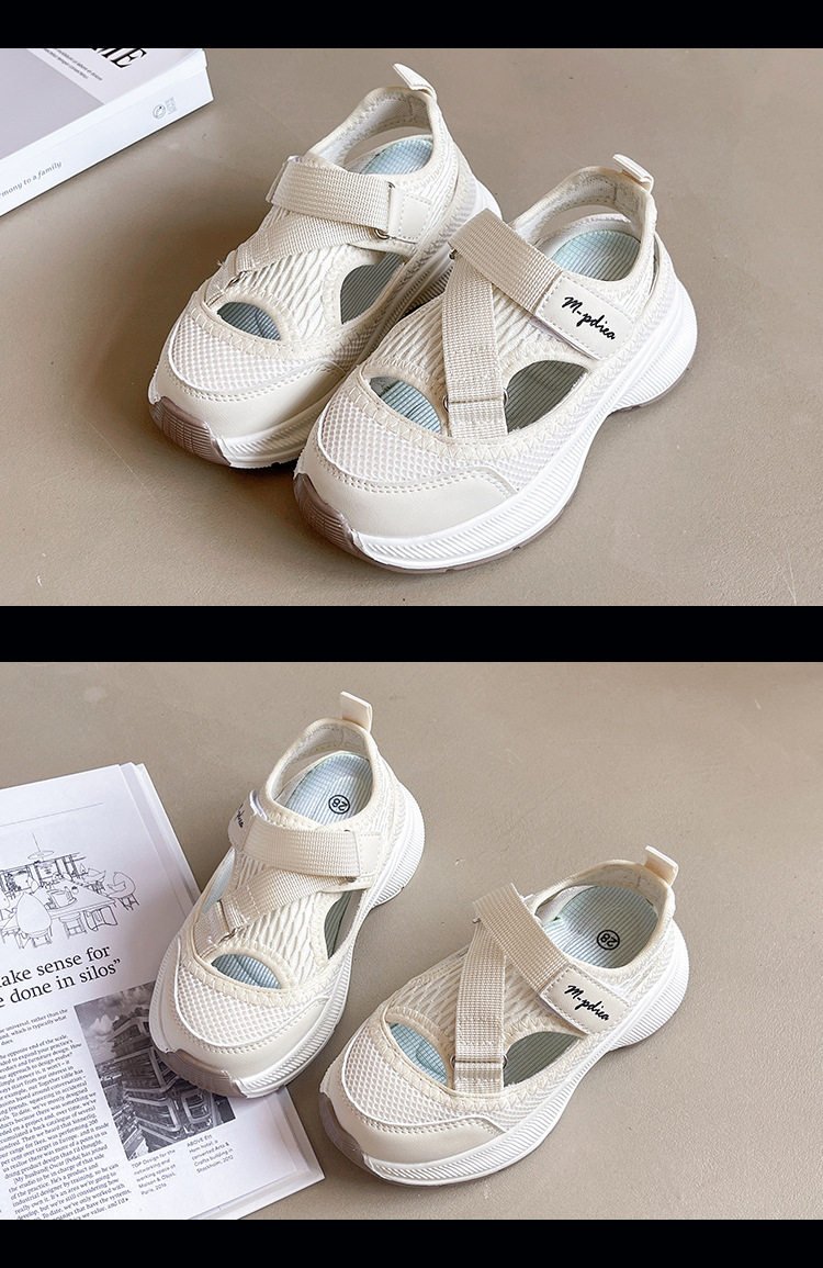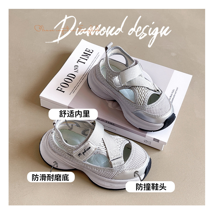 어린이 스포츠 샌들 2024 여름 새로운 싱글 그물 속이 빈 통기성 여성 신발 한국 소년 미끄럼 방지 비치 슈즈