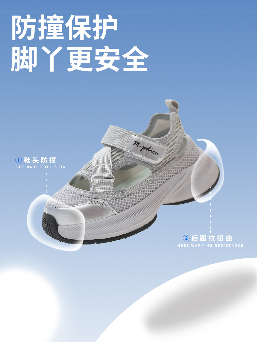 어린이 스포츠 샌들 2024 여름 새로운 싱글 그물 속이 빈 통기성 여성 신발 한국 소년 미끄럼 방지 비치 슈즈스토어 가기