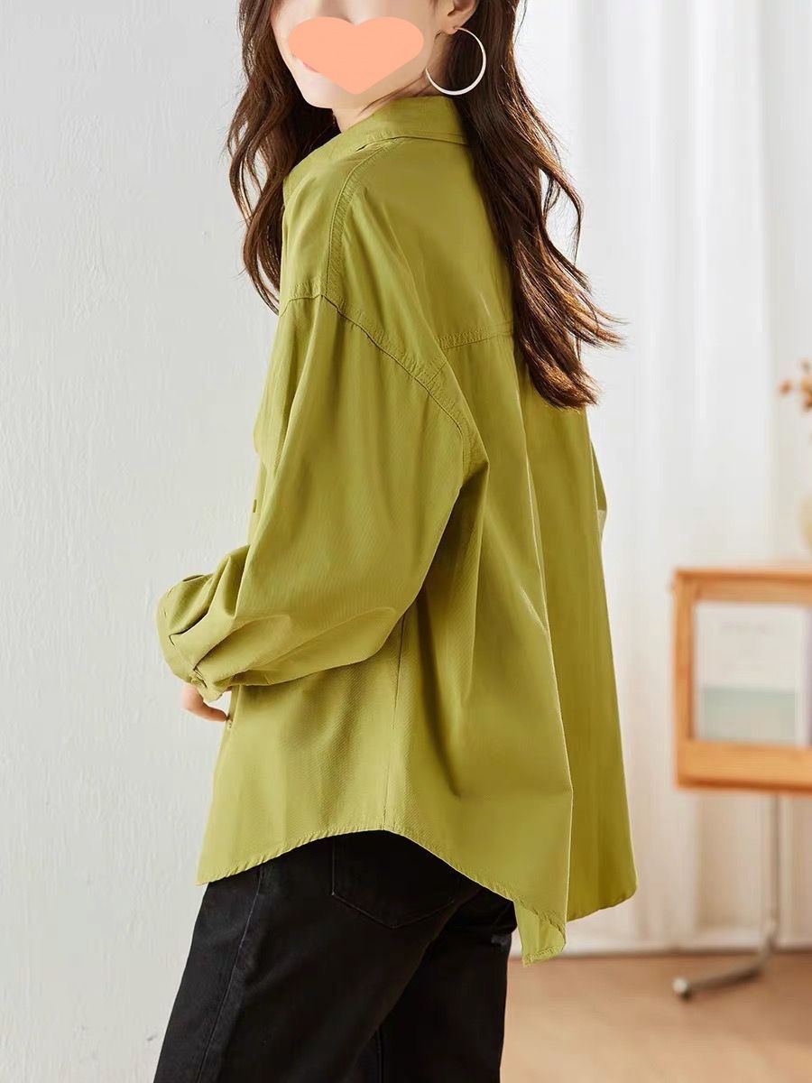 셔츠 코트 여성용 2024 새로운 봄과 가을 더블 포켓 순수 코튼 셔츠 고급 센스 스택 가을 그린 탑스토어 가기