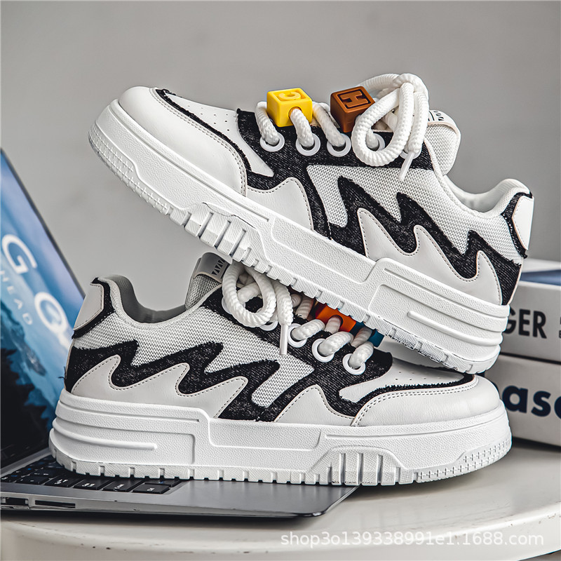 인터넷 인기있는 남성 신발 2024 새로운 여름 통기성 메쉬 올 매치 캐주얼 보드 신발 스포츠 높이 증가 화이트 트렌디 신발스토어 가기