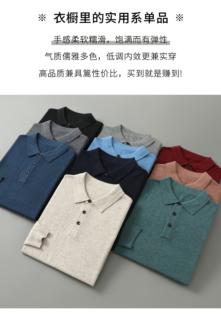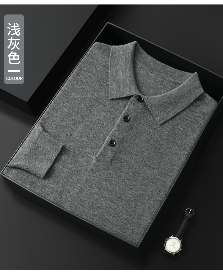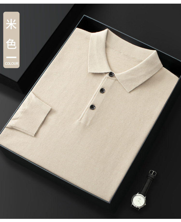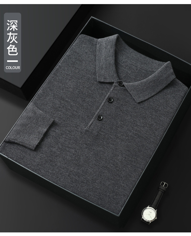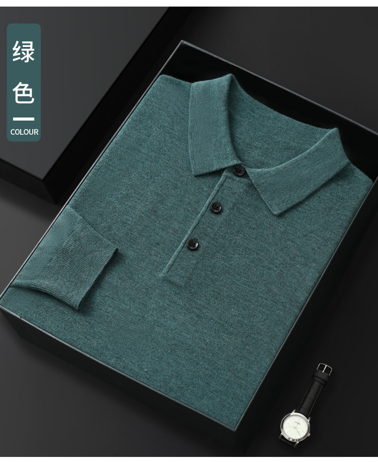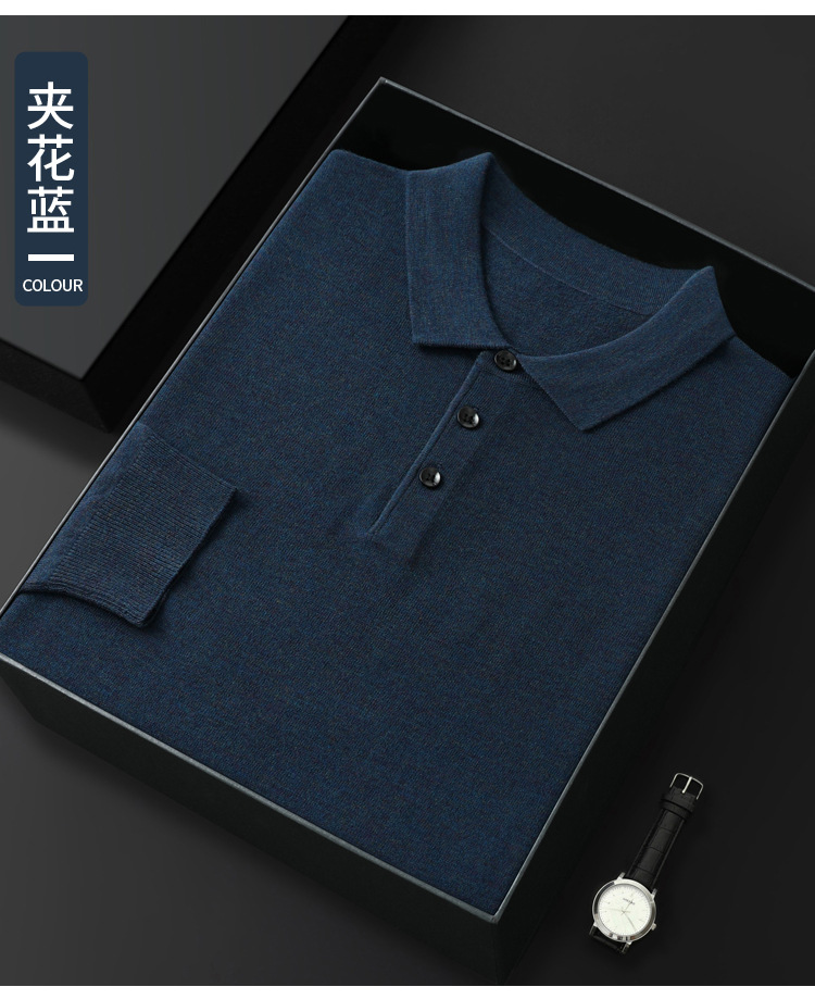 봄과 가을 새로운 패션 캐주얼 폴로 칼라 긴 소매 스웨터 남성용 솔리드 컬러 비즈니스 느슨한 풀 오버 탑