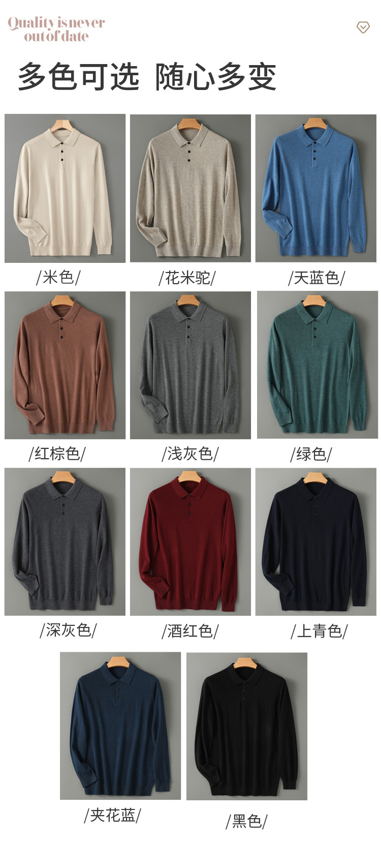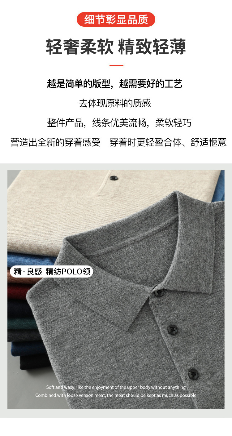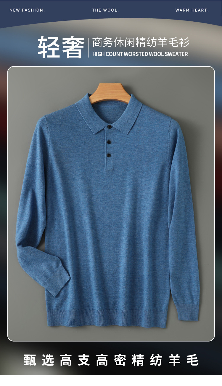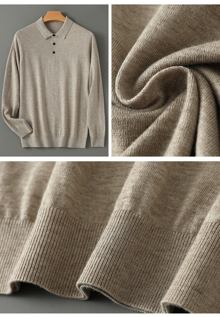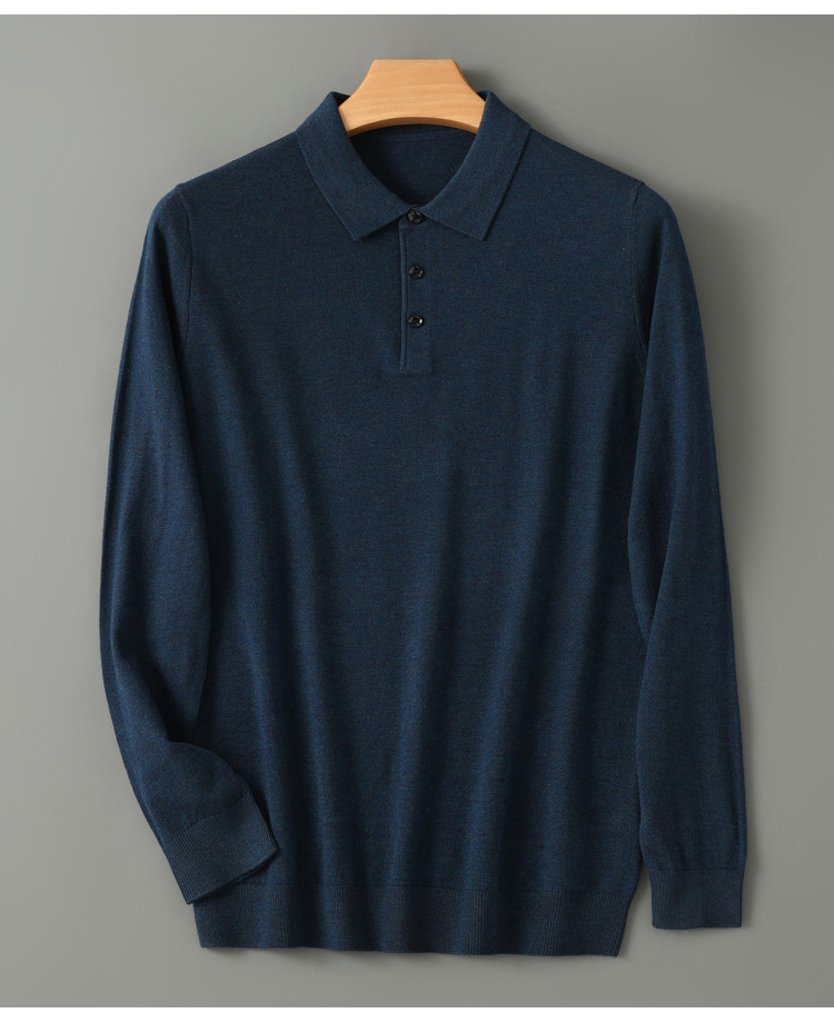 봄과 가을 새로운 패션 캐주얼 폴로 칼라 긴 소매 스웨터 남성용 솔리드 컬러 비즈니스 느슨한 풀 오버 탑