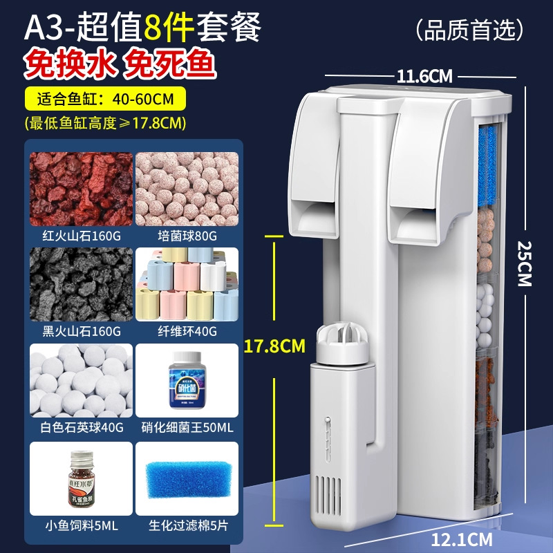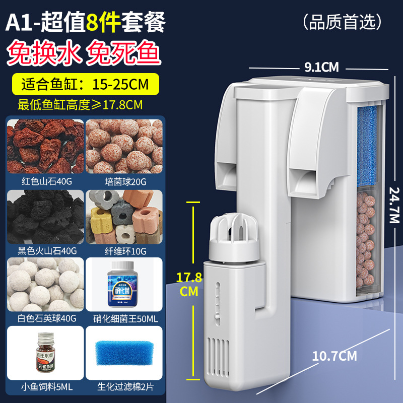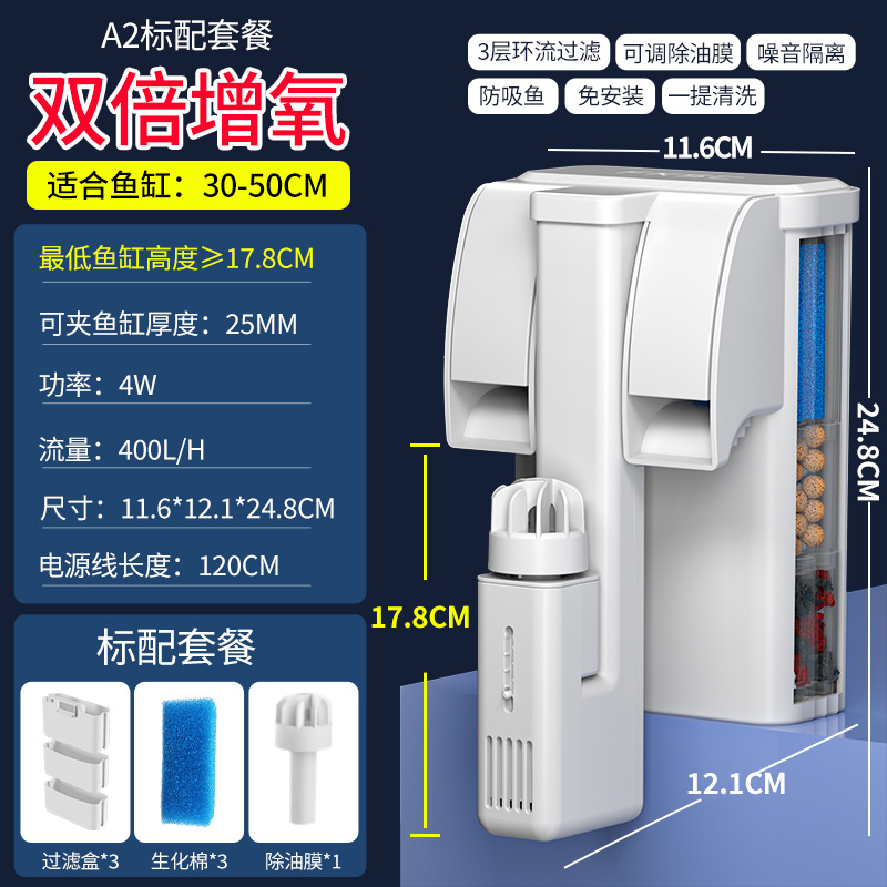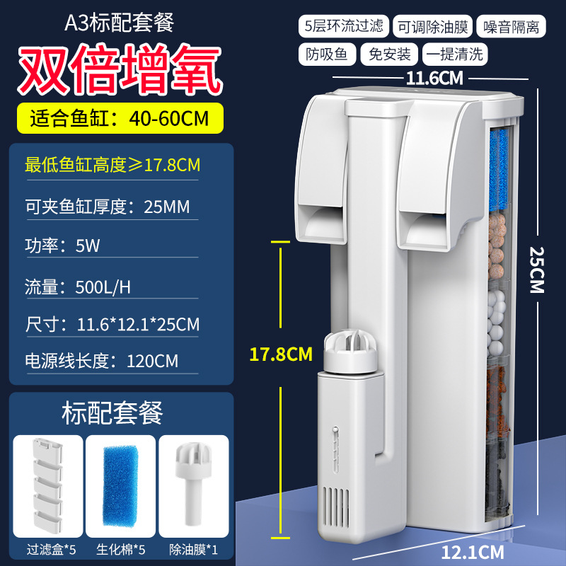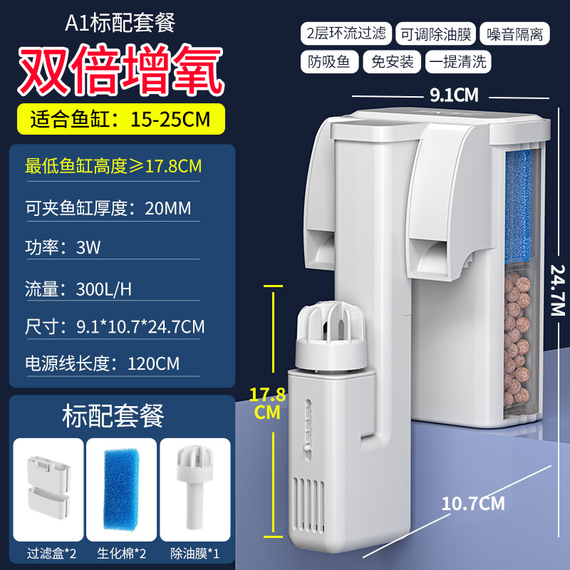 소형 어항 외부 벽걸이형 필터, 기름막 제거, 산소 공급, 여과 및 정수 3-in-1 코형 필터스토어 가기