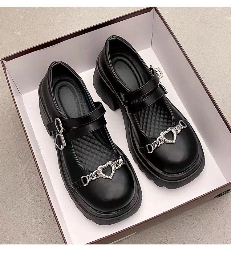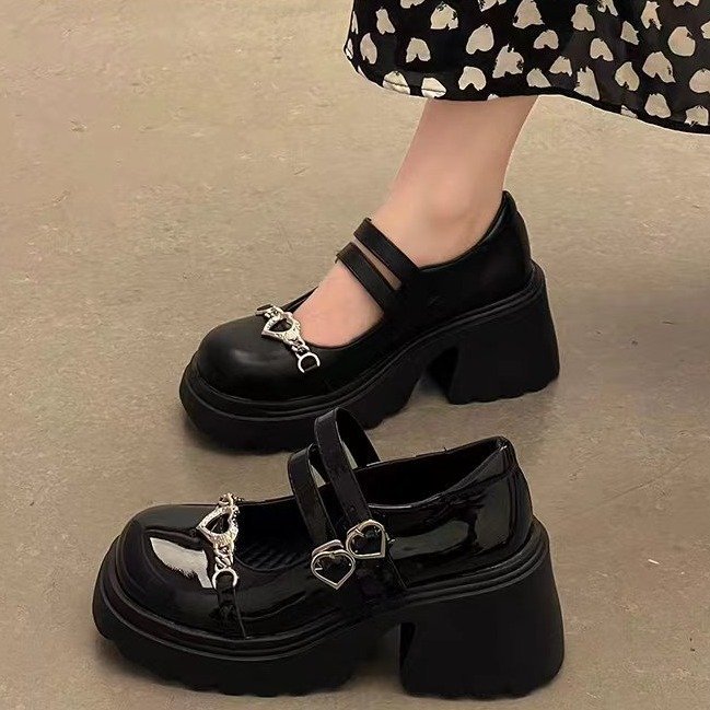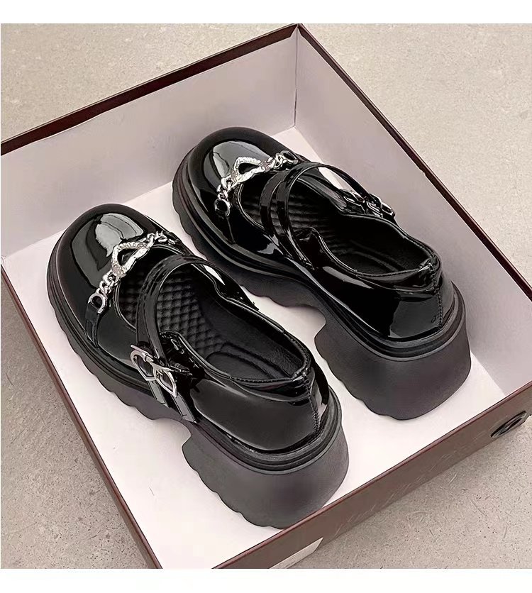 일본 사랑 라인스톤 블랙 jk 여성용 작은 가죽 신발 2025 봄 새로운 두꺼운 밑창 높이 증가 패션 두꺼운 굽 신발스토어 가기