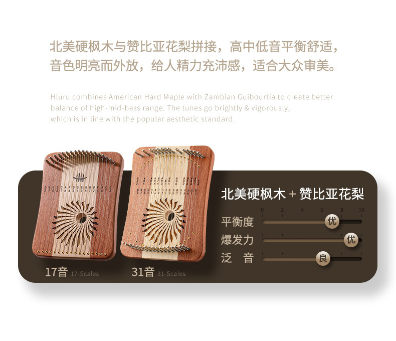 Lu Ru Finger Stringers 17 톤/31 톤 엄지 뮤지컬 싱글 플레이트 리틀 하프 배우기 쉬운 Laia Cross Border 재고 악기
