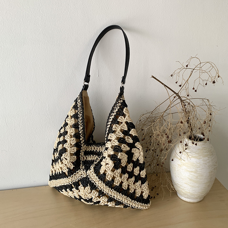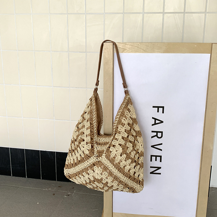 국경 간 공급 중공 컬러 짠 가방 여름 밀짚 어깨 가방 해변 복고풍 짠 가방 숄더백