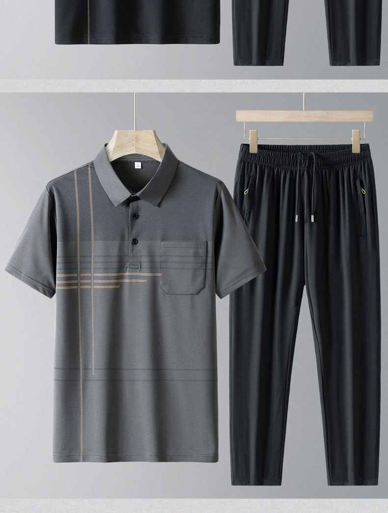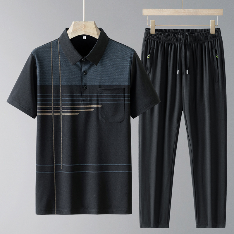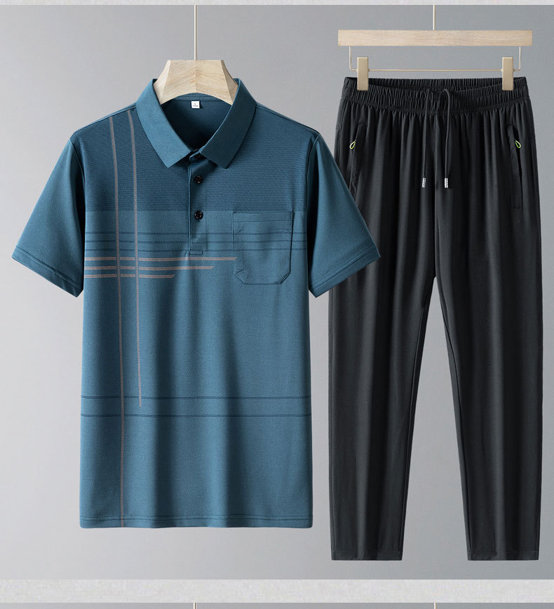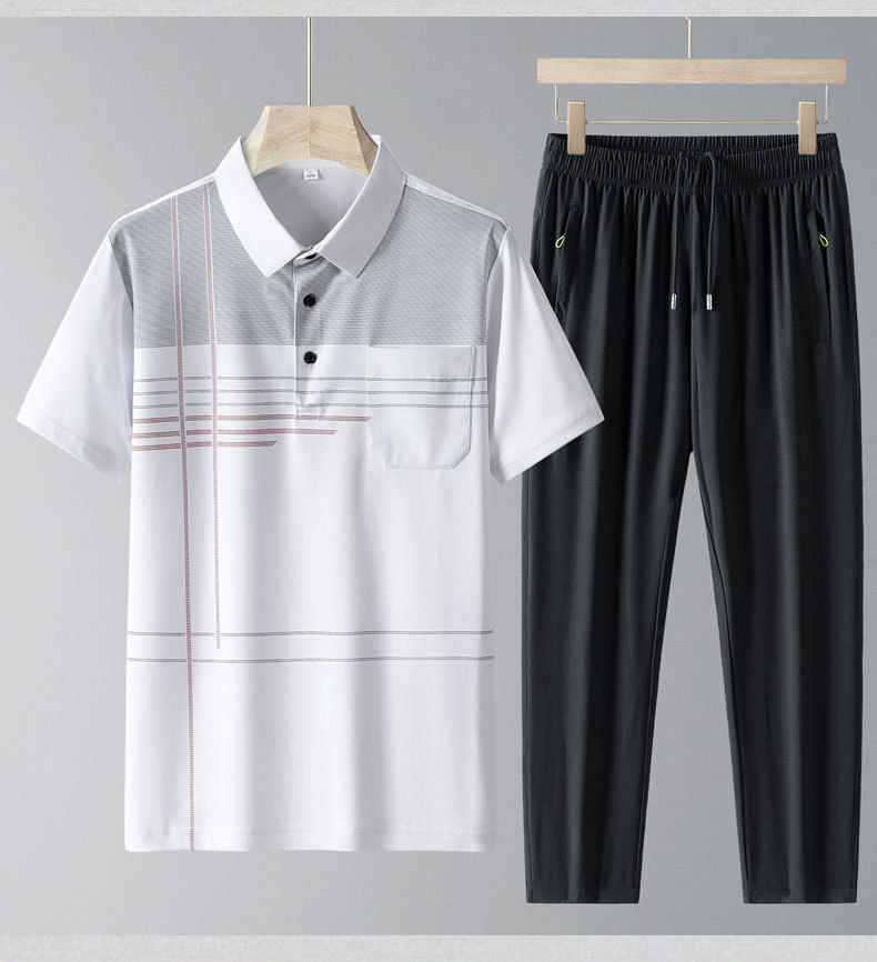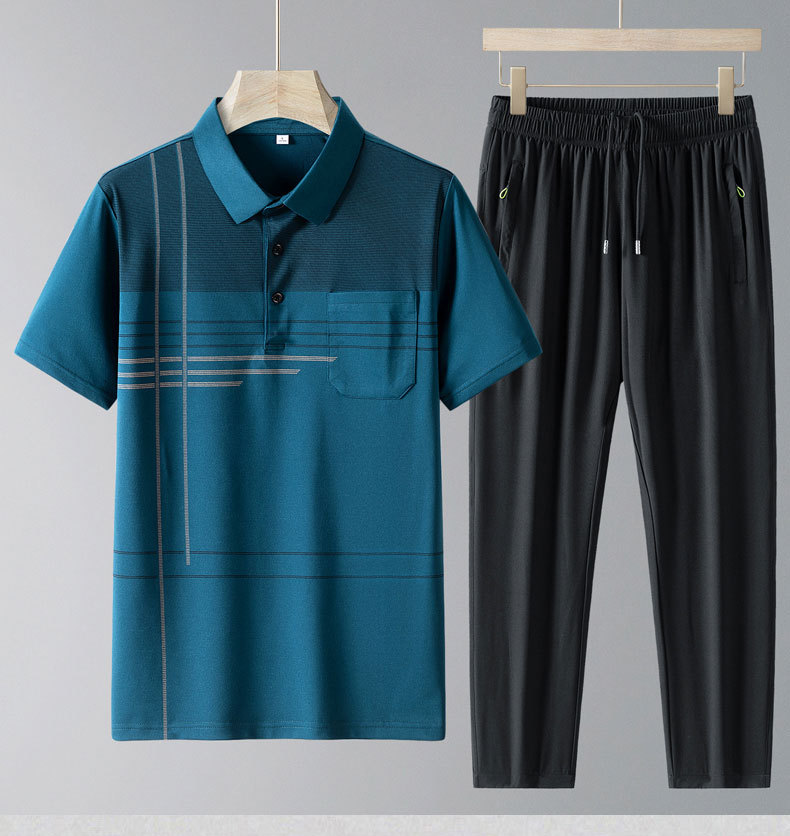 아빠 여름 옷 아이스 실크 스포츠 세트 남자 여름 반팔 바지 남자 캐주얼 운동복 중년 및 노인 투피스 세트
