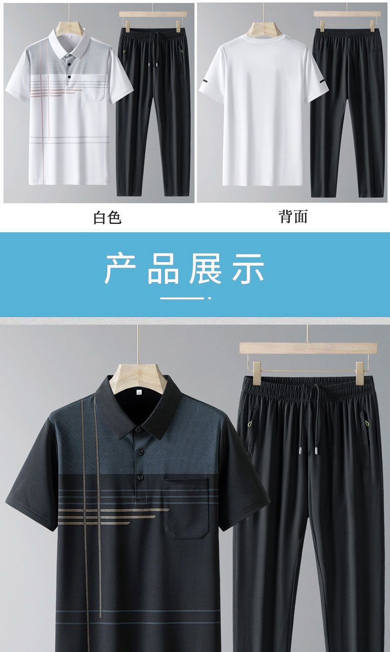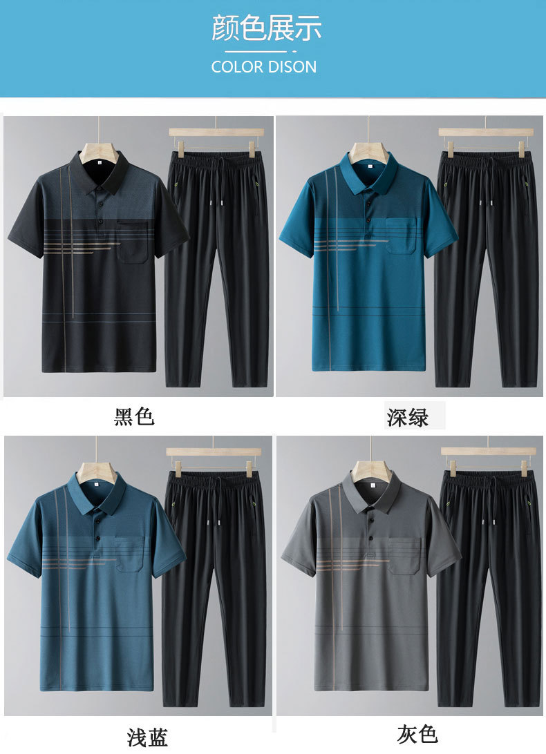 아빠 여름 옷 아이스 실크 스포츠 세트 남자 여름 반팔 바지 남자 캐주얼 운동복 중년 및 노인 투피스 세트스토어 가기