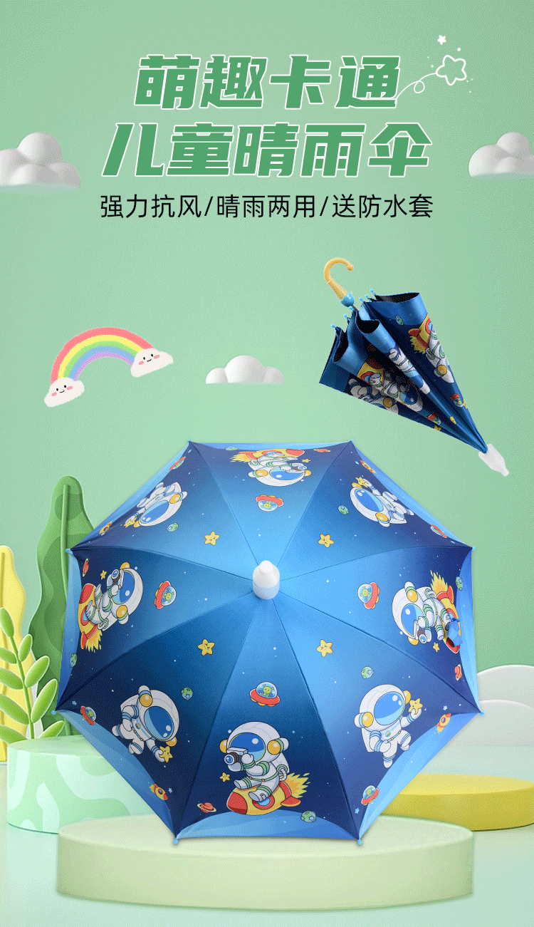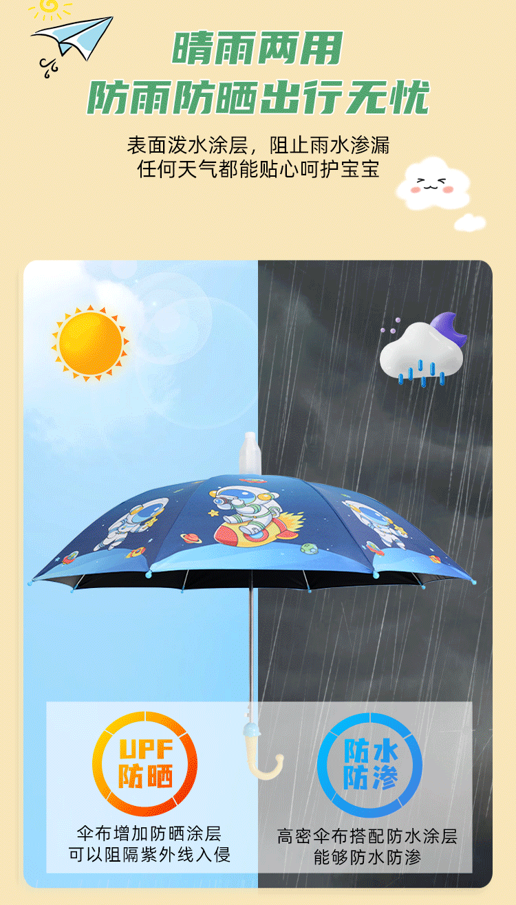 어린이 우산 초등학교 긴 손잡이 방수 케이스 남학생과 여학생을위한 특수 작은 우산 맑고 비오는 이중 사용 스트레이트 로드 우산