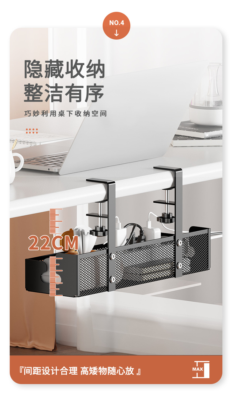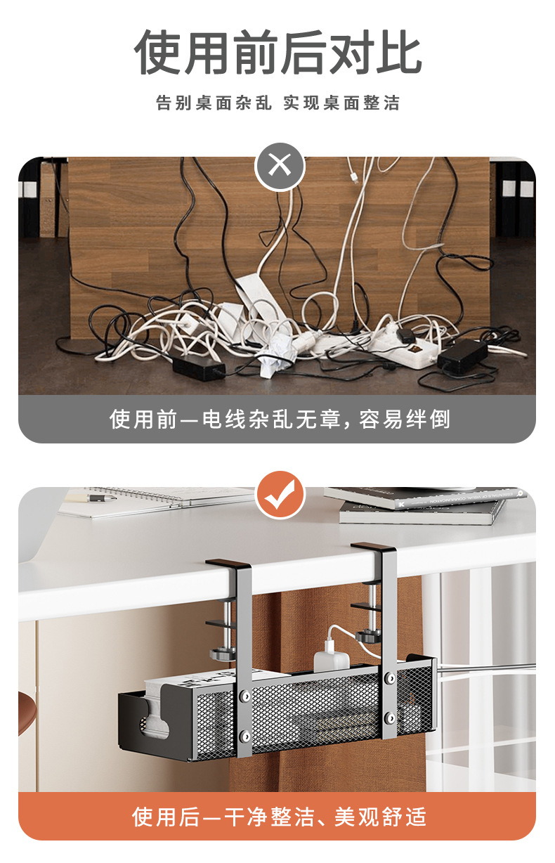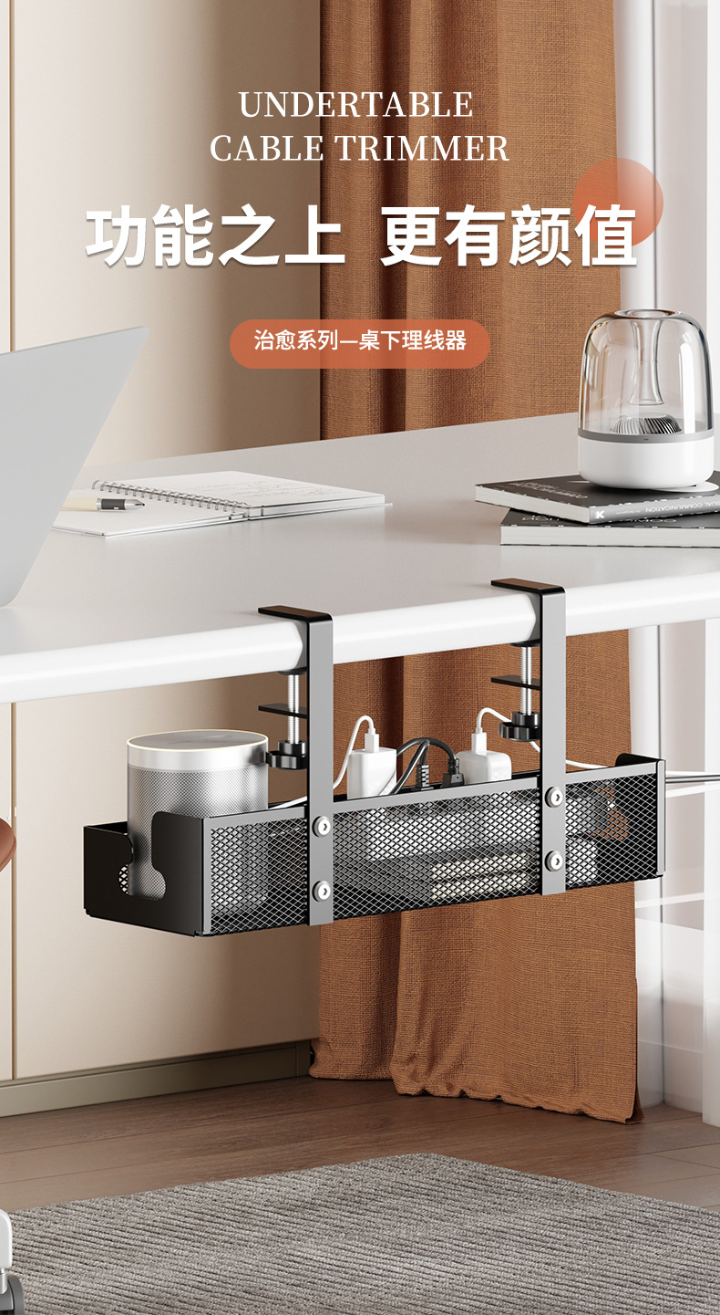 망사형 케이블 정리대 탄소강 무타공 책상 아래 케이블 정리대 책상 밑 전선 플러그보드 수납 선반 도매