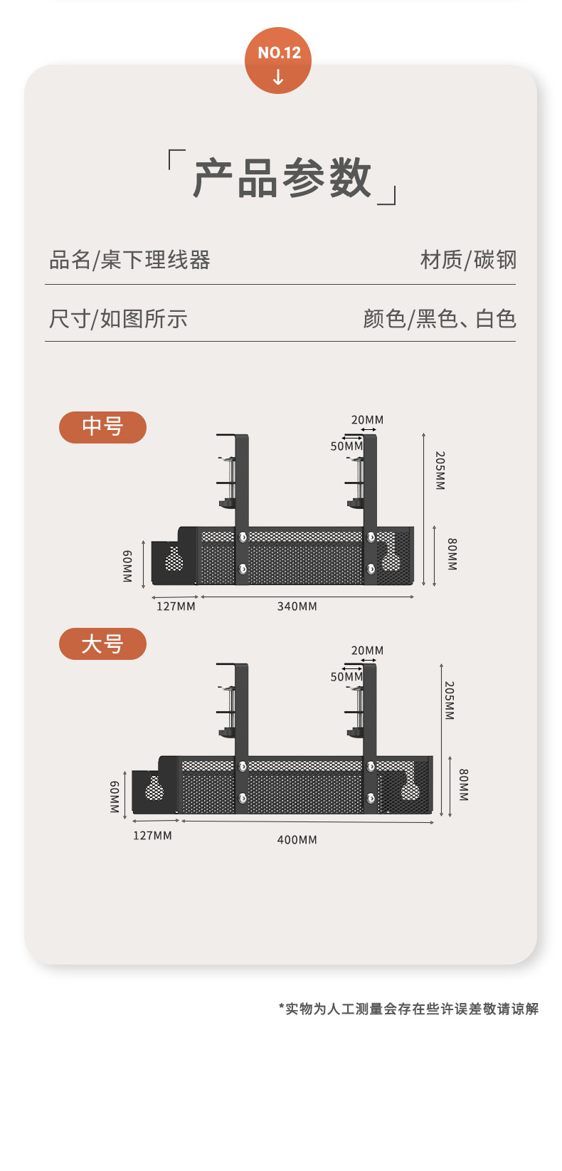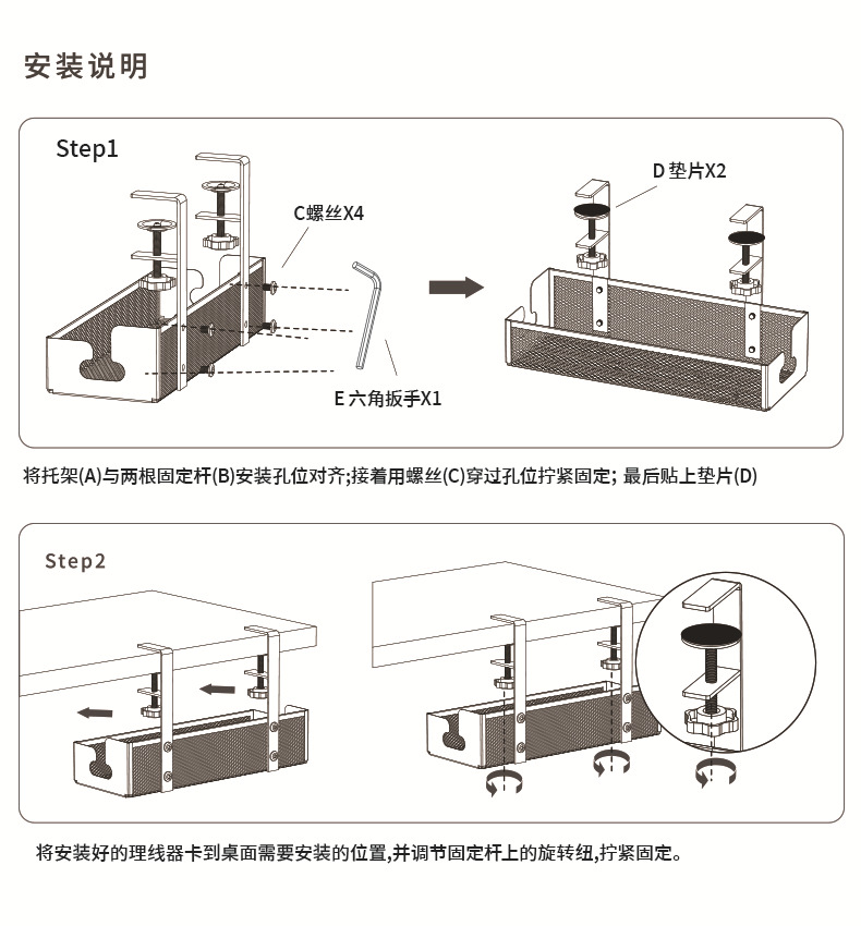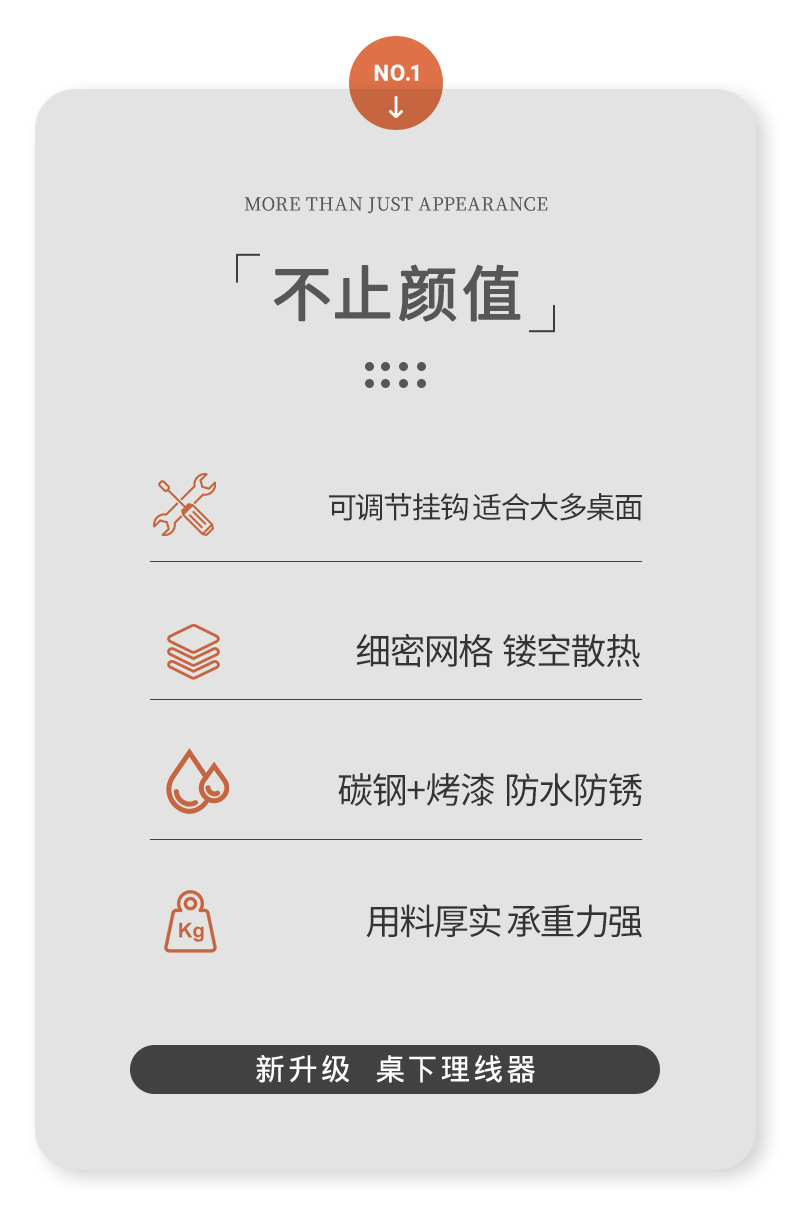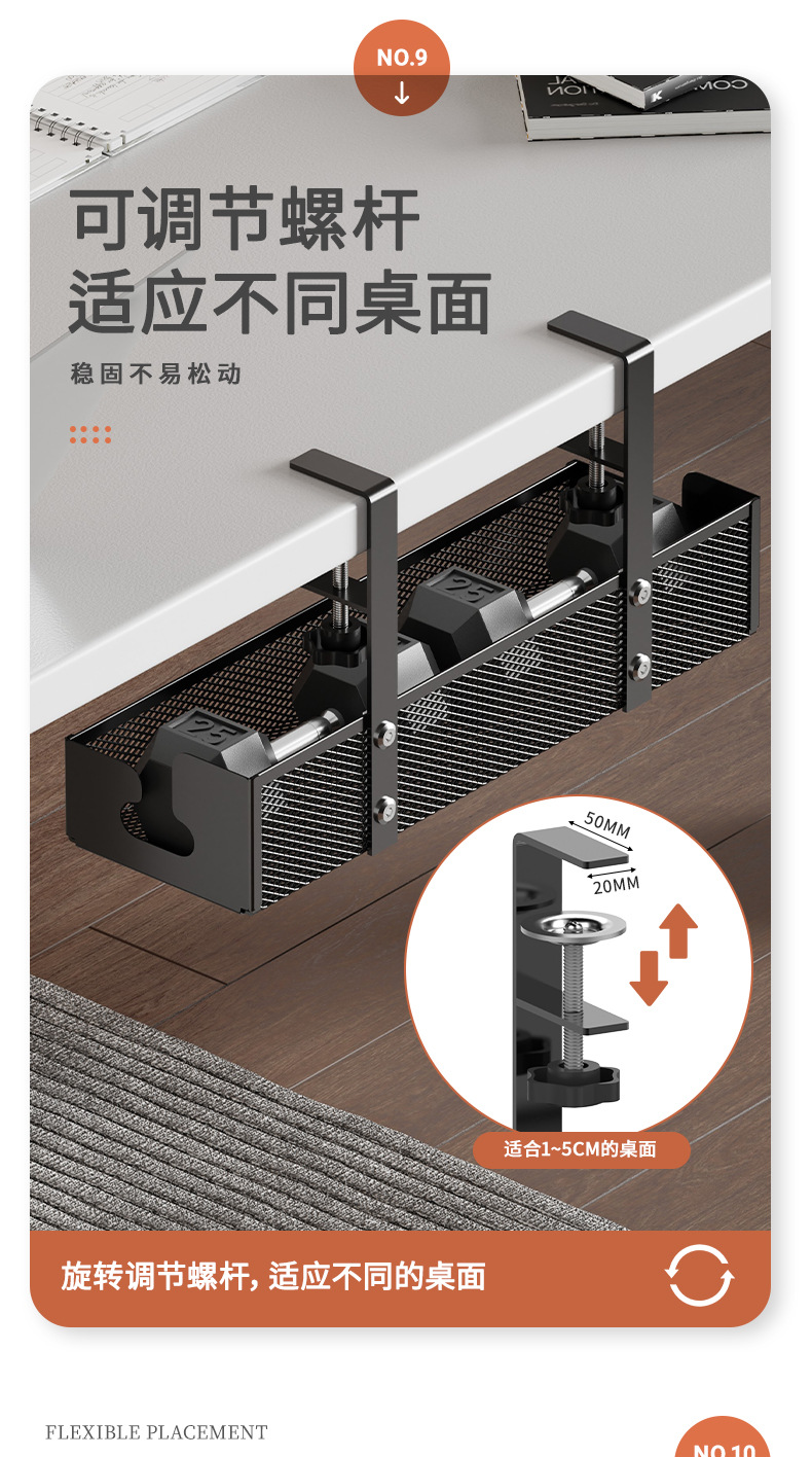 망사형 케이블 정리대 탄소강 무타공 책상 아래 케이블 정리대 책상 밑 전선 플러그보드 수납 선반 도매