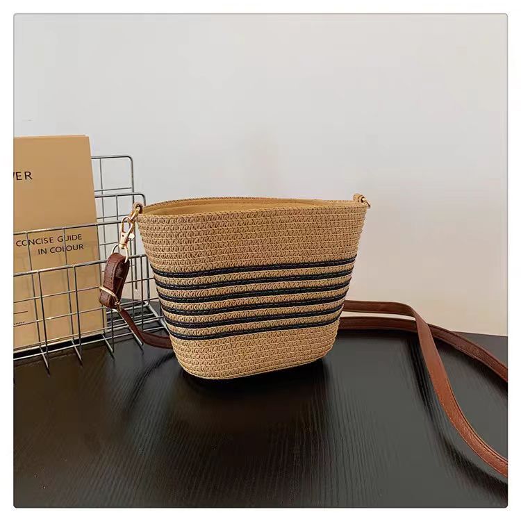 일본 줄무늬 크로스 바디 백 여름 새 밀짚 짠 작은 가방 한국 스타일 유행 캐주얼 어깨 작은 배낭