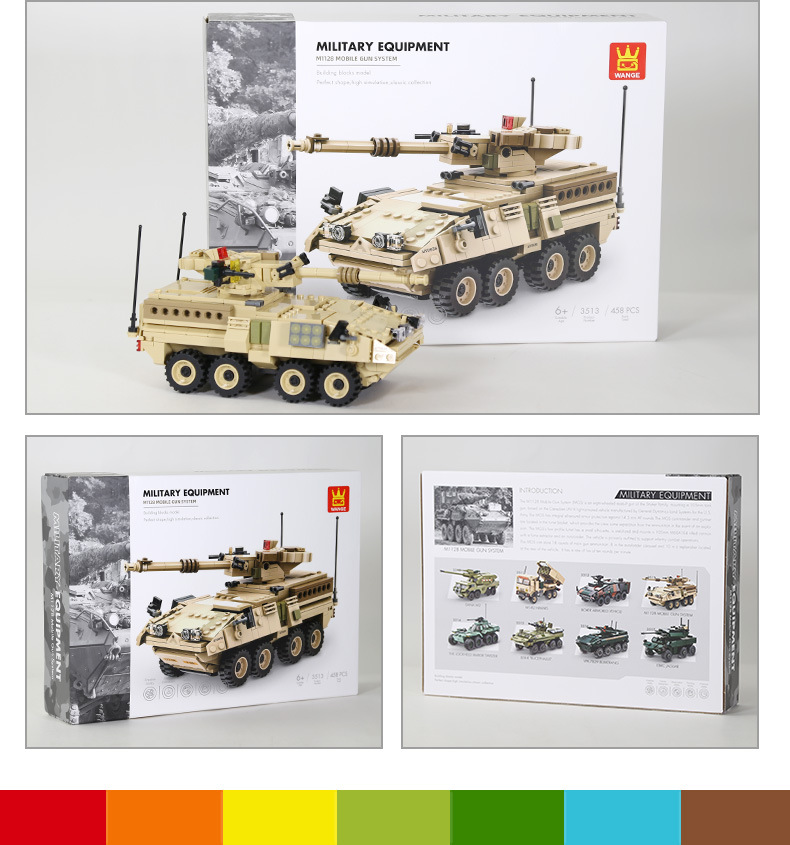 Wange 빌딩 블록 작은 입자 호환 빌딩 블록 탱크 스트라이크 모바일 포병 장갑차 방공 차량 3513