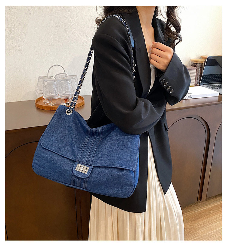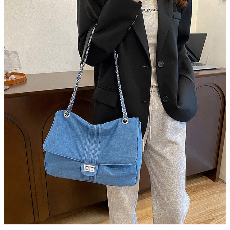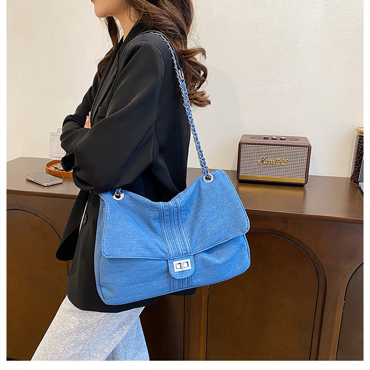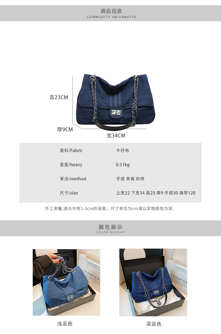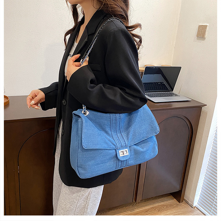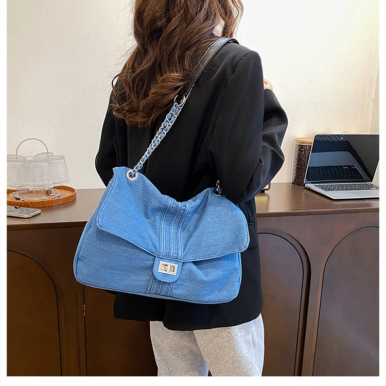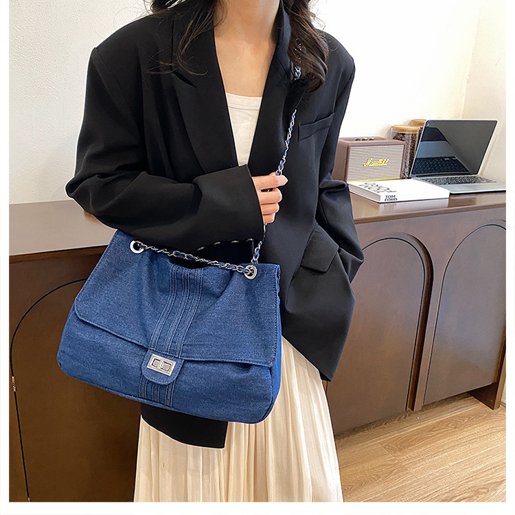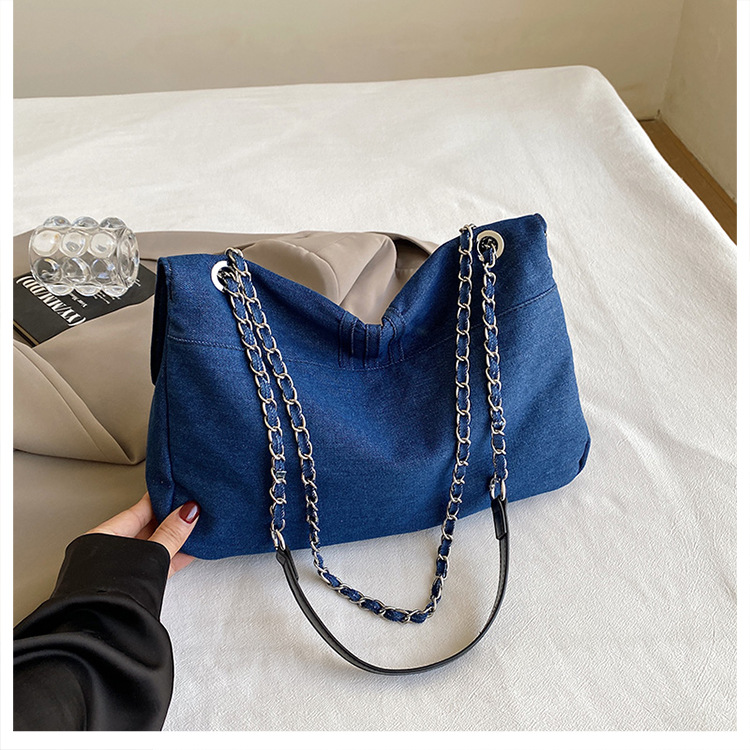 데님 가방 여성용 가방 대용량 2024 새로운 올 매치 통근 체인 어깨 크로스 바디 백 하이 엔드 토트 백