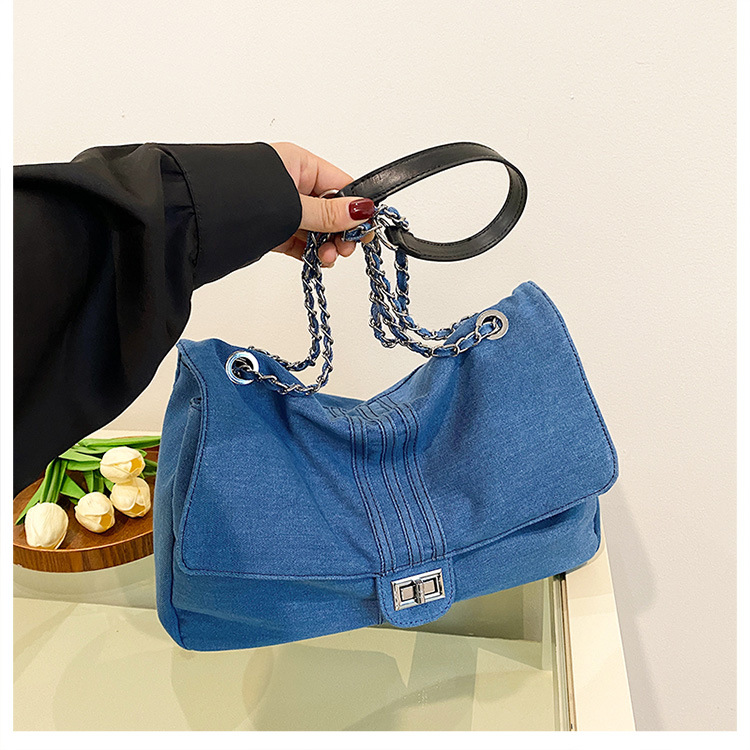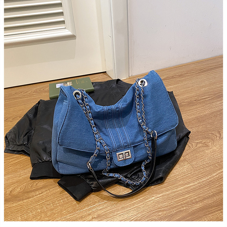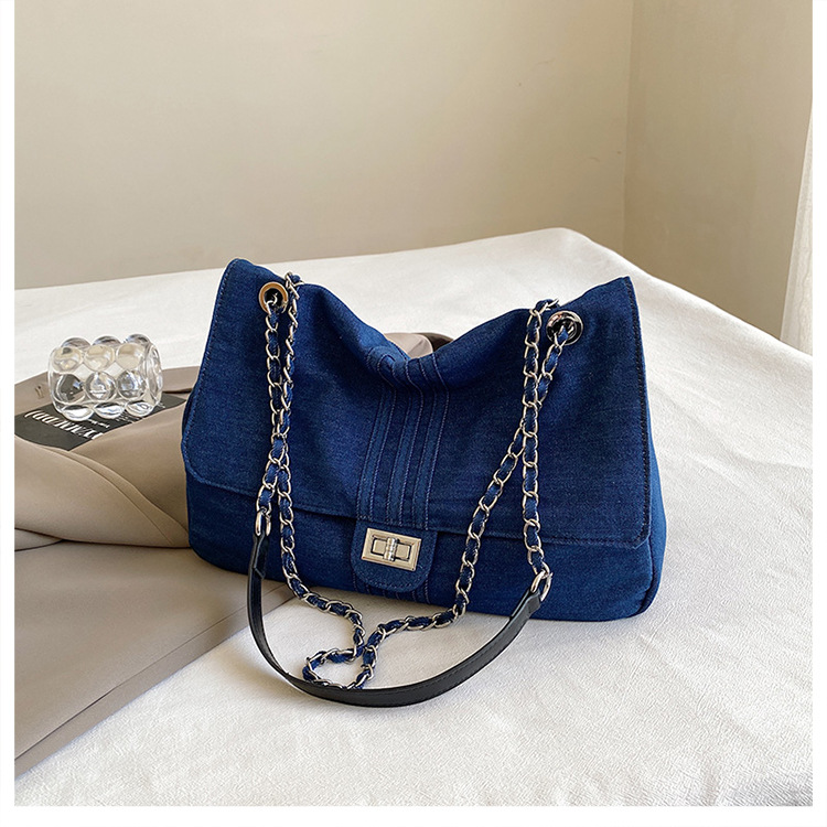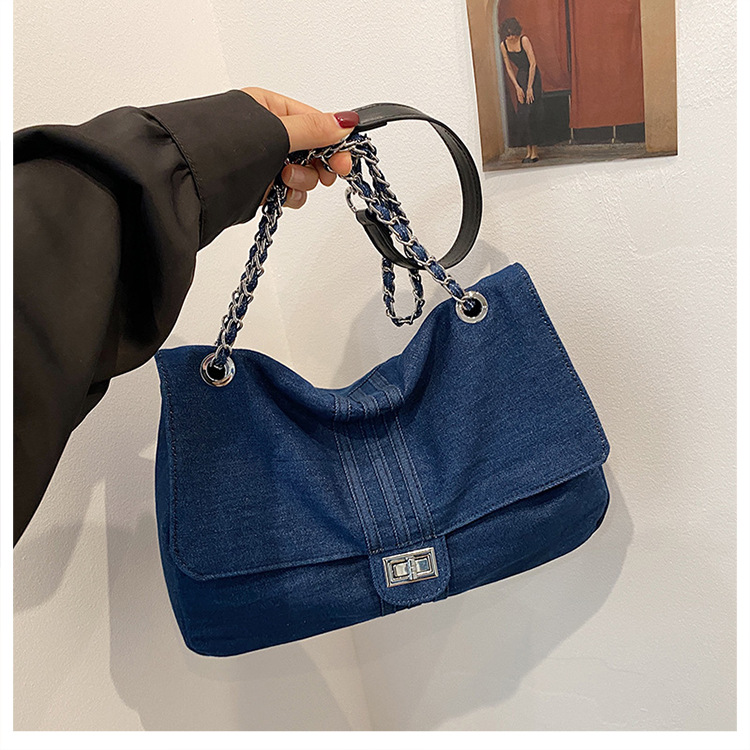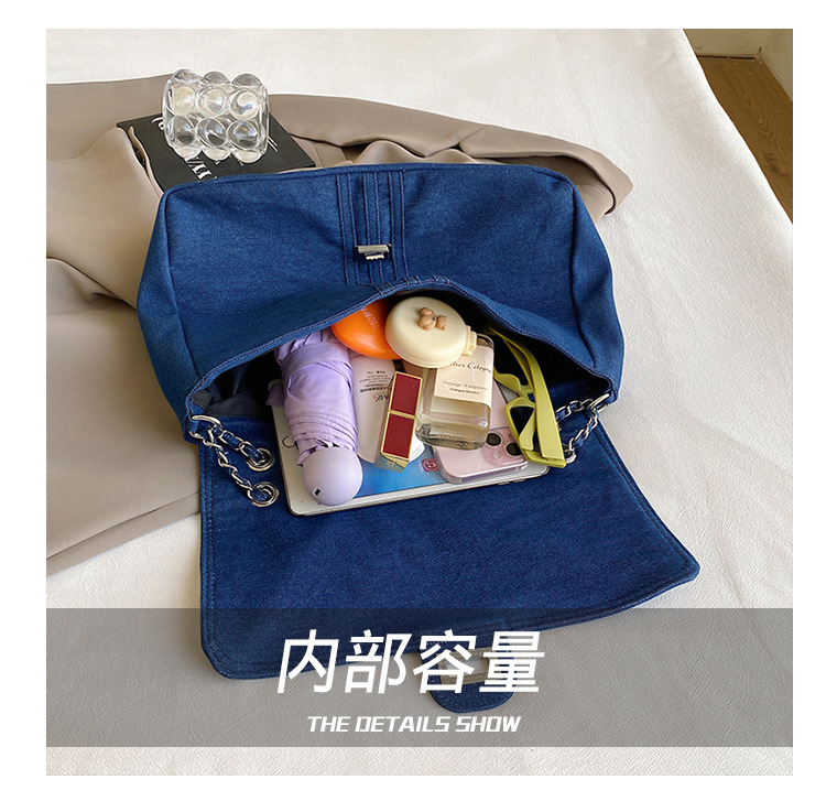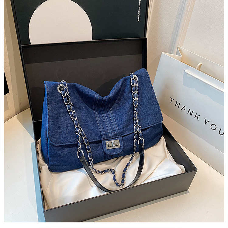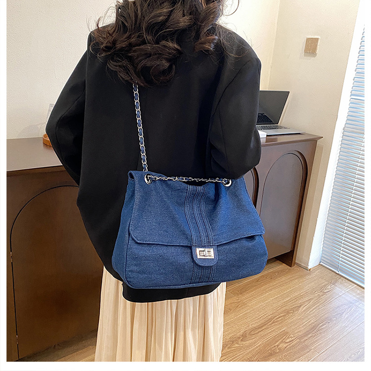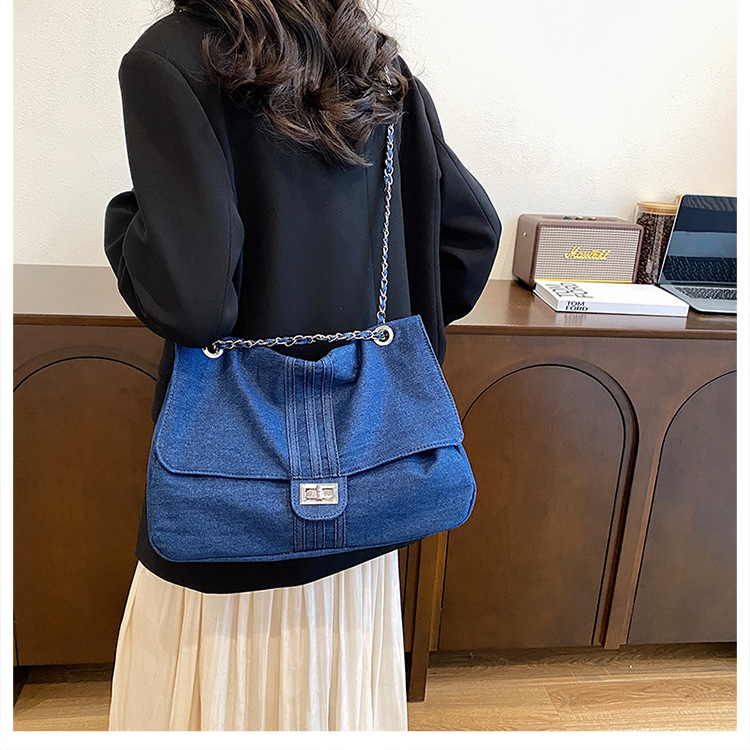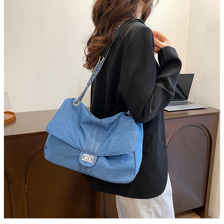 데님 가방 여성용 가방 대용량 2024 새로운 올 매치 통근 체인 어깨 크로스 바디 백 하이 엔드 토트 백