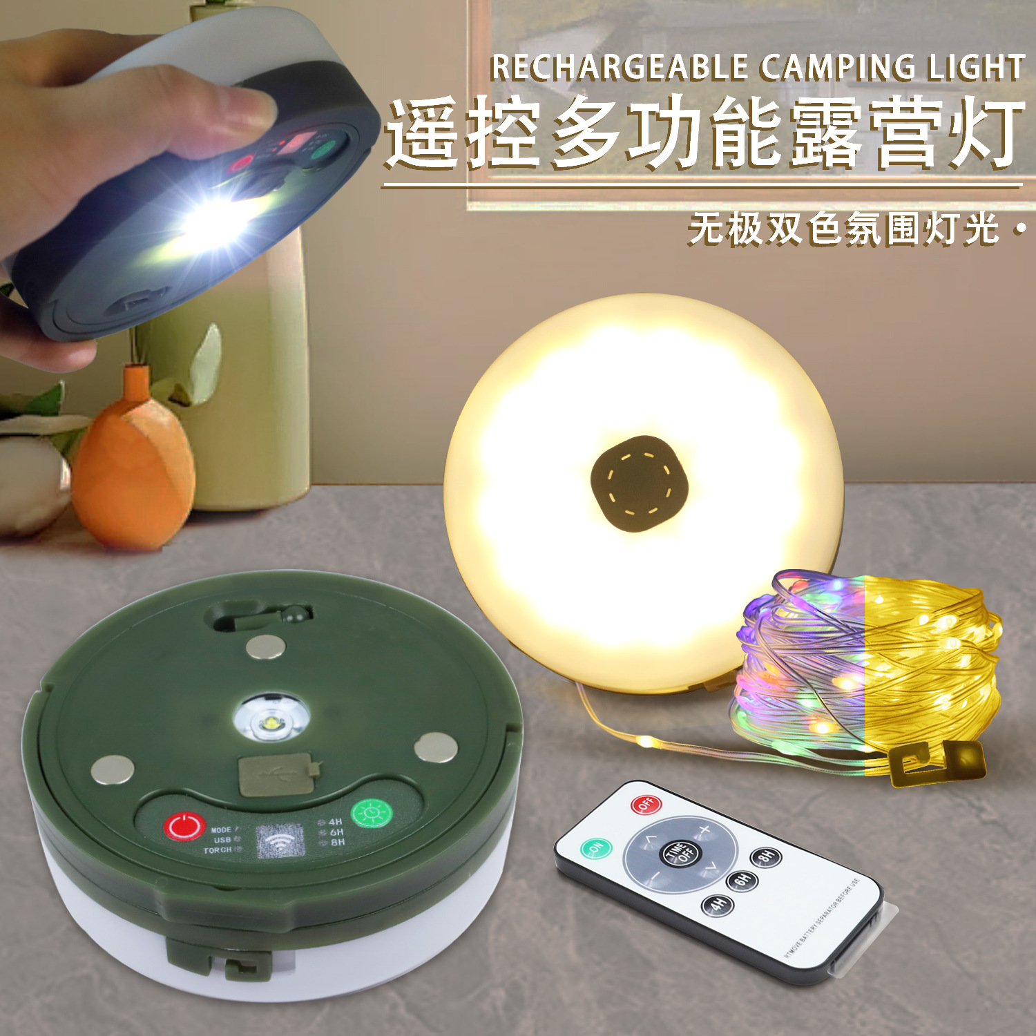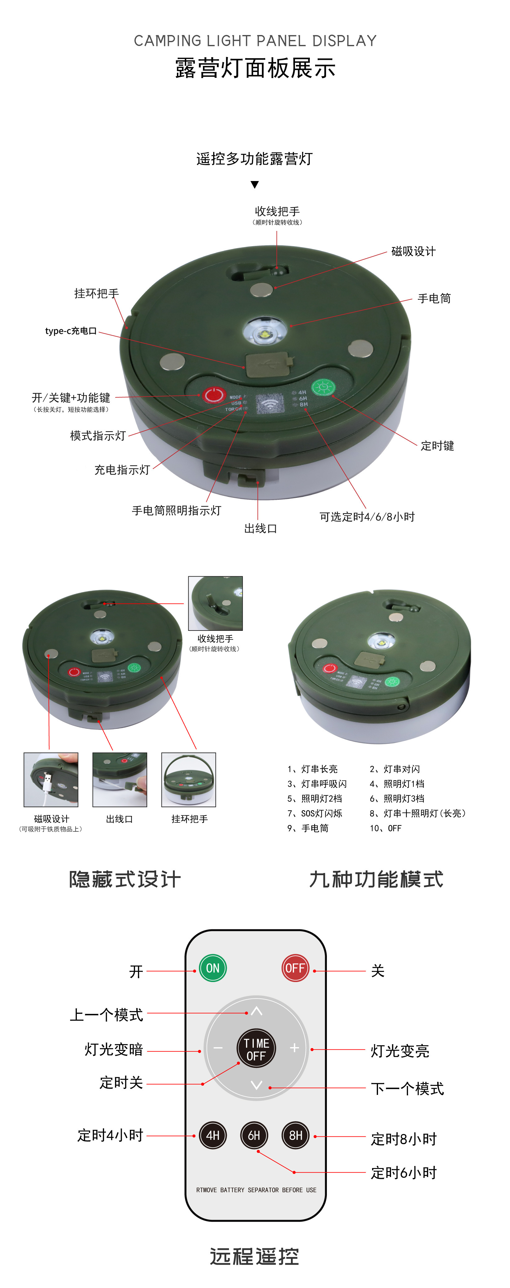 新款LED专用露营灯遥控磁吸氛围灯充电野营帐篷灯户外照明应急灯