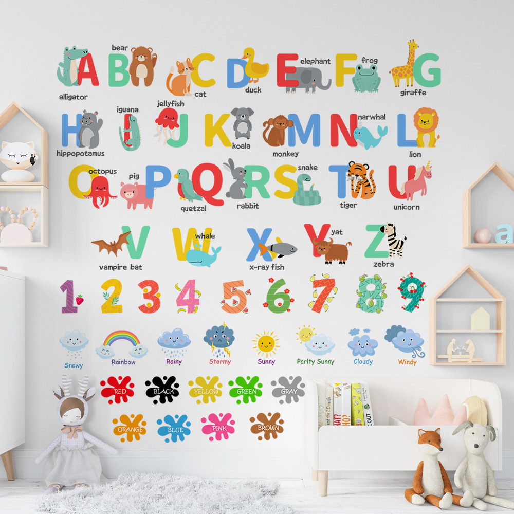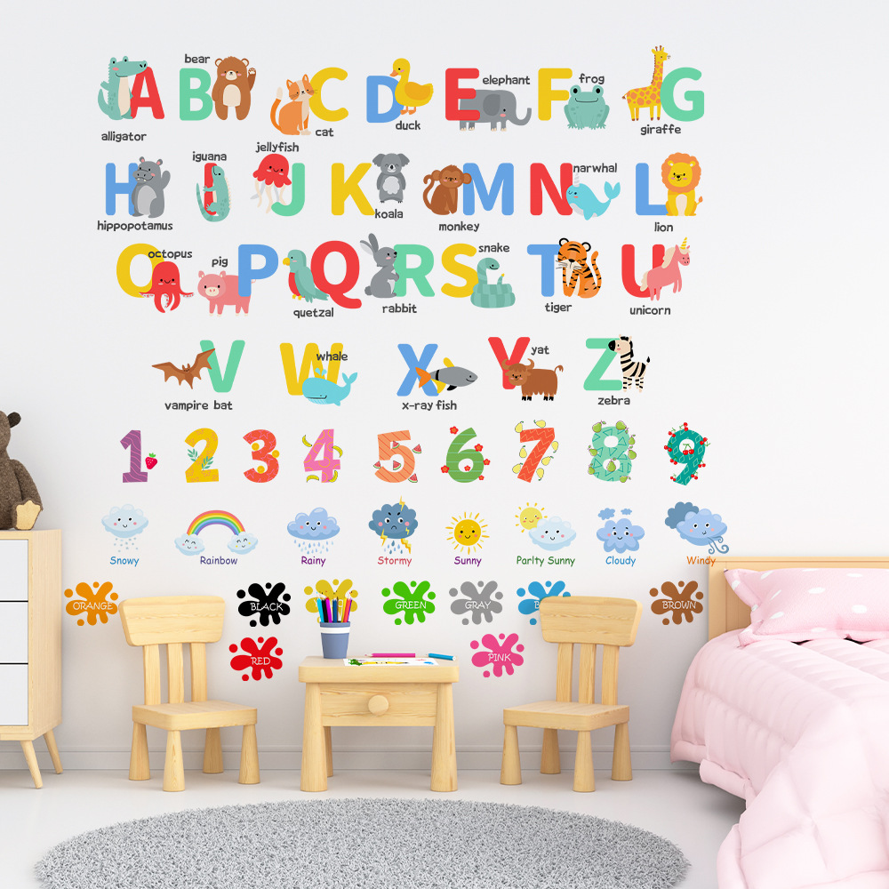 Yiyao DD6901 창조적 인 영어 편지 인쇄 벽지 유치원 거실 배경 벽 장식 자기 접착 벽 스티커