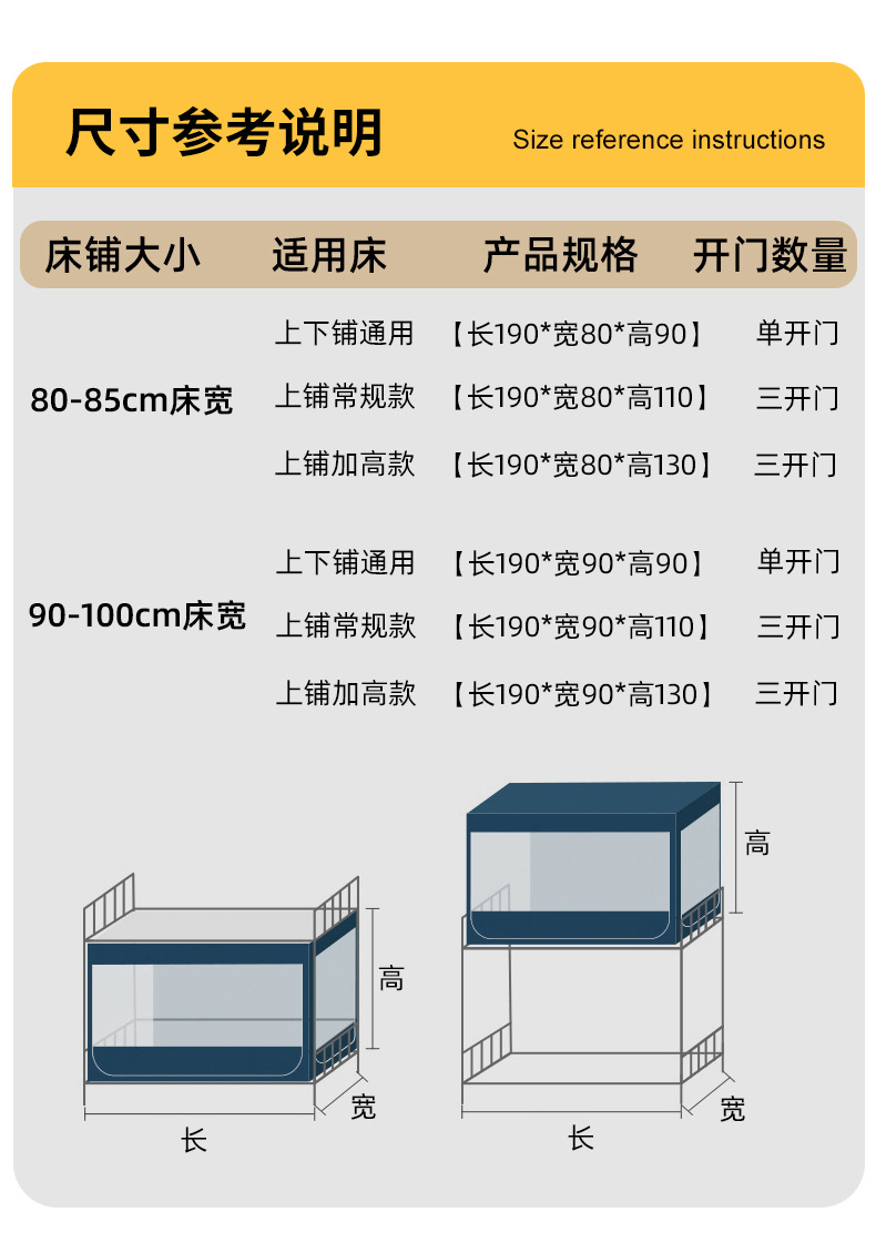 • 90-100cm 침대 폭 [길이 190 × 폭 90 × 높이 130] 상부 이층 플러스 높이