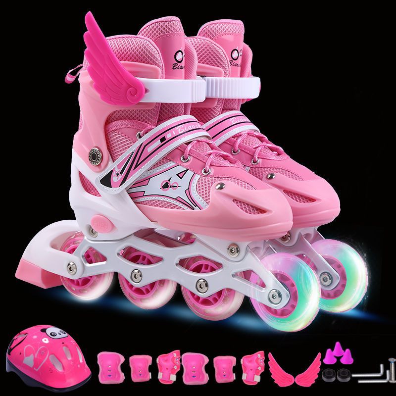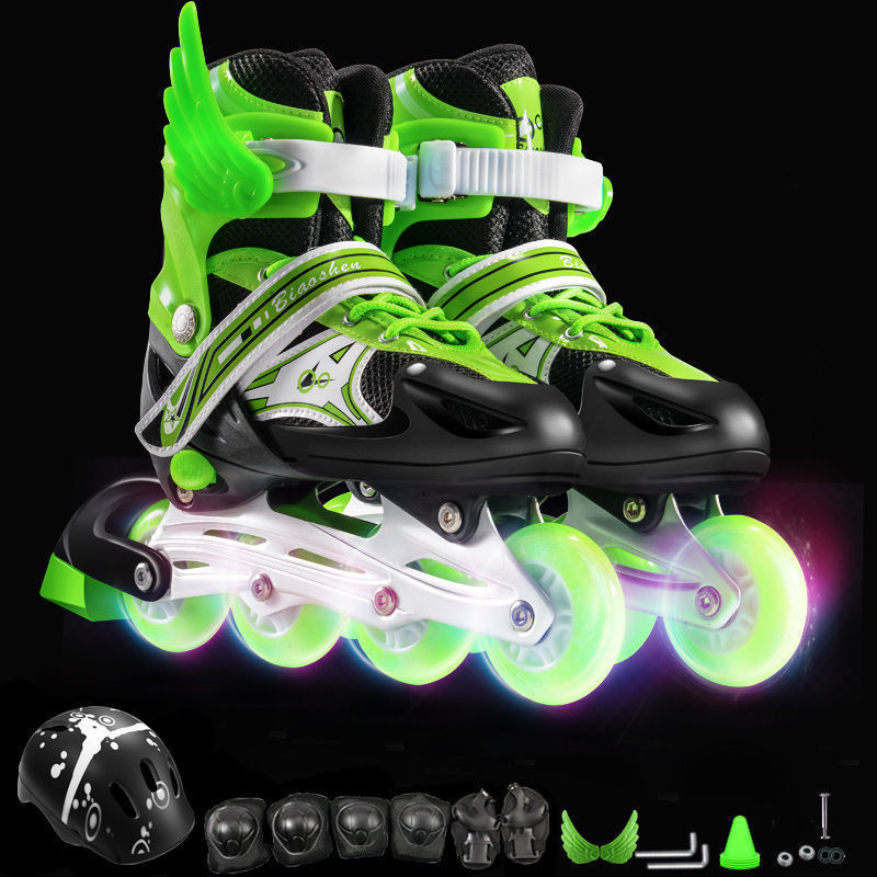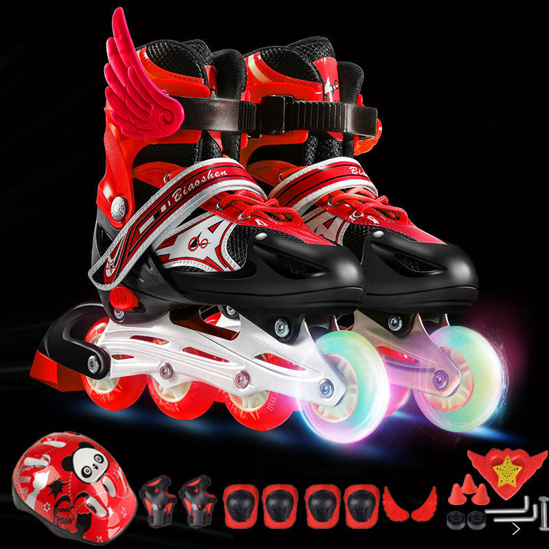 롤러 스케이트 어린이 세트 소년 소녀 성인 인라인 롤러 스케이트 롤러 스케이트 조정 가능한 플래시 공장스토어 가기