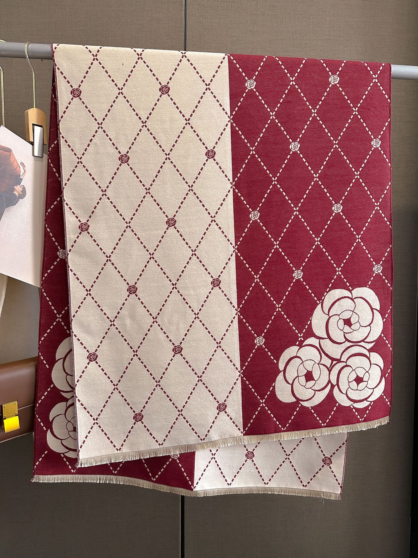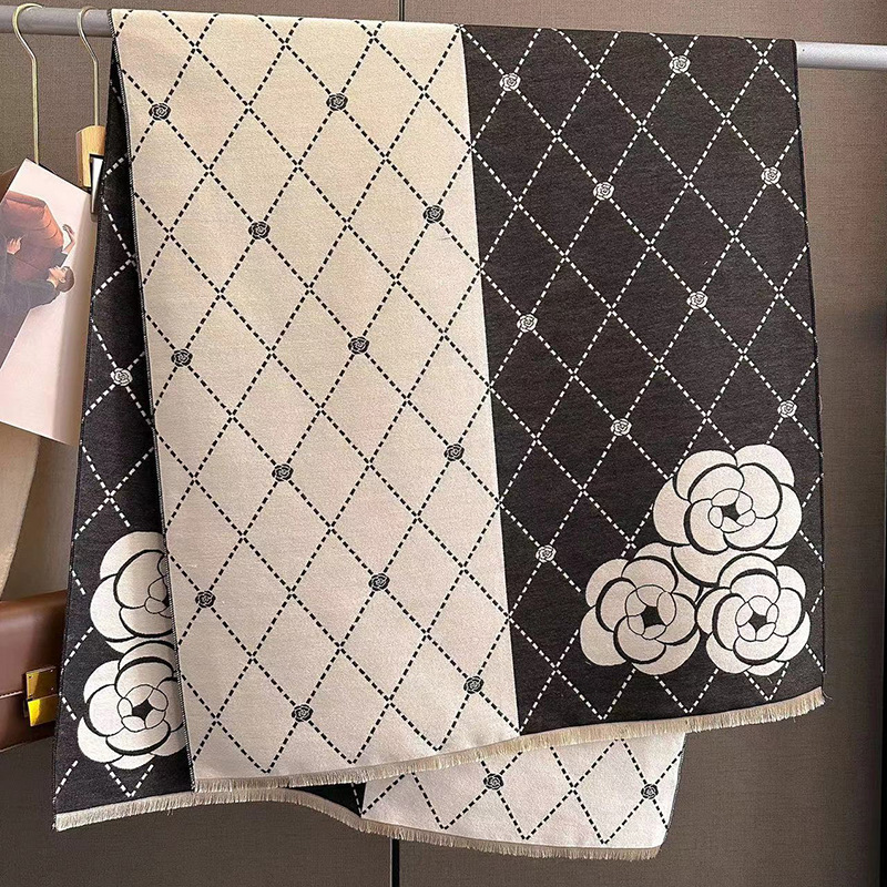 동백 인쇄 스카프 여성용 윈터 인스 빈티지 올매치 두꺼운 따뜻한 긴 목도리 학생 이중 사용 스카프스토어 가기