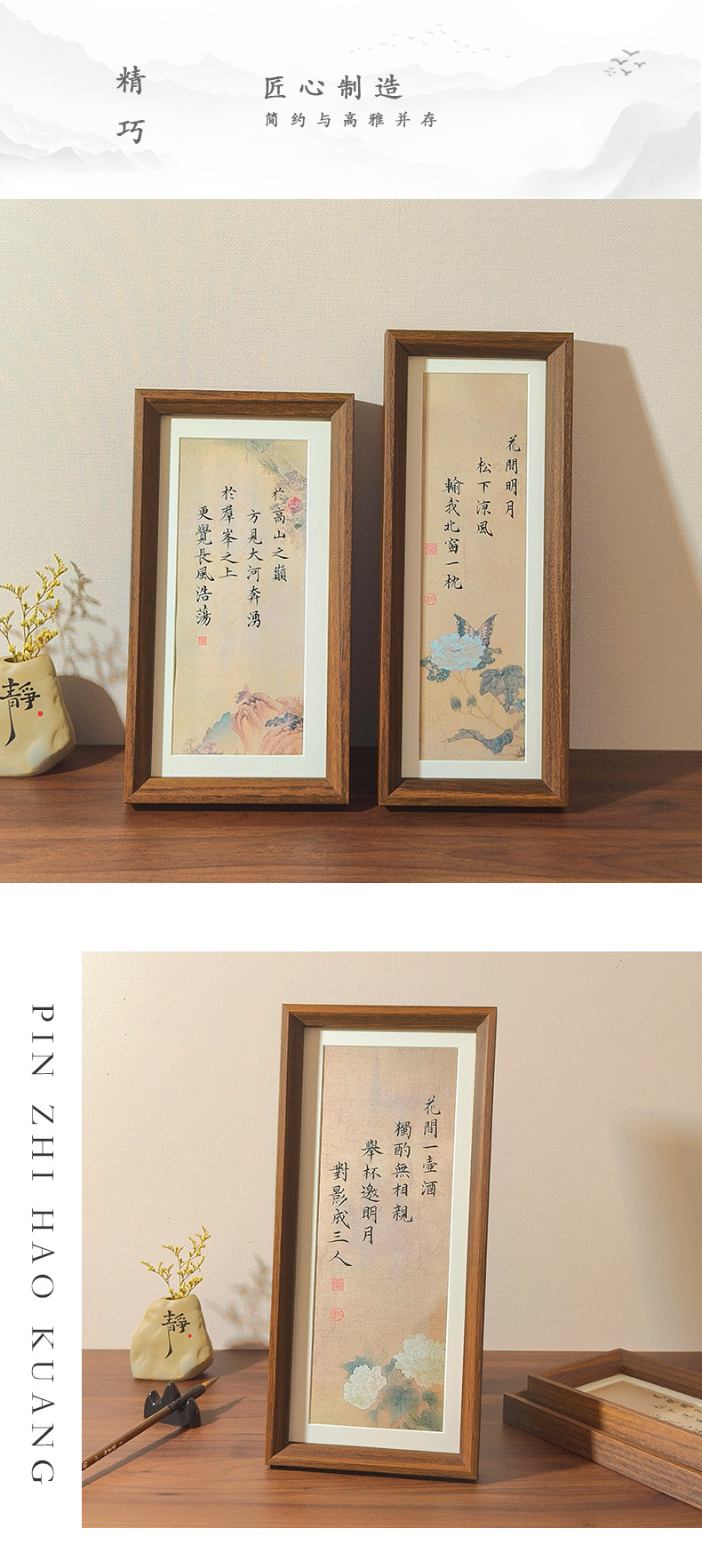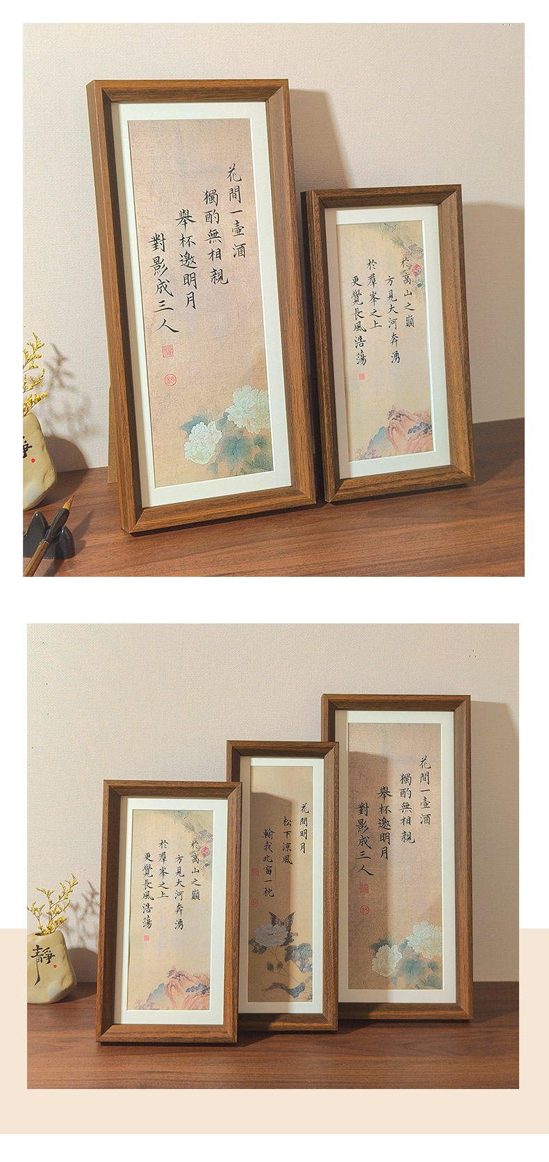 거실 용 중국 스타일의 수직 사진 프레임 설정 테이블 따뜻한 브러시 서예 및 회화 서예 장식 찻집 달콤한 가게 장식 사진 프레임 그림