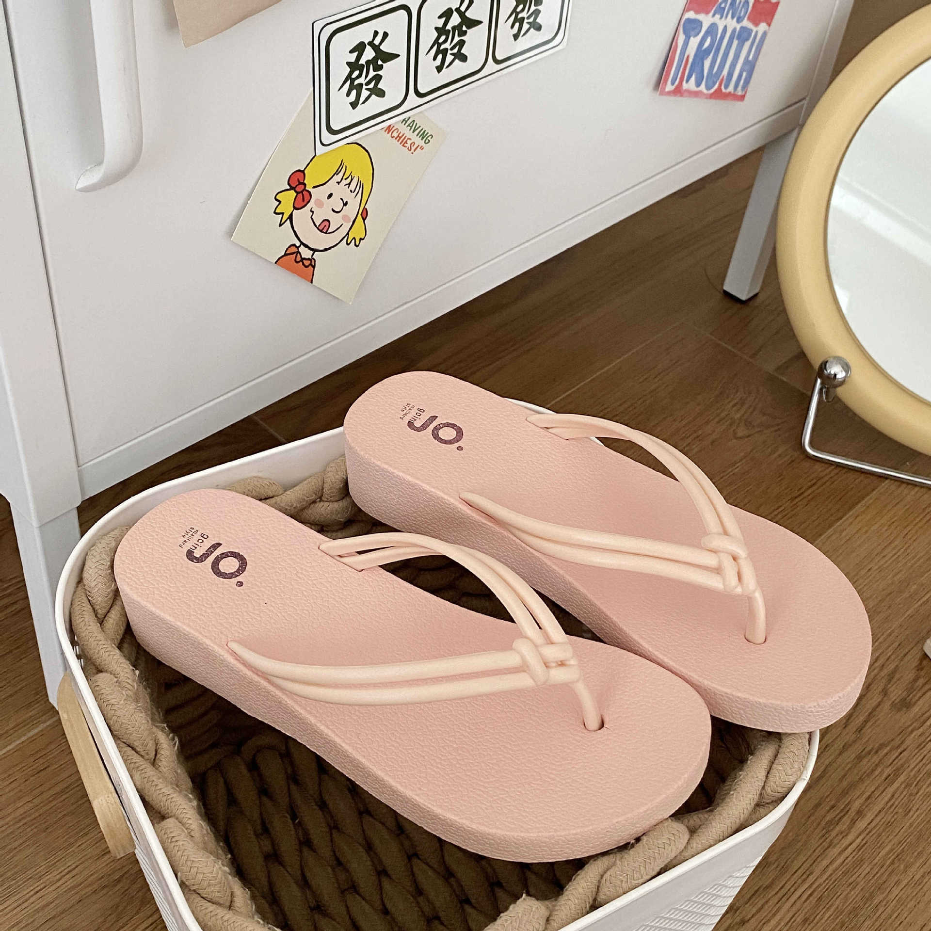 여름 필요한 매듭 플립 플롭 매일러드 컬러 여성용 샌들과 슬리퍼 비치 야외 웨지 힐 높이 상승스토어 가기