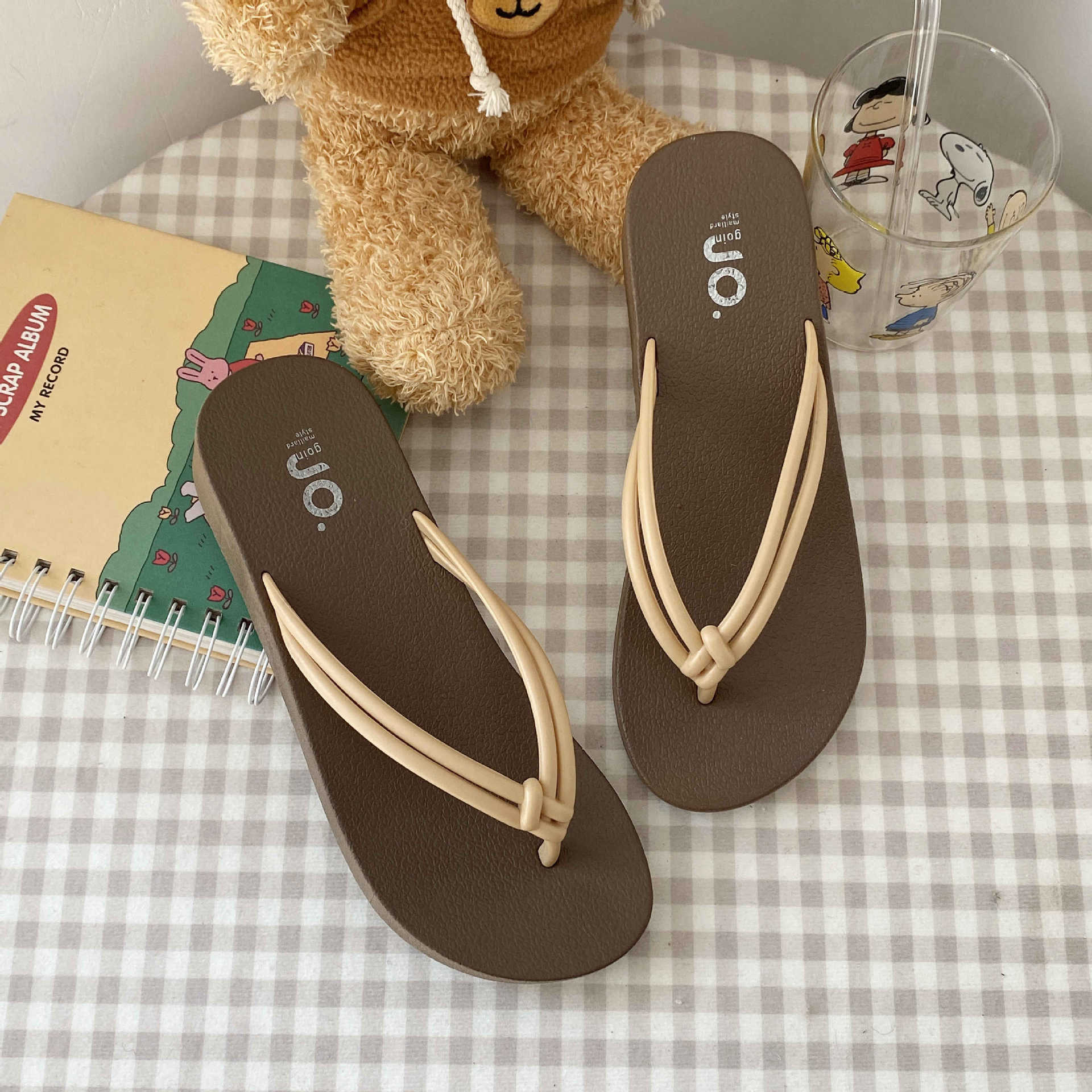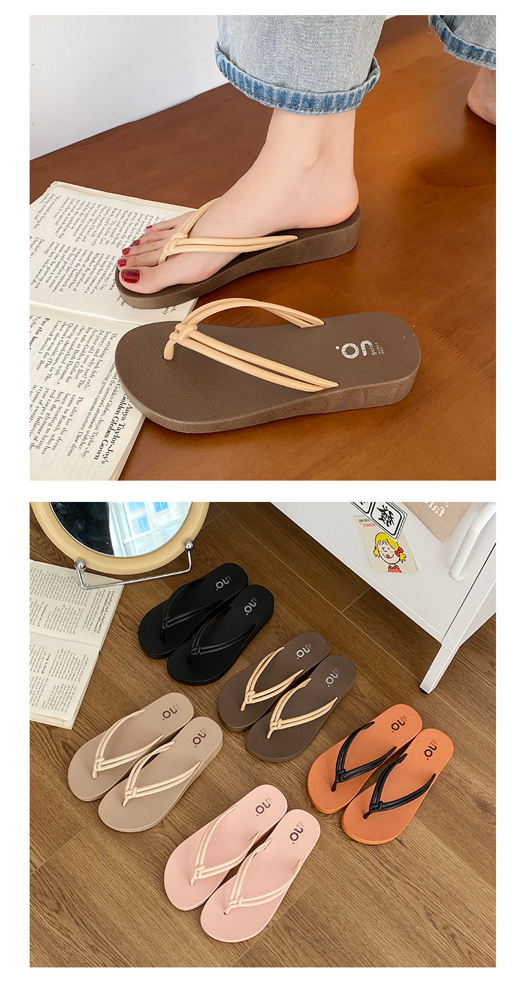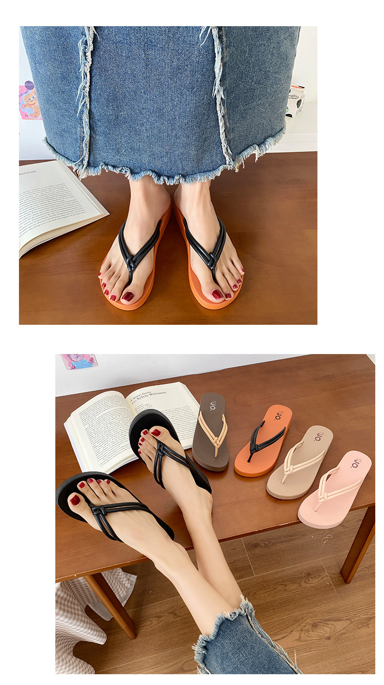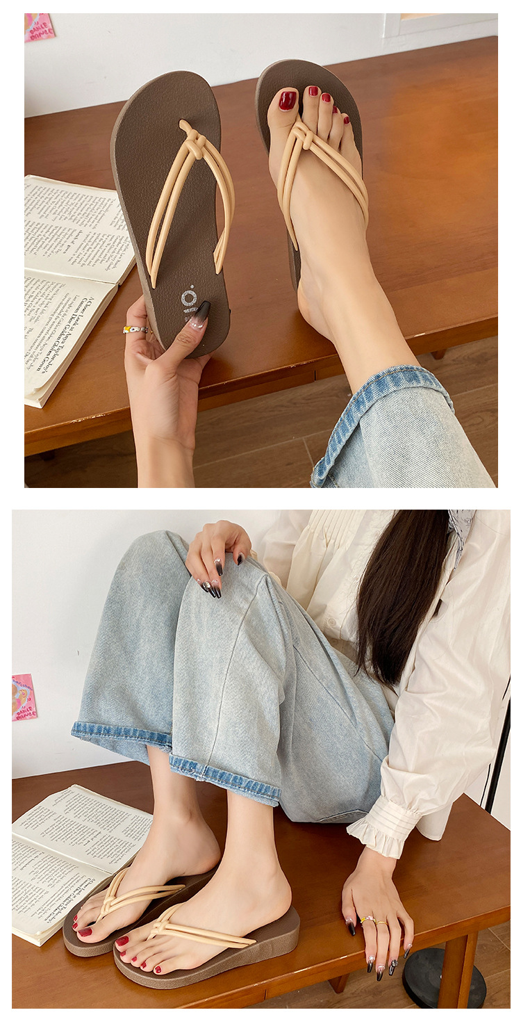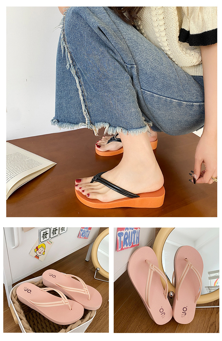 여름 필요한 매듭 플립 플롭 매일러드 컬러 여성용 샌들과 슬리퍼 비치 야외 웨지 힐 높이 상승