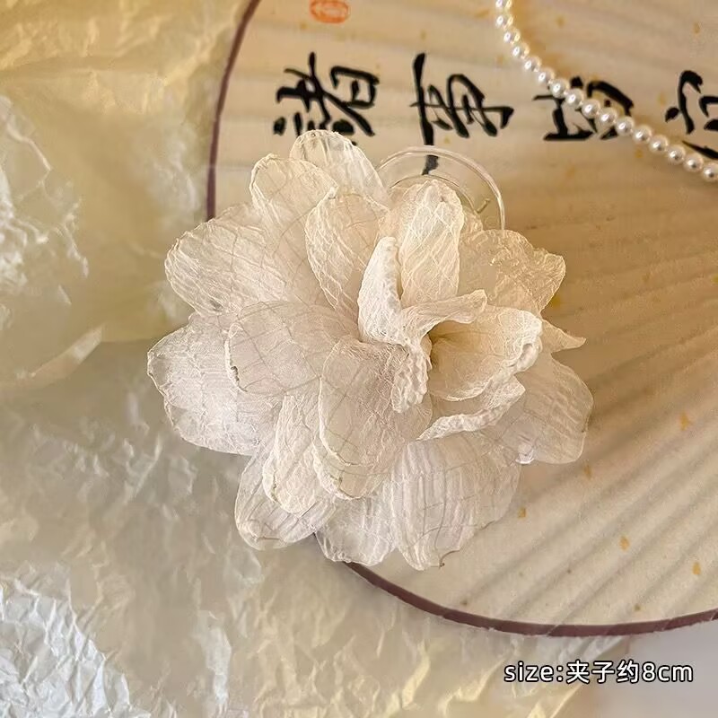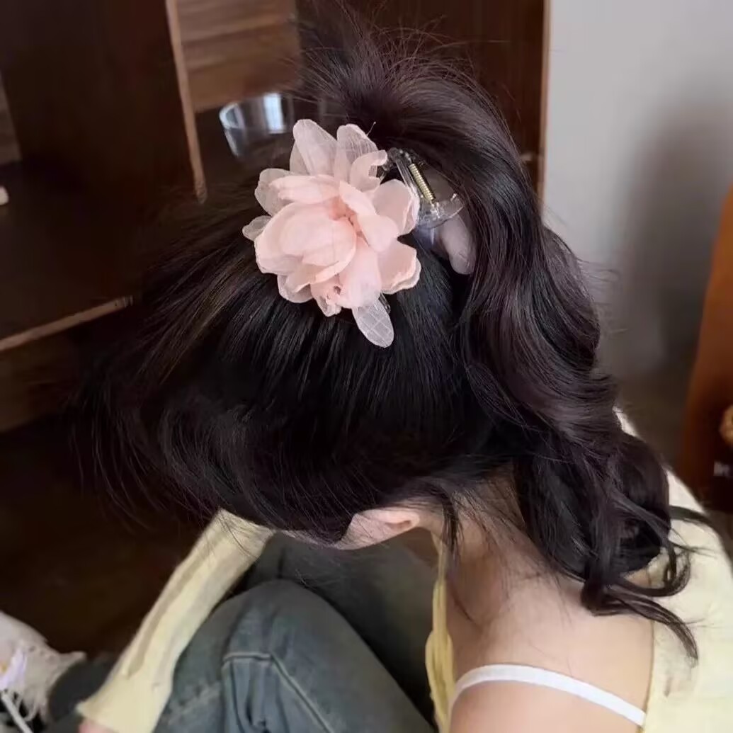 2024新款时尚气质网纱花朵发夹抓夹女高级感鲨鱼夹发卡头饰发夹