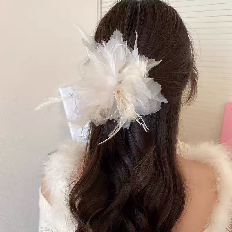 鸵鸟毛抓夹纯欲风后脑勺盘发爪子显发量超仙i高级感发饰羽毛发饰