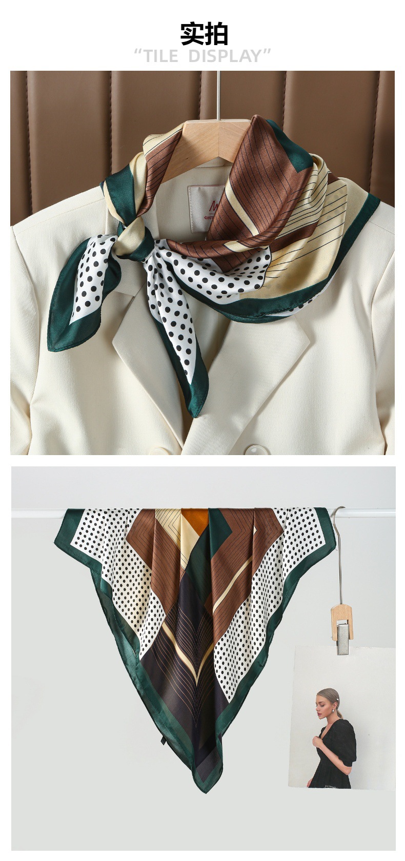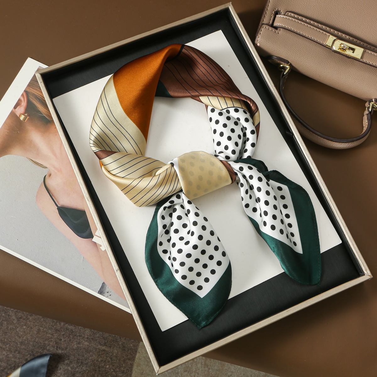 가벼운 럭셔리 스타일 기하학적 라인 웨이브 포인트 컬러 매칭 작은 스퀘어 스카프 간단한 올 매치 여성 실크 스카프 코 사틴 페이스 타월
