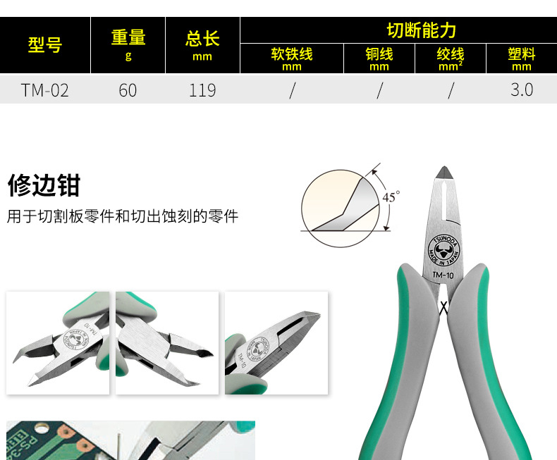 • TM-02 정밀 얇은 모서리 대각선 노즈 플라이어(노즐 플라이어) *표준