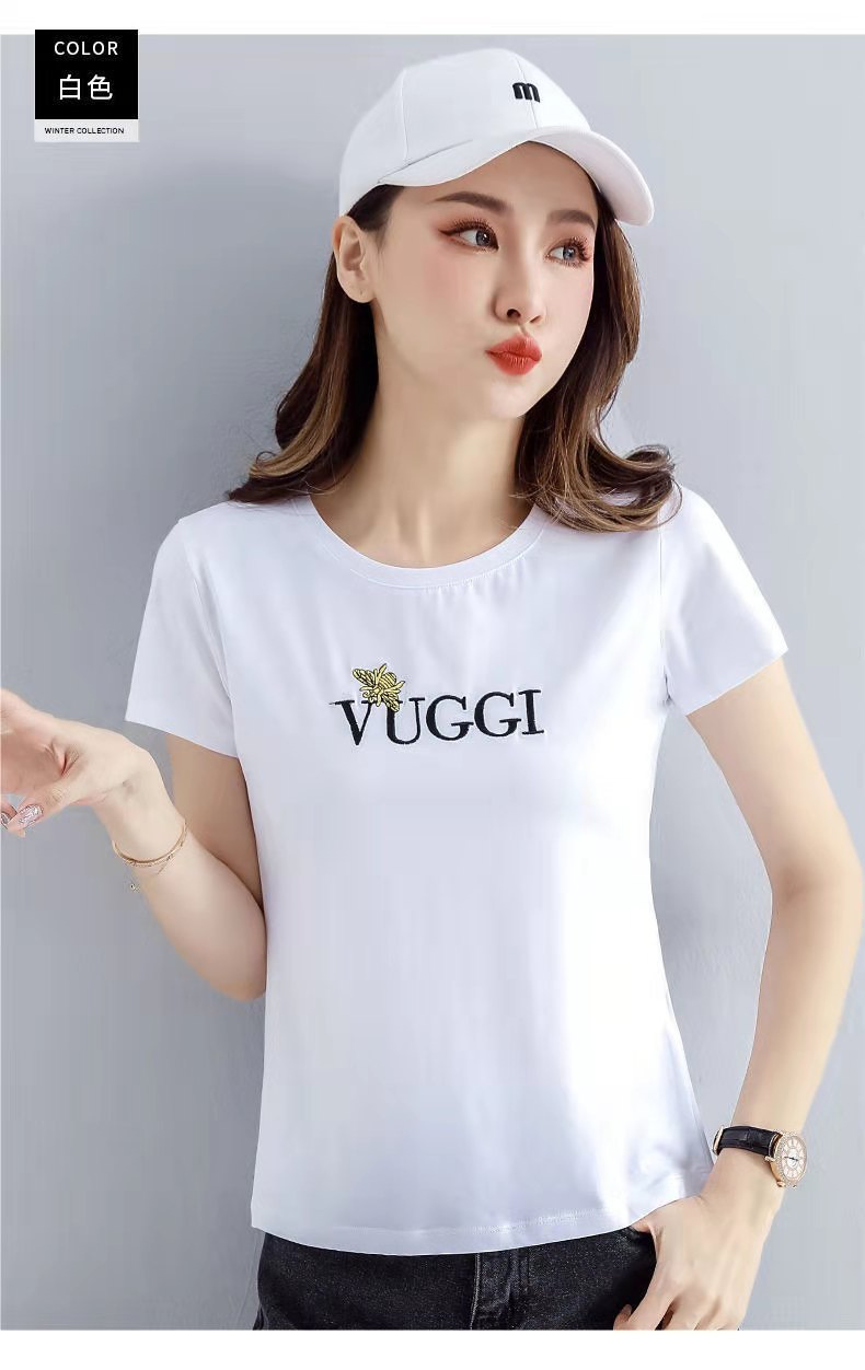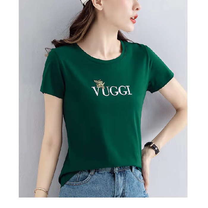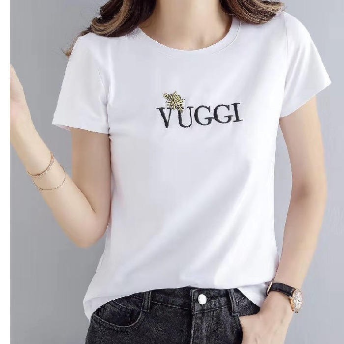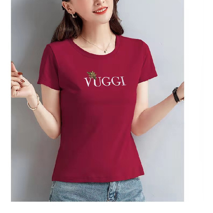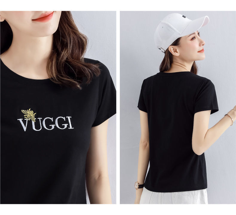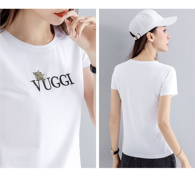 100 면 여름 새로운 반팔 티셔츠 여성용 슬림 핏 슬리밍 탑 웨스턴 스타일 간단한 인쇄 재고 도매스토어 가기