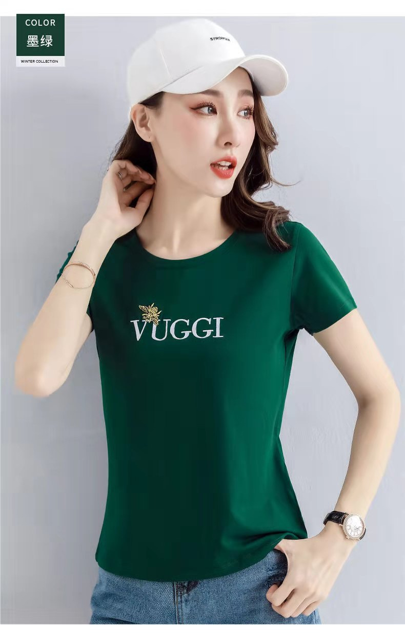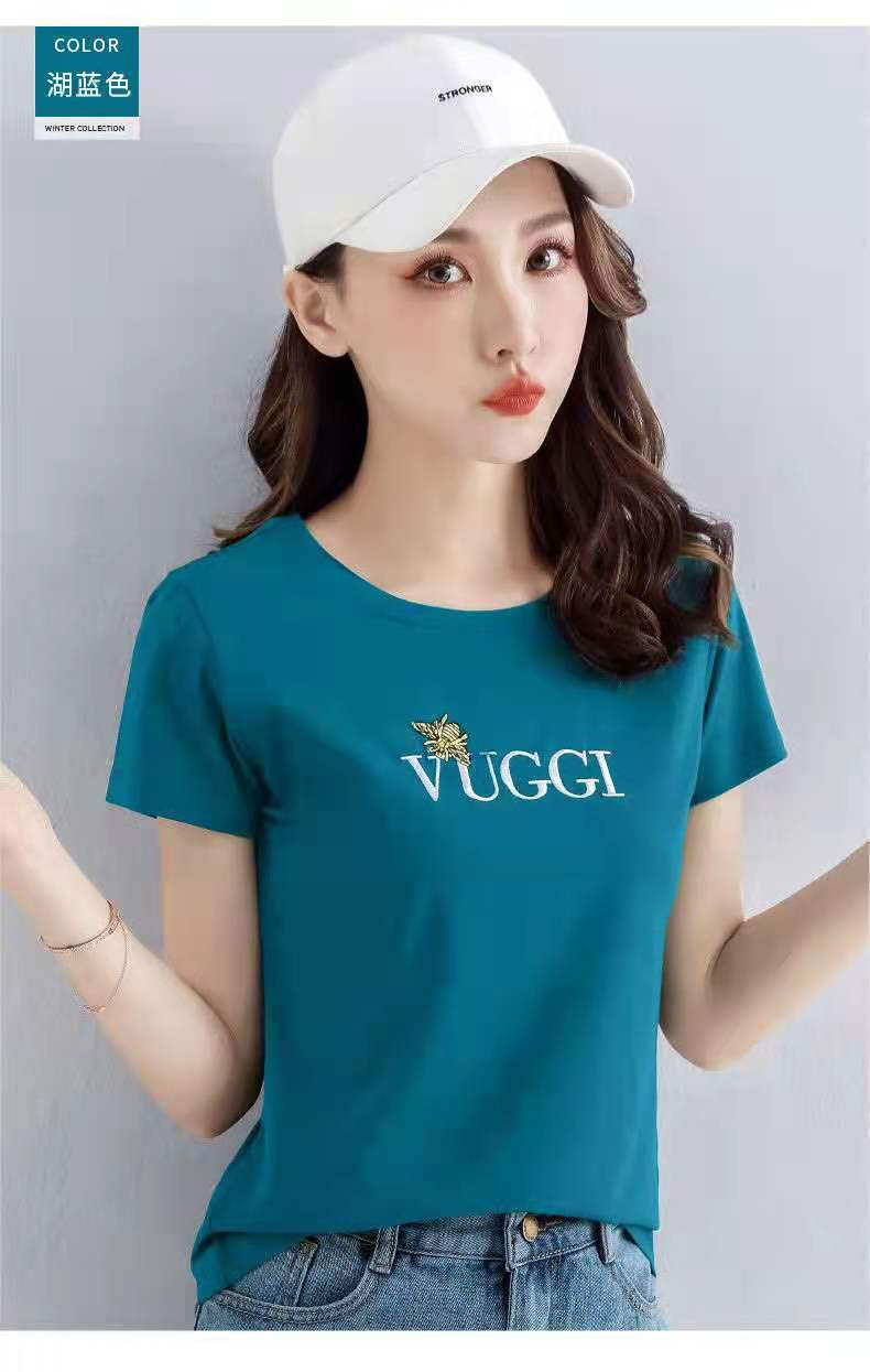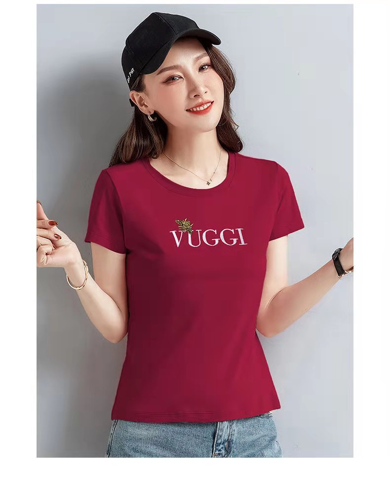 100 면 여름 새로운 반팔 티셔츠 여성용 슬림 핏 슬리밍 탑 웨스턴 스타일 간단한 인쇄 재고 도매스토어 가기