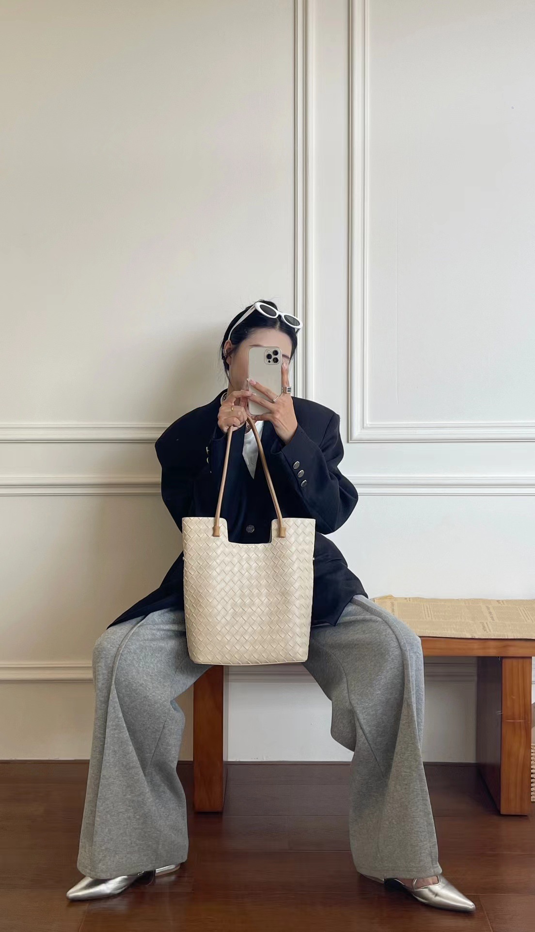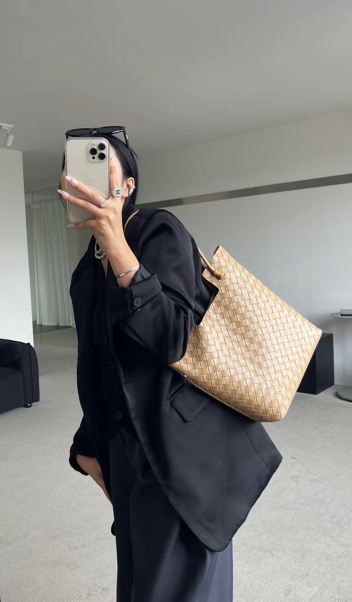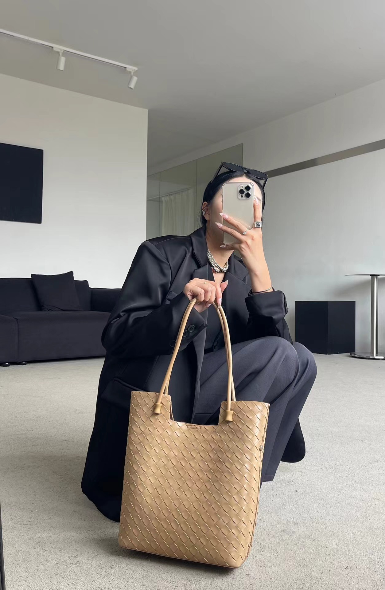 2024 새로운 정품 가죽 여성용 가방 토트 백 여름 휴대용 대형 가방 소 가죽 작업 통근 어깨 가방 여성 대용량스토어 가기