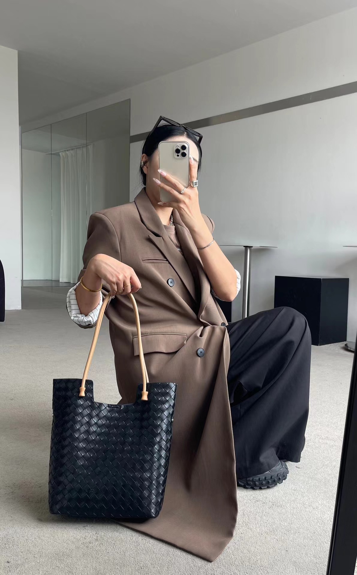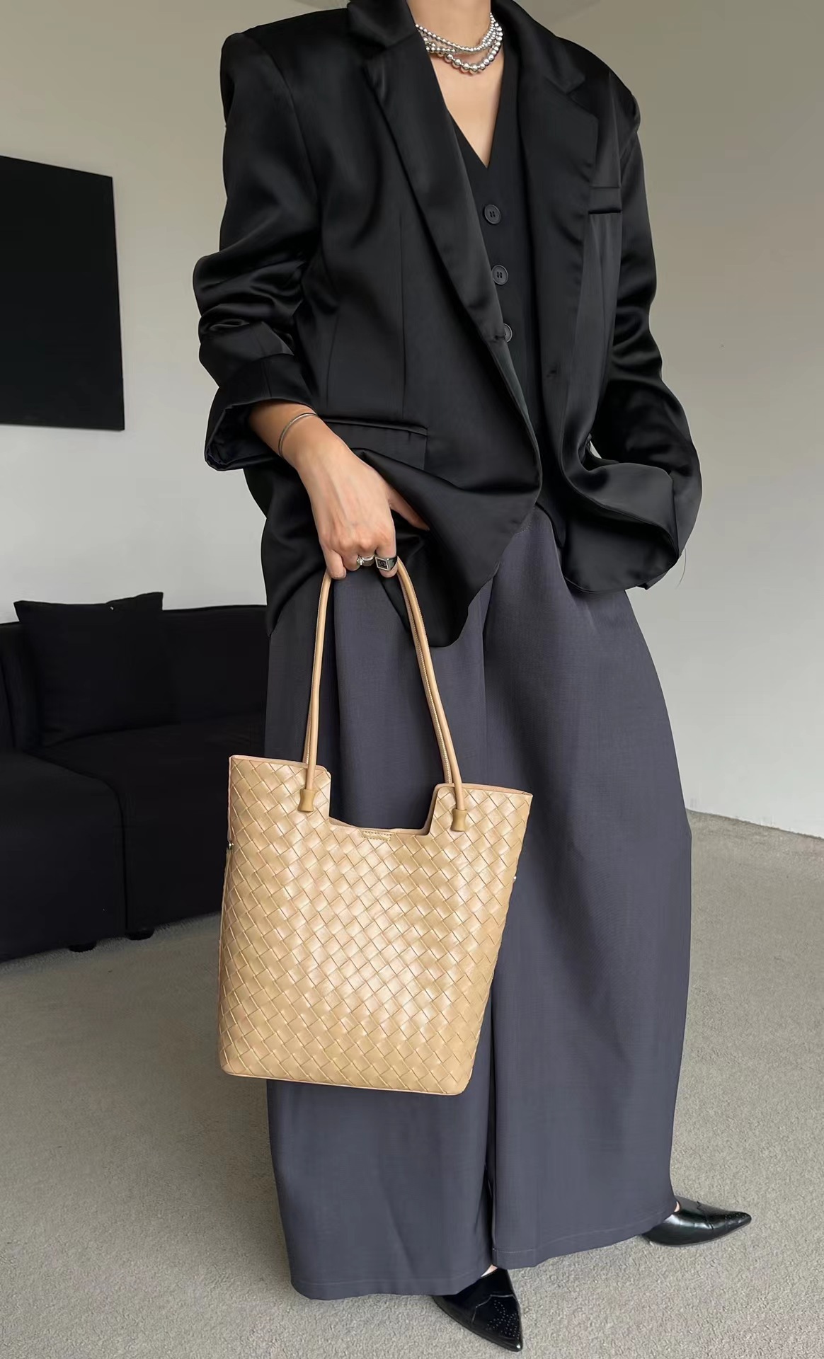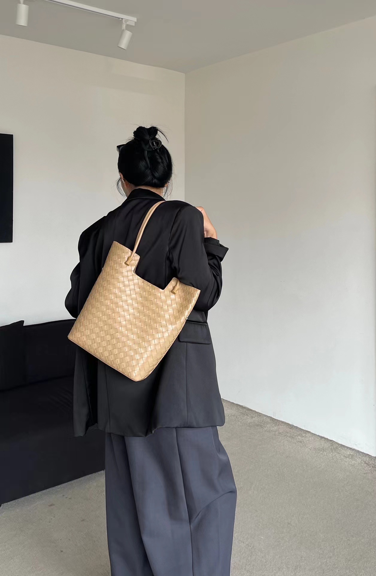 2024 새로운 정품 가죽 여성용 가방 토트 백 여름 휴대용 대형 가방 소 가죽 작업 통근 어깨 가방 여성 대용량스토어 가기