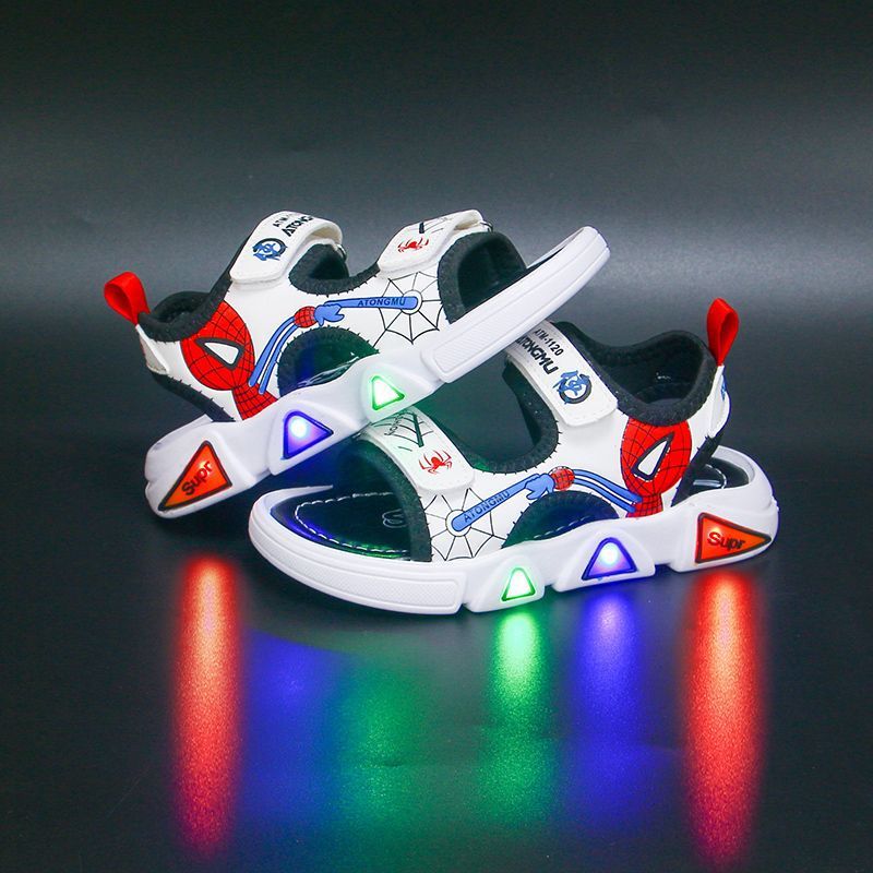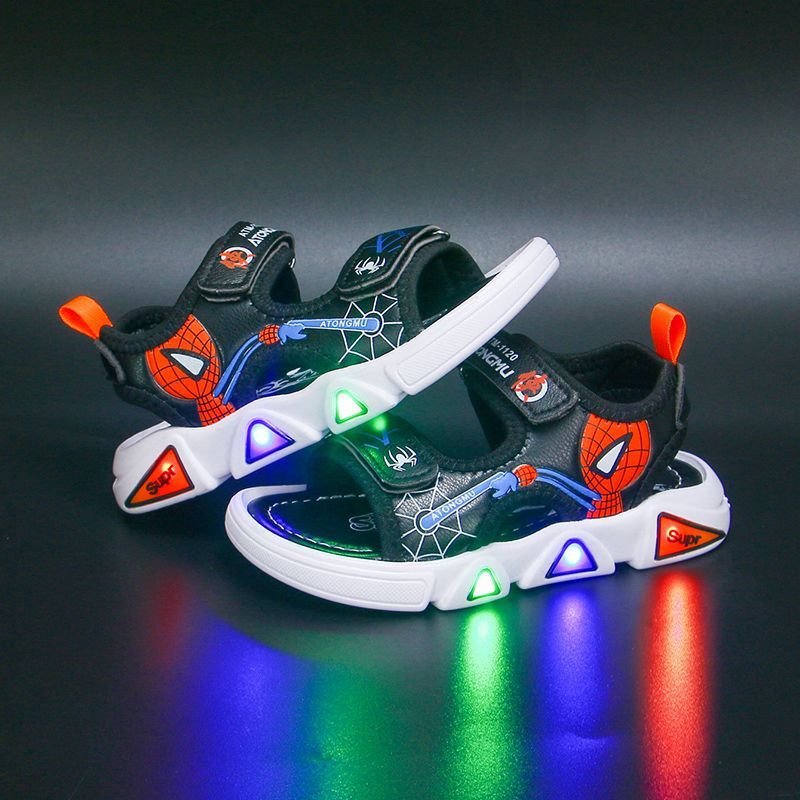 가벼운 소년 샌들 2024 여름 새로운 도착 스파이더 맨 스포츠 샌들 울트라 라이트 소프트 하단 키즈 비치 플래시스토어 가기
