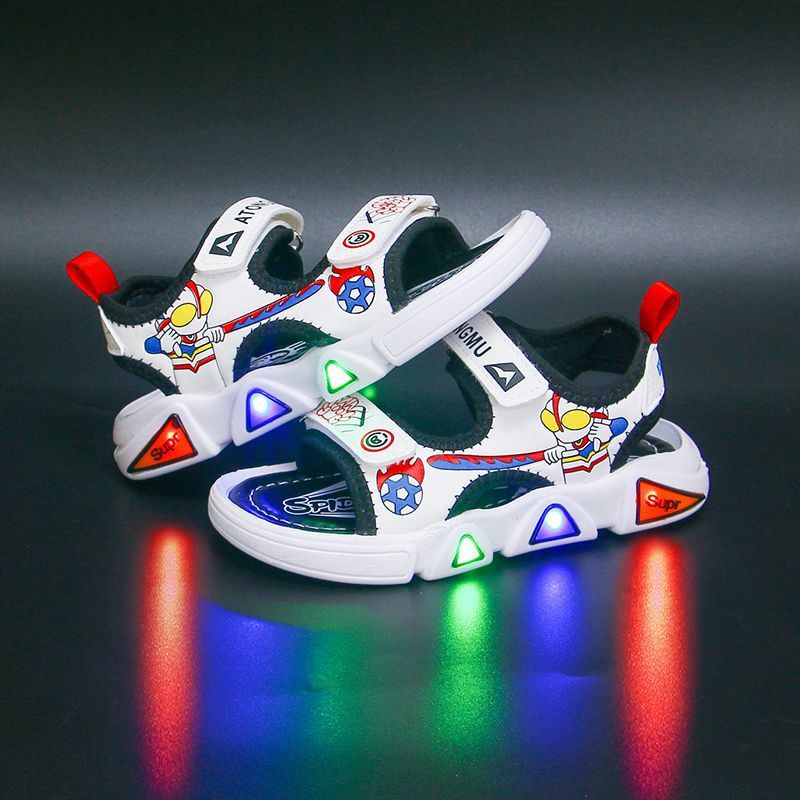 가벼운 소년 샌들 2024 여름 새로운 도착 스파이더 맨 스포츠 샌들 울트라 라이트 소프트 하단 키즈 비치 플래시