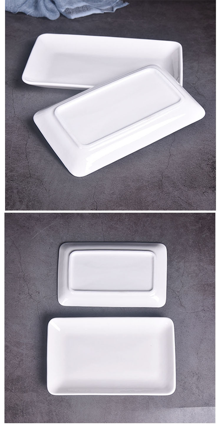 세라믹 순수한 흰색 직사각형 판 광동 쌀 그릇 판 초밥 판 스낵 판 뜨거운 냄비 접시 식당 상업