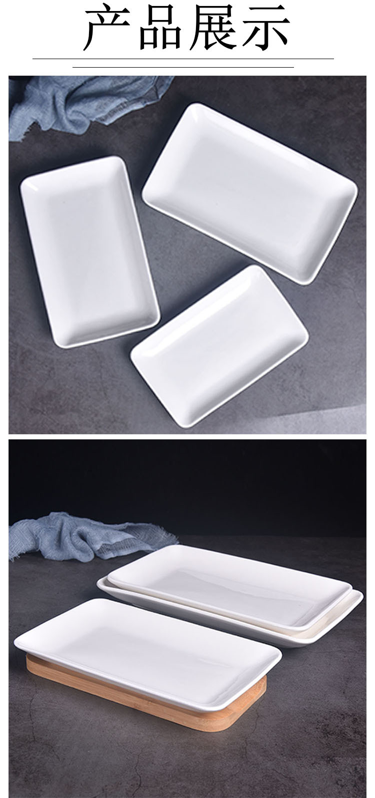 세라믹 순수한 흰색 직사각형 판 광동 쌀 그릇 판 초밥 판 스낵 판 뜨거운 냄비 접시 식당 상업스토어 가기