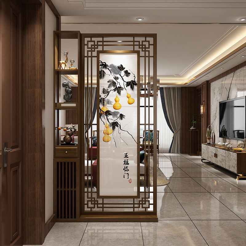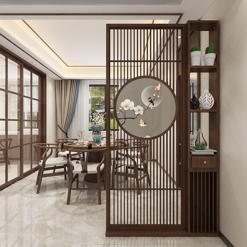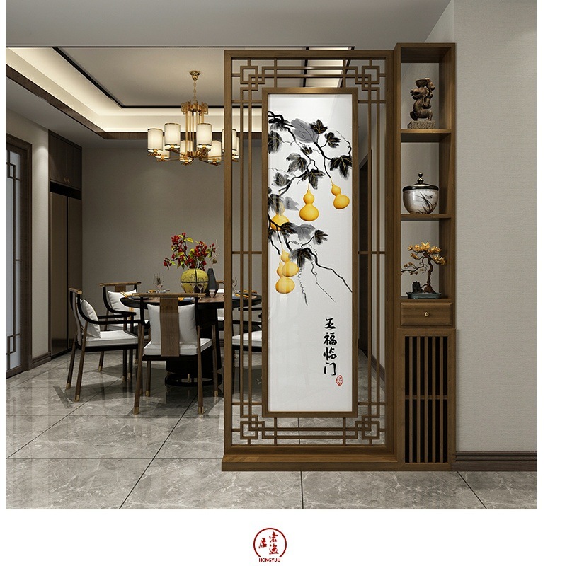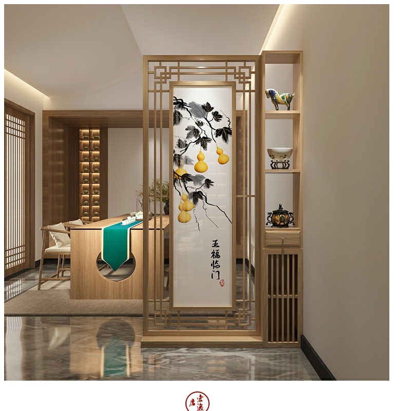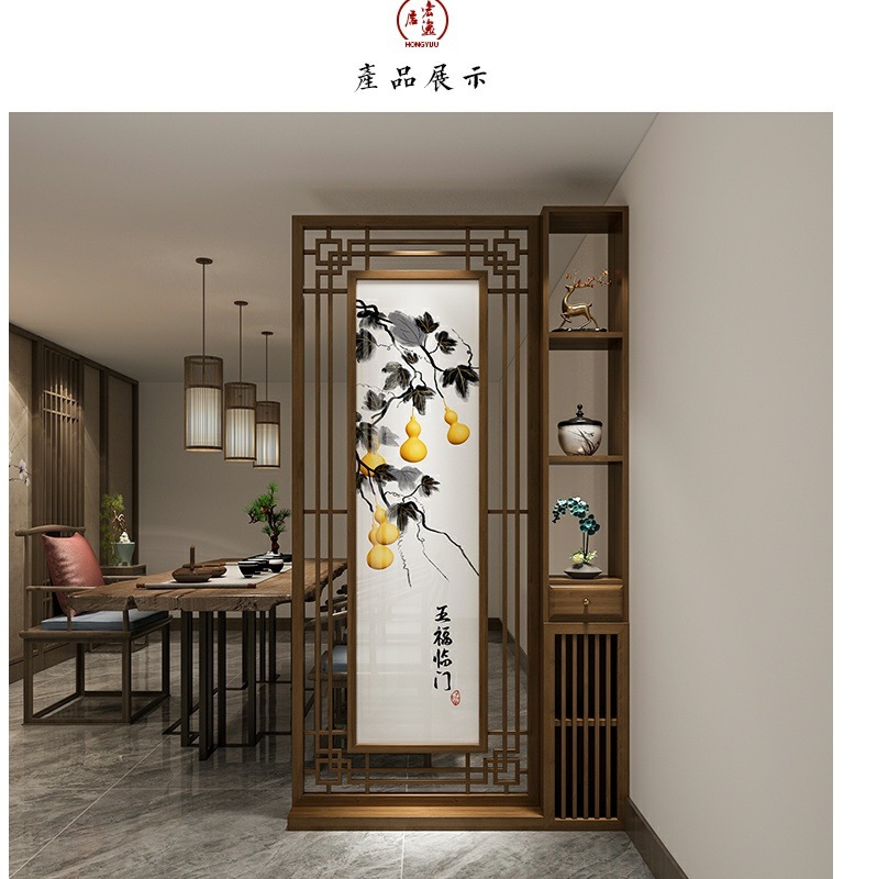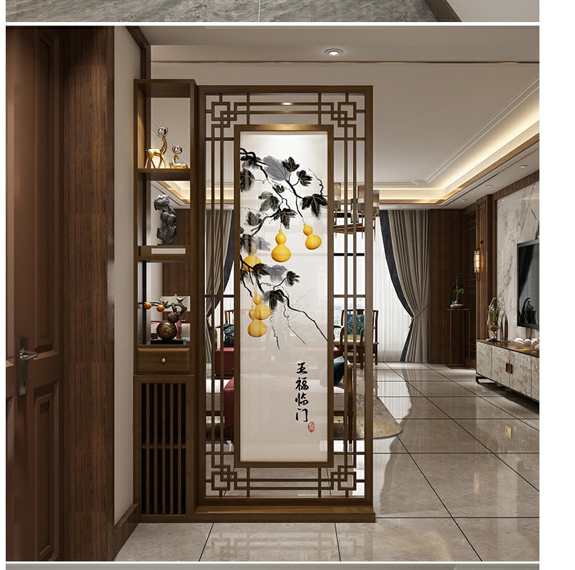 새로운 중국 스타일의 솔리드 우드 홈 스크린 파티션 거실은 문 건너편에 그늘진 다이닝 룸 메이크업 룸 입구 홈 스토리지 랙