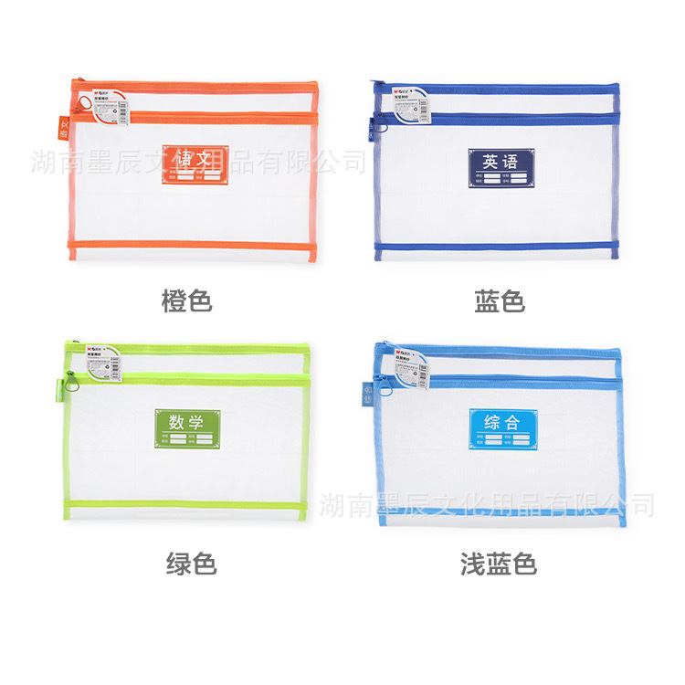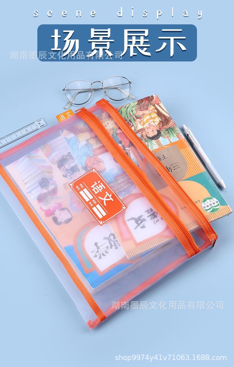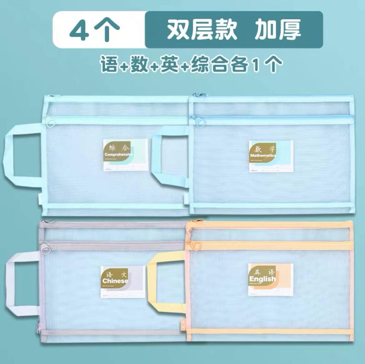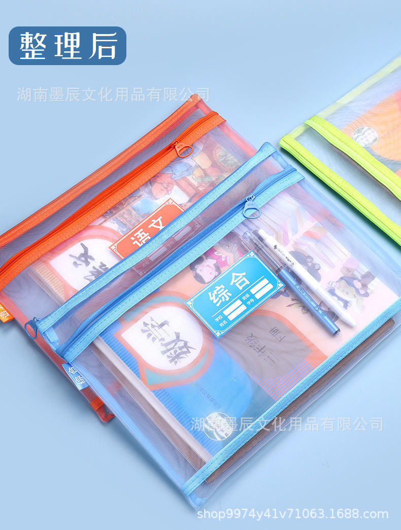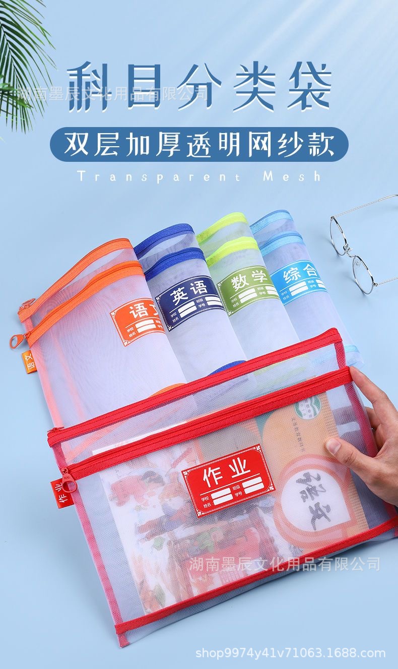 Chenguang 주제 가방 분류 된 파일 가방 학생 투명 메쉬 A4 대용량 숙제 더블 레이어 제목 지퍼 가방스토어 가기
