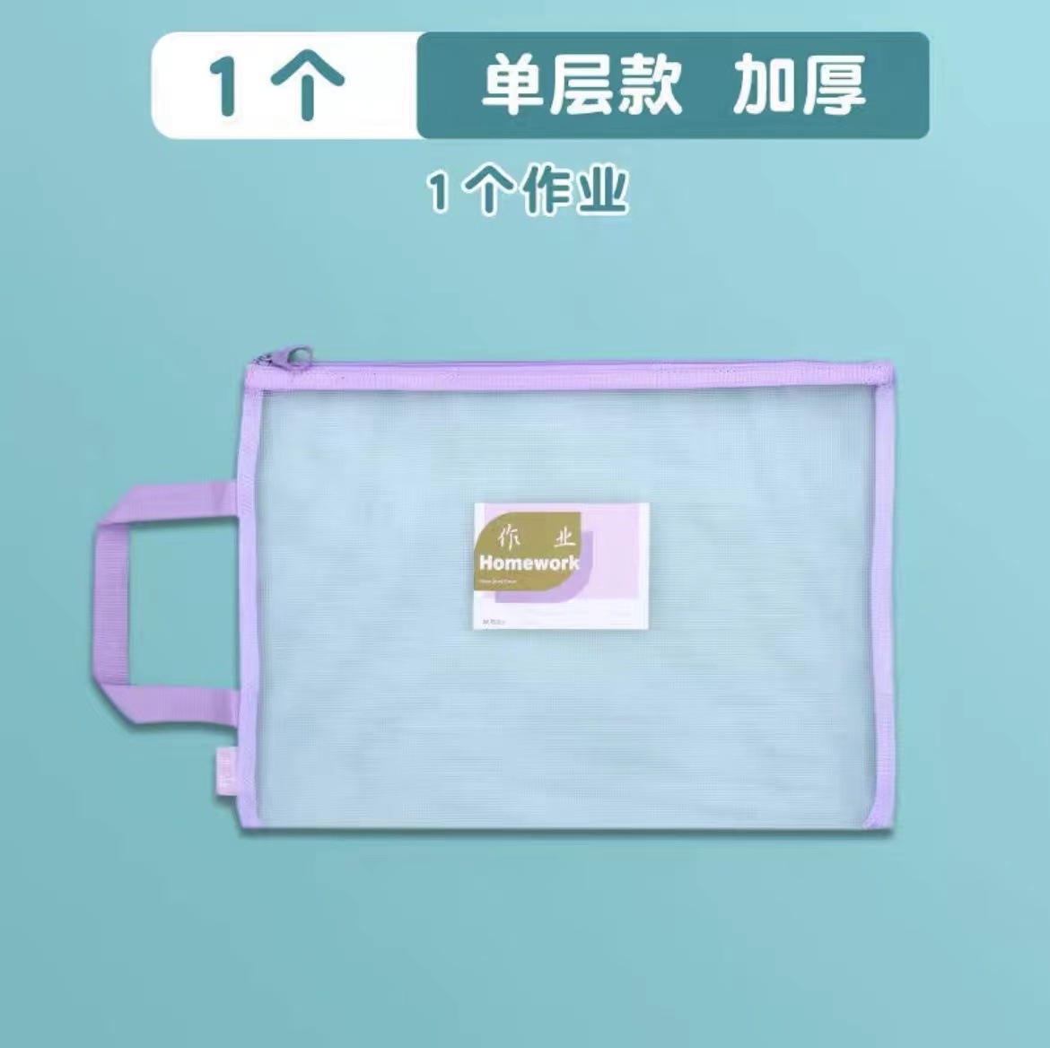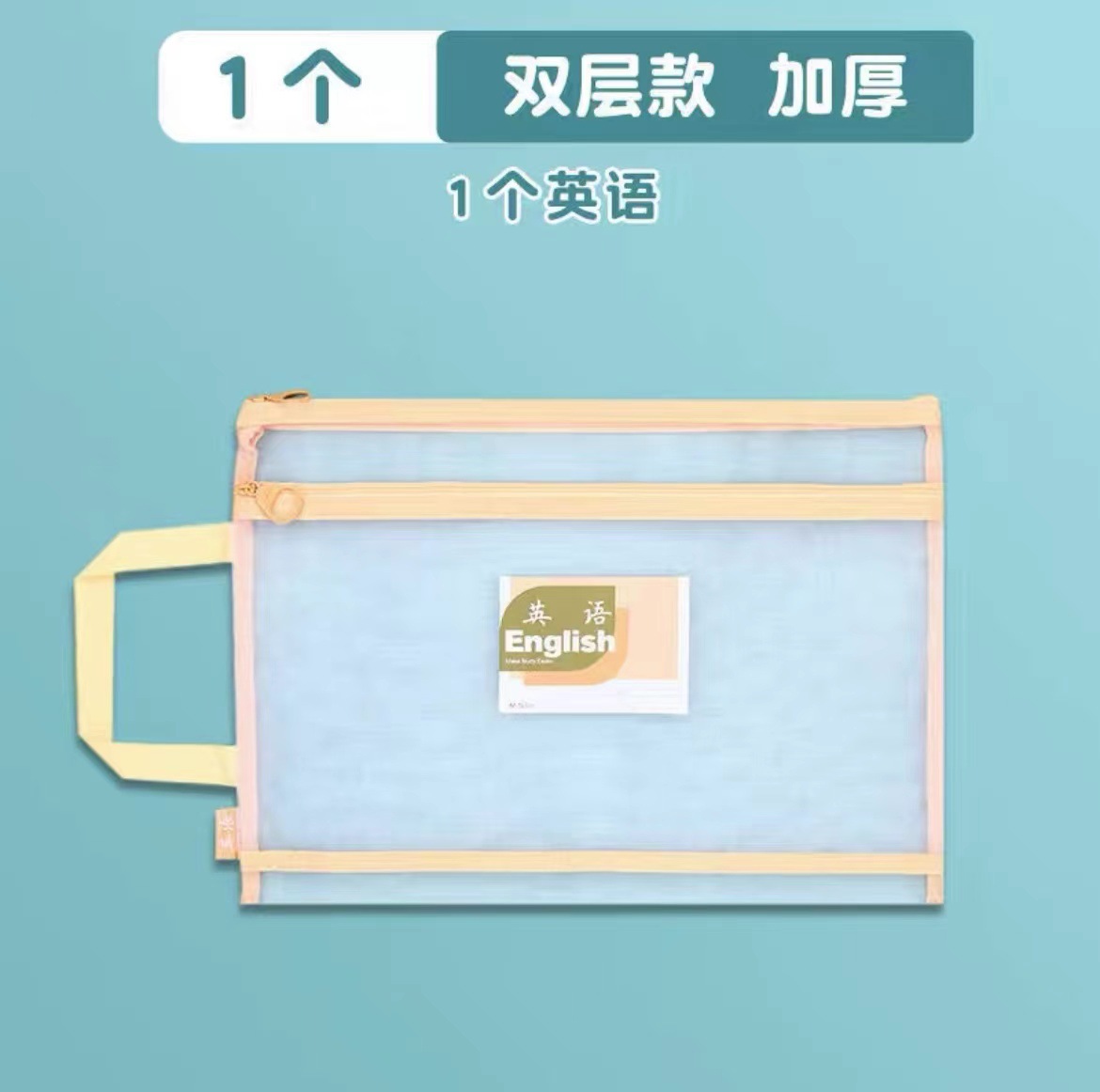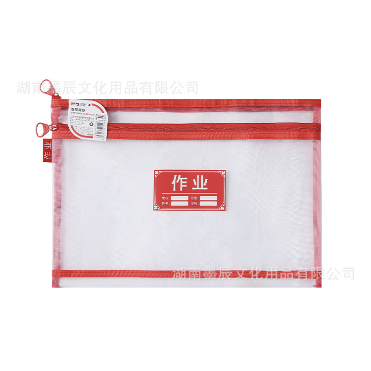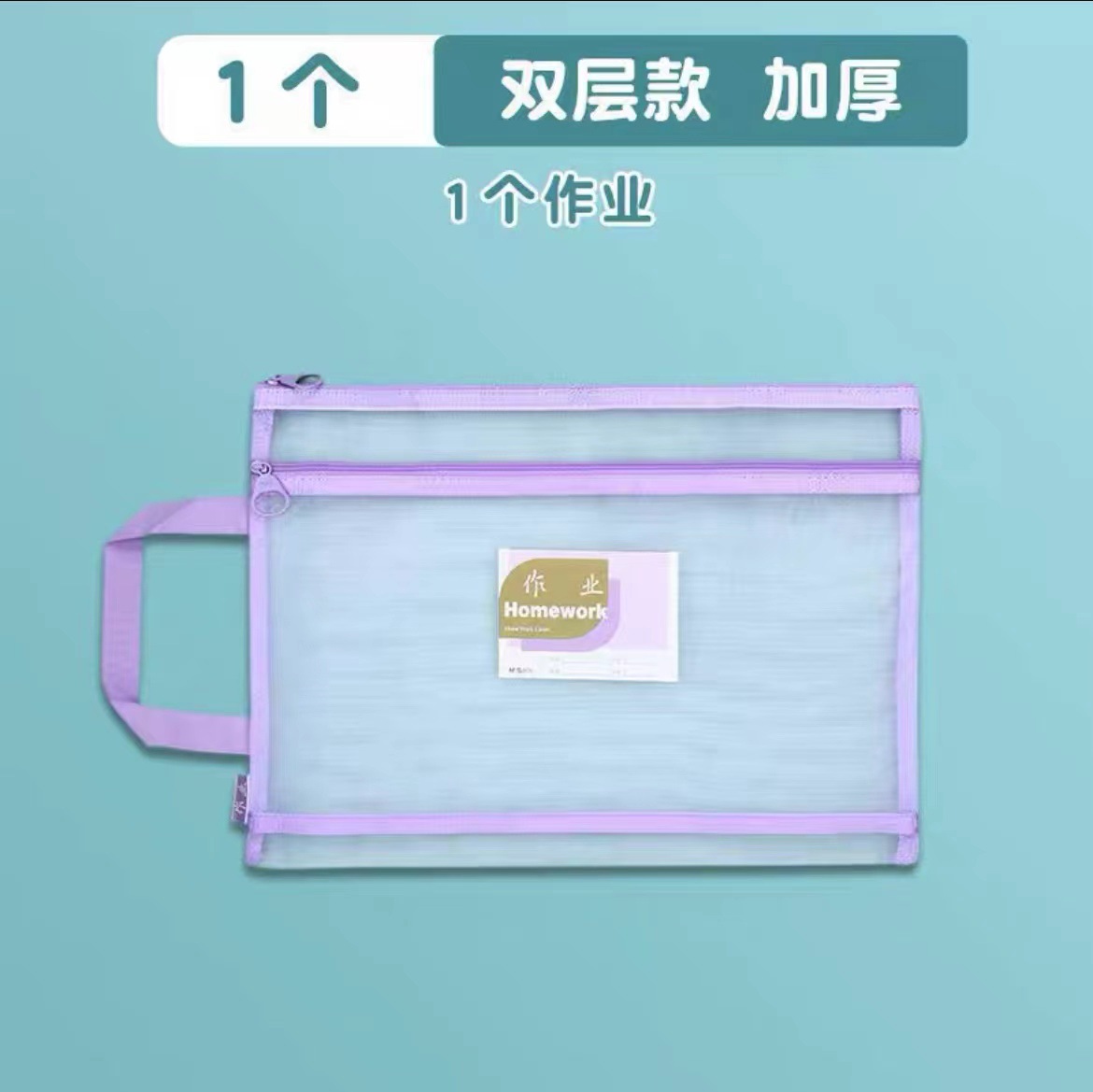 Chenguang 주제 가방 분류 된 파일 가방 학생 투명 메쉬 A4 대용량 숙제 더블 레이어 제목 지퍼 가방스토어 가기