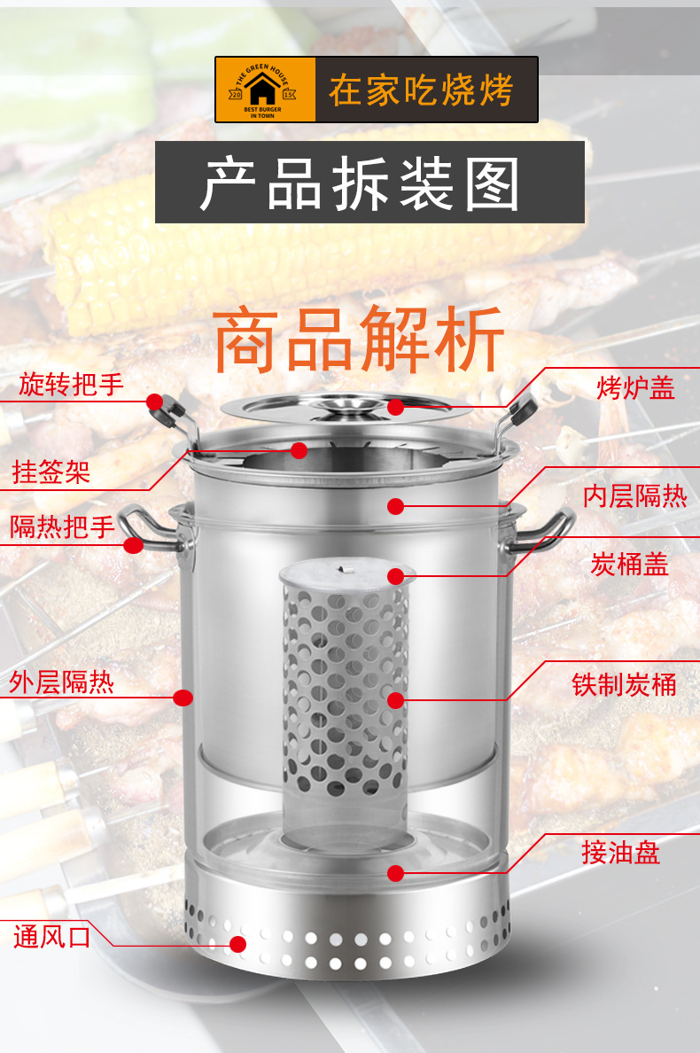 무연 바베큐 스토브 가정용 바베큐 그릴 야외 트랙 바베큐 휴대용 숯 매달려 스토브 스테인레스 스틸 바베큐 랙스토어 가기