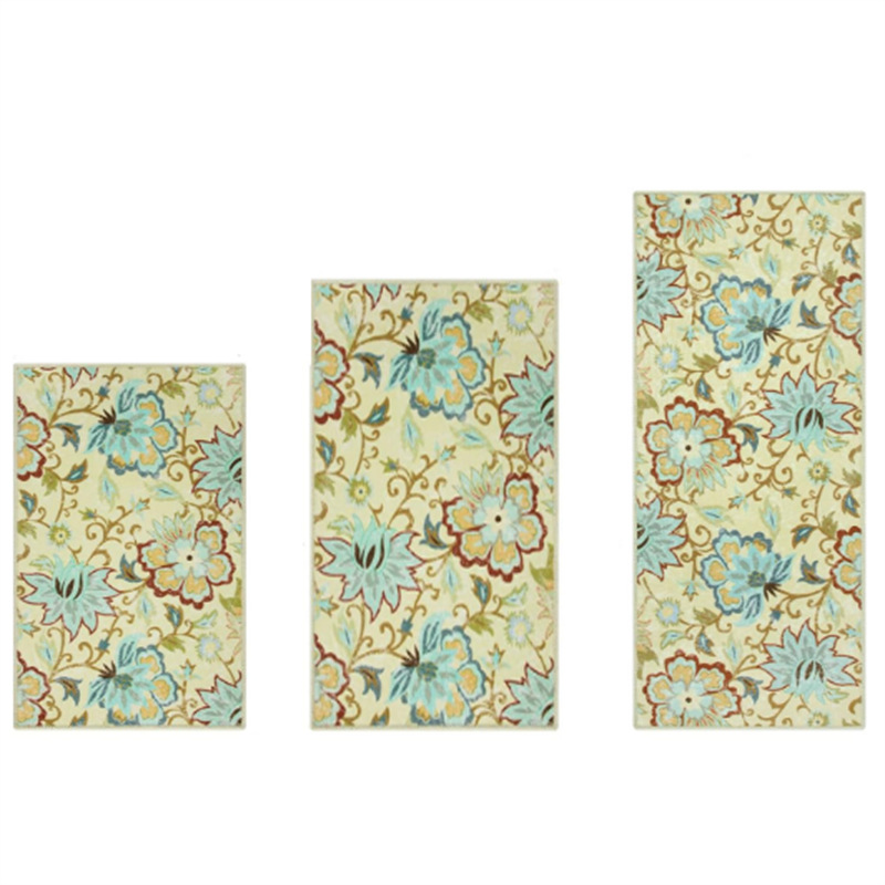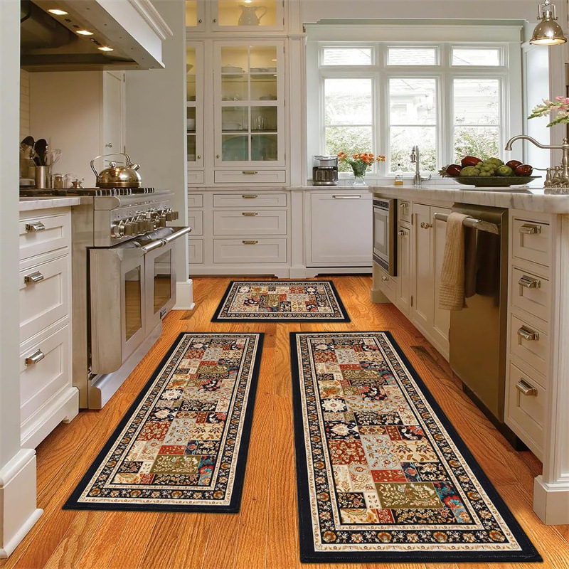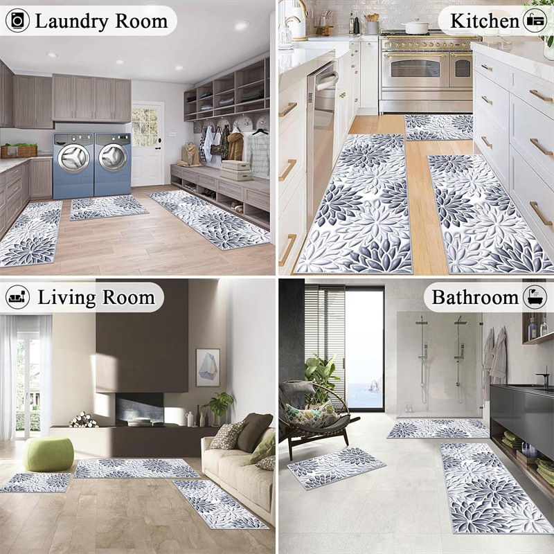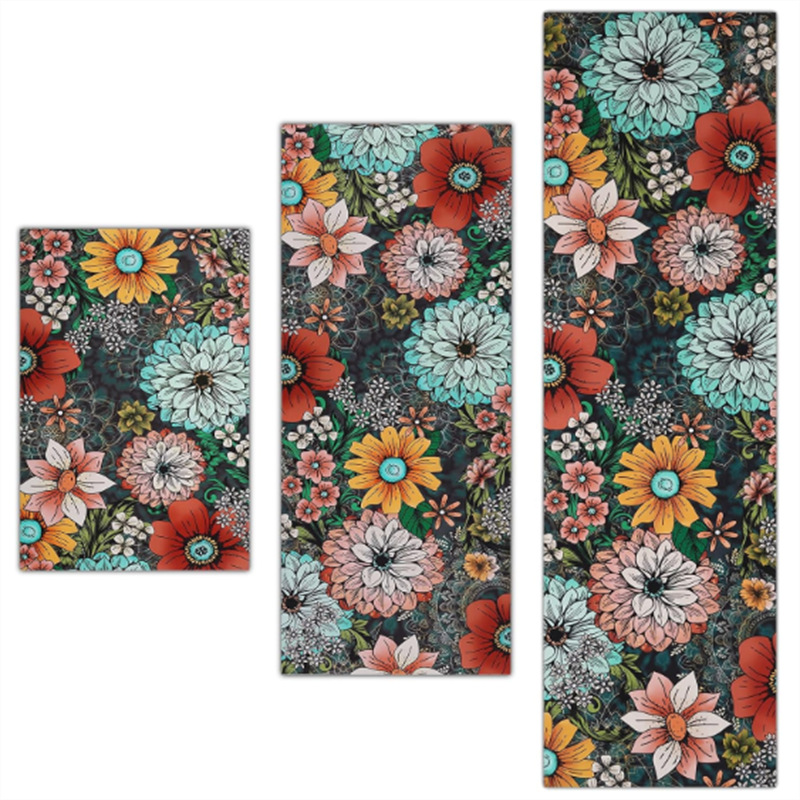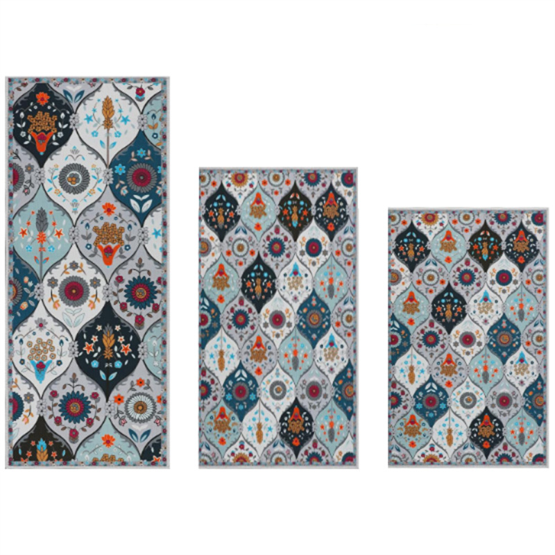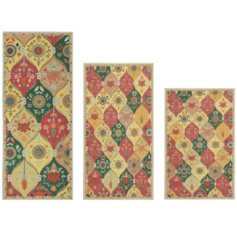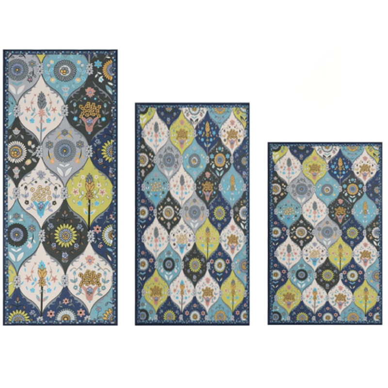 국경 간 페르시아 Luoshen 꽃 거실 3 피스 카펫 미끄럼 방지 침실 침실 침실 담요 소파 매트 간편한 케어 플로어 매트