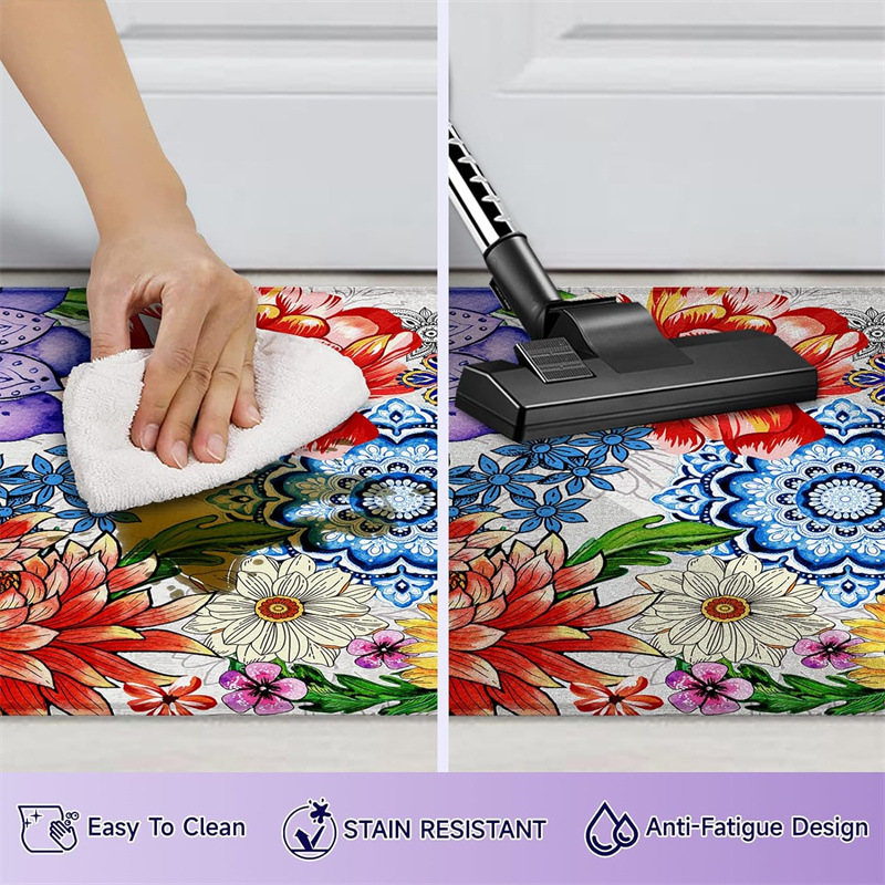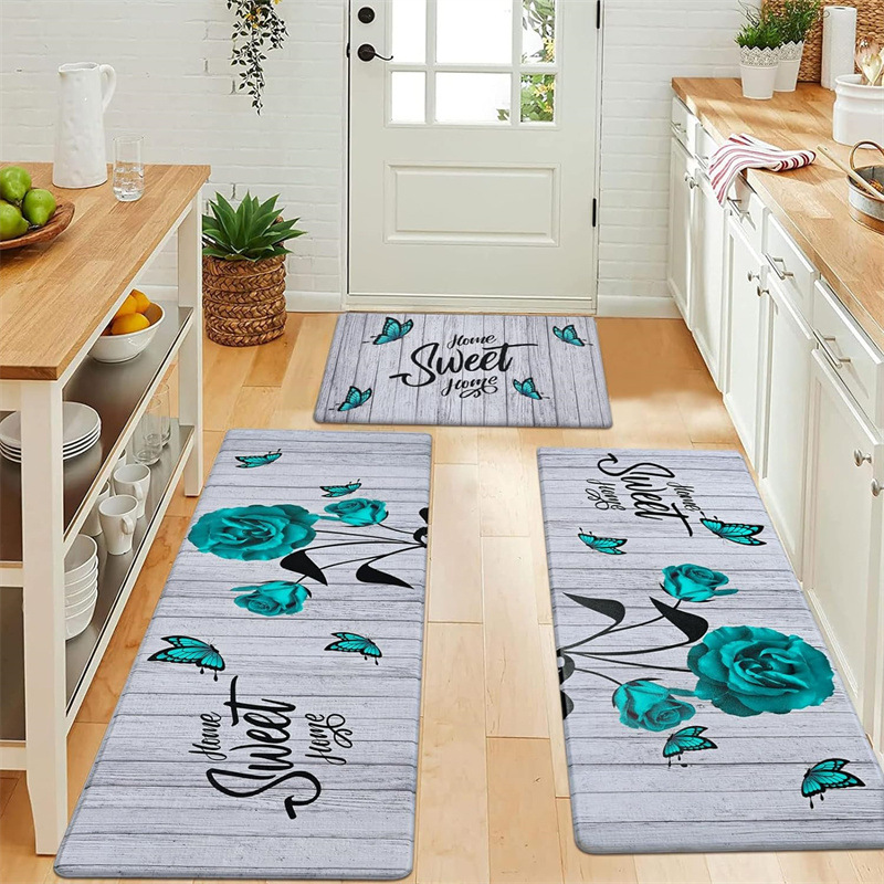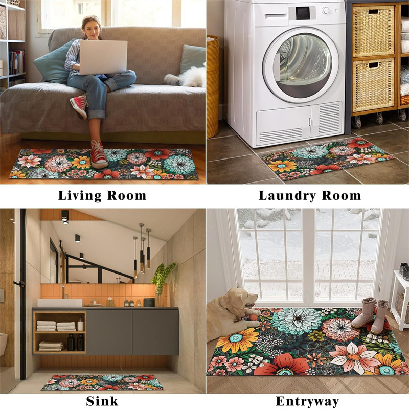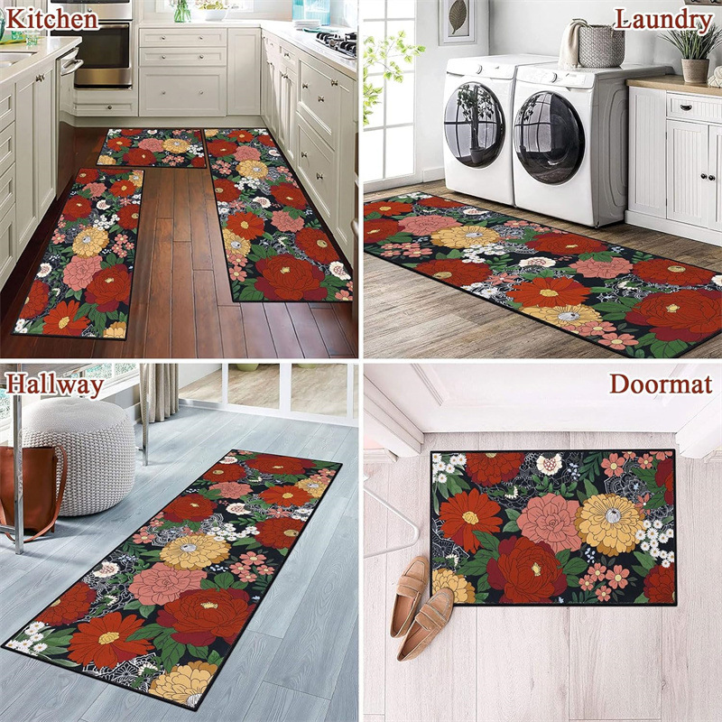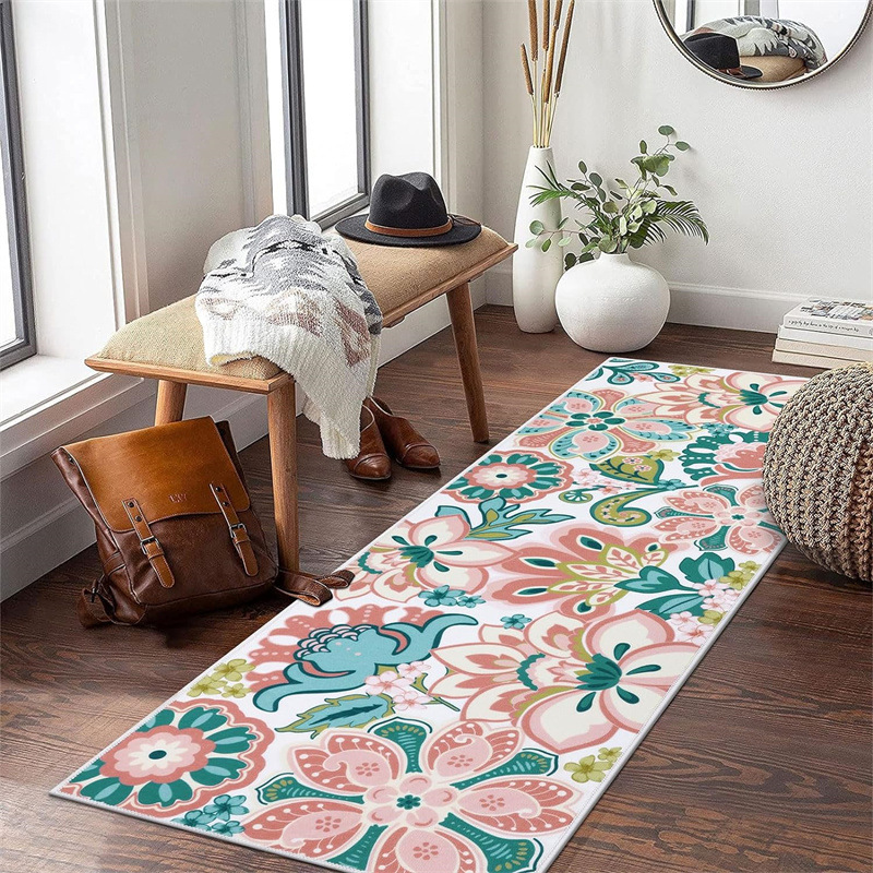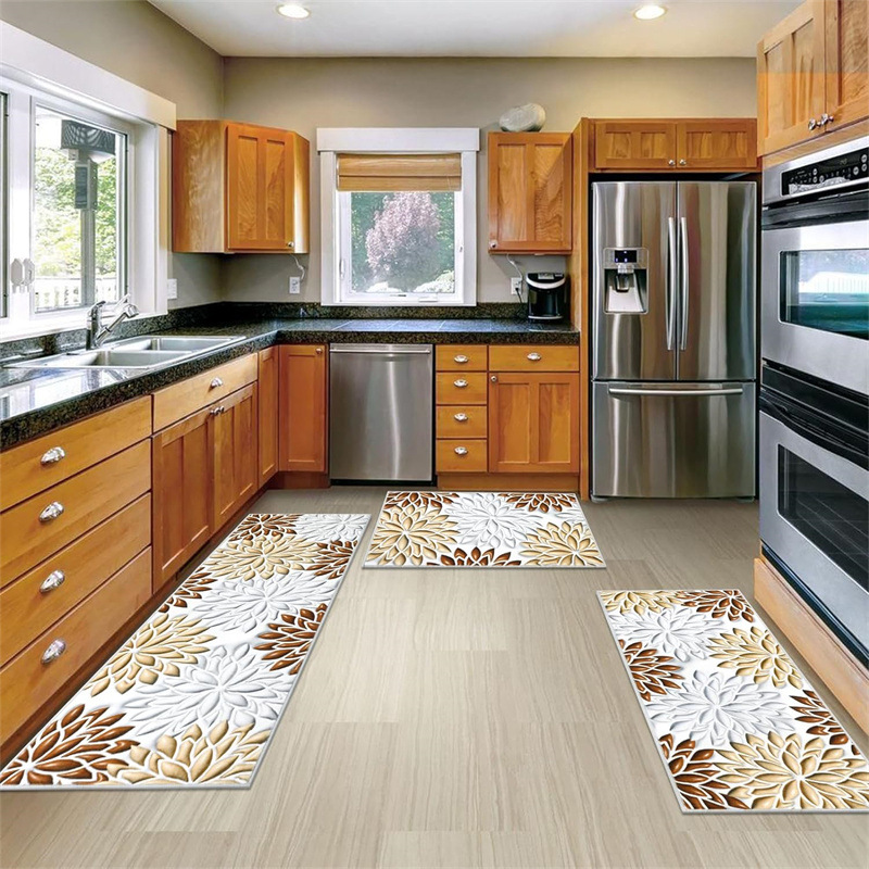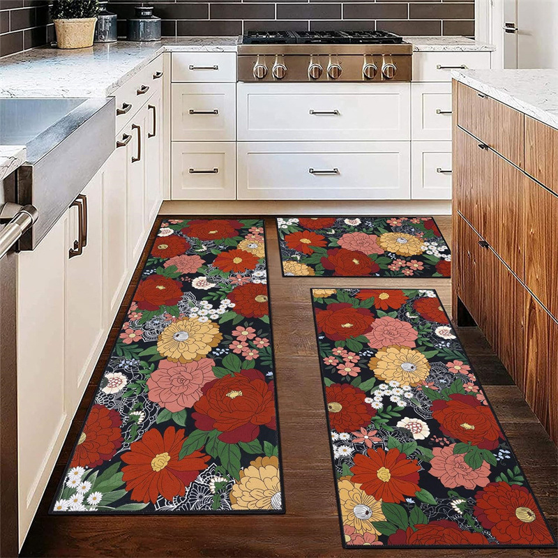 국경 간 페르시아 Luoshen 꽃 거실 3 피스 카펫 미끄럼 방지 침실 침실 침실 담요 소파 매트 간편한 케어 플로어 매트