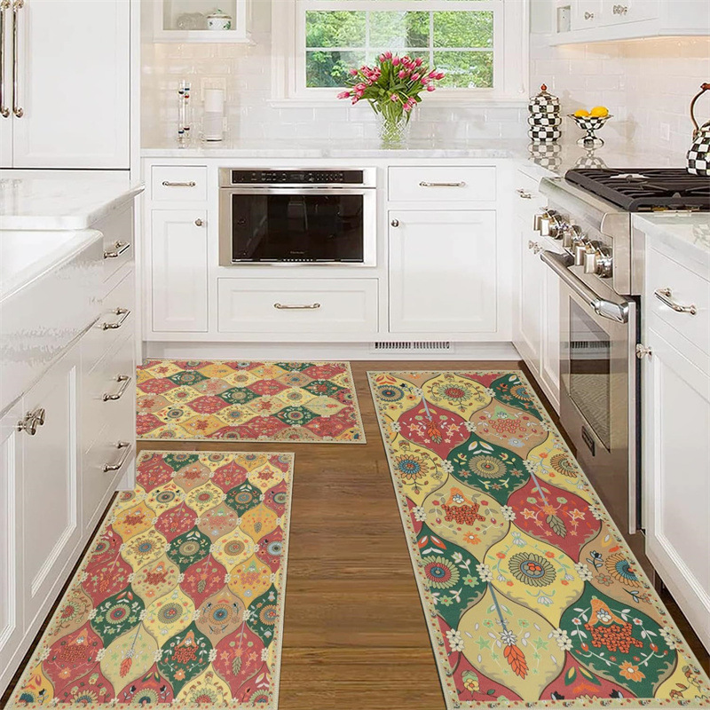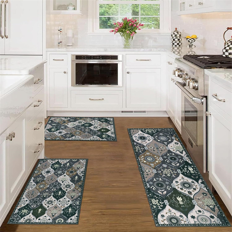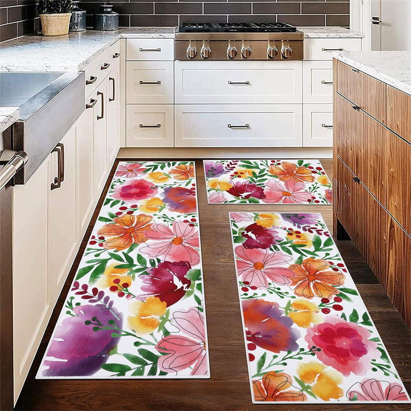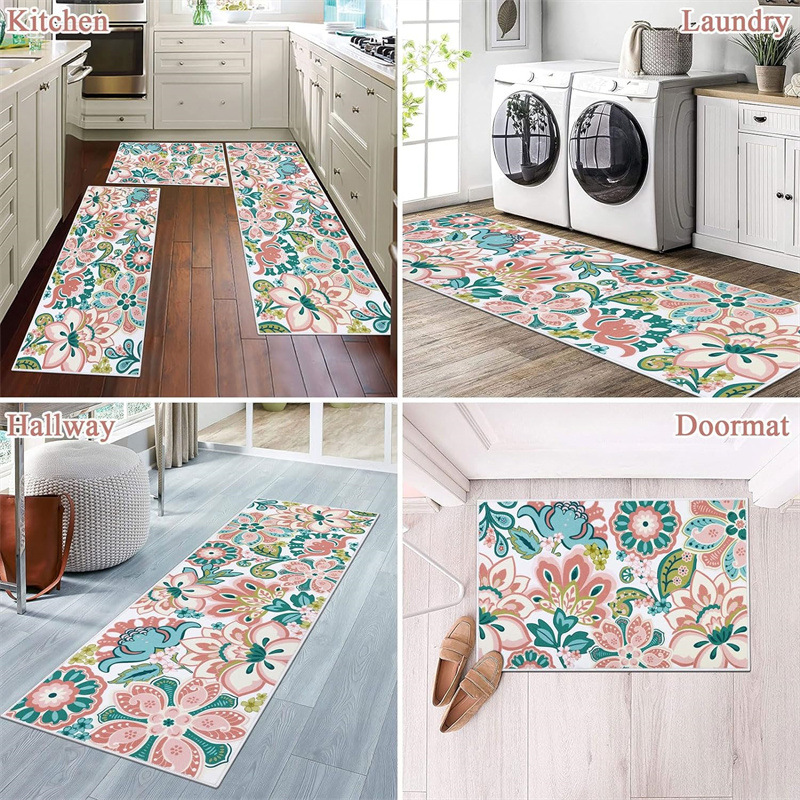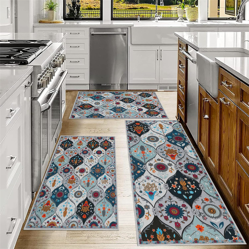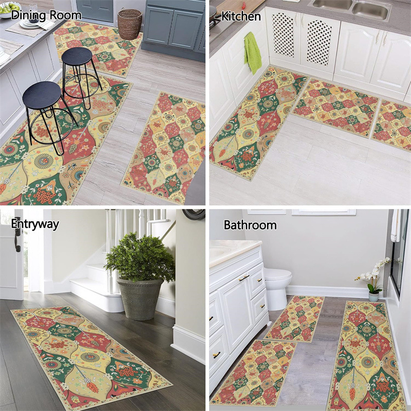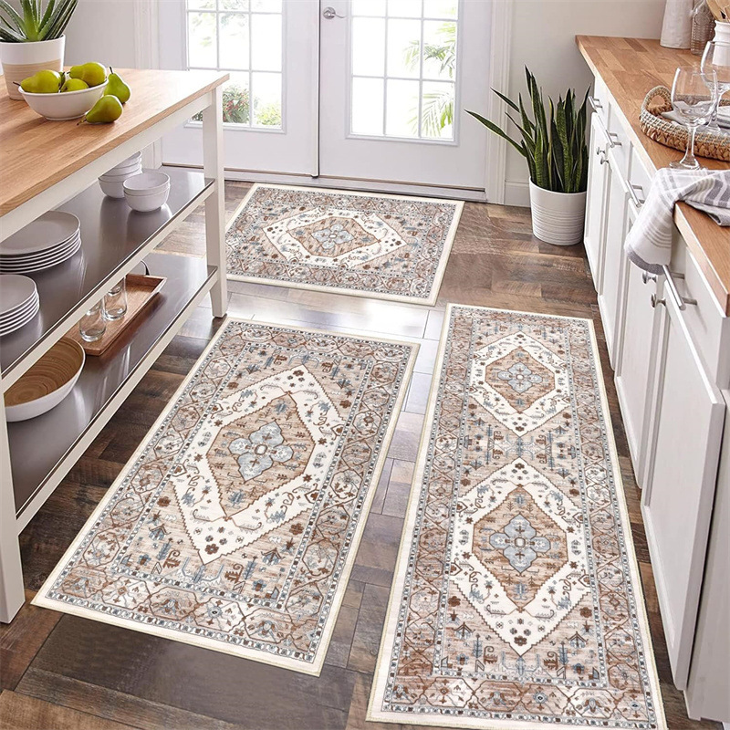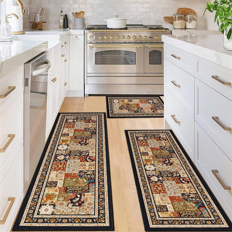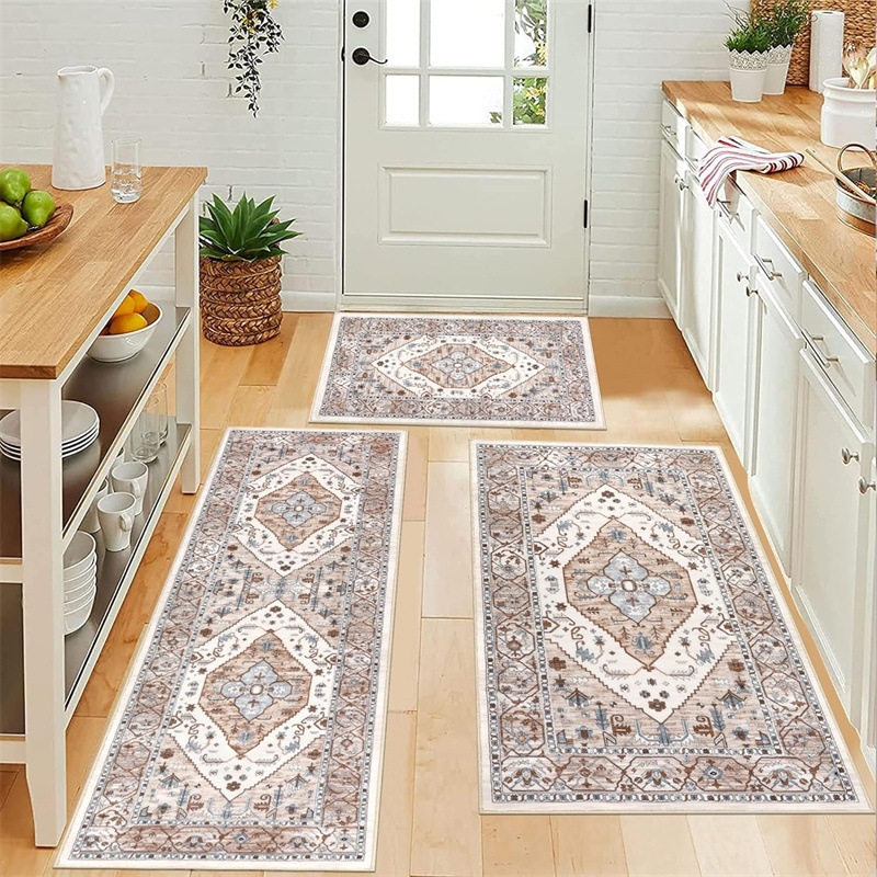 국경 간 페르시아 Luoshen 꽃 거실 3 피스 카펫 미끄럼 방지 침실 침실 침실 담요 소파 매트 간편한 케어 플로어 매트스토어 가기
