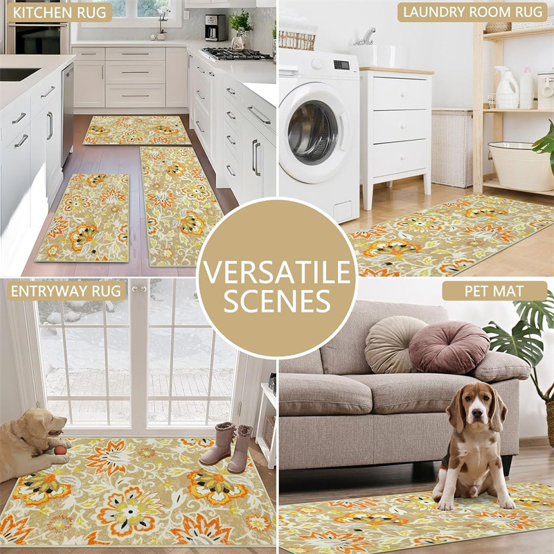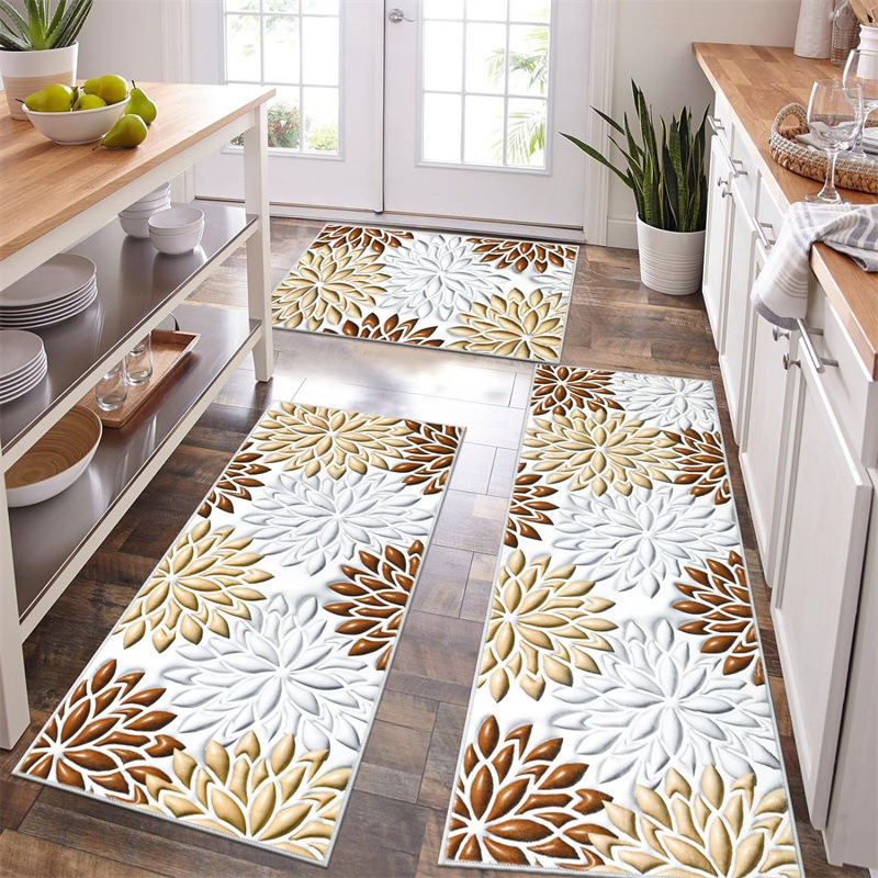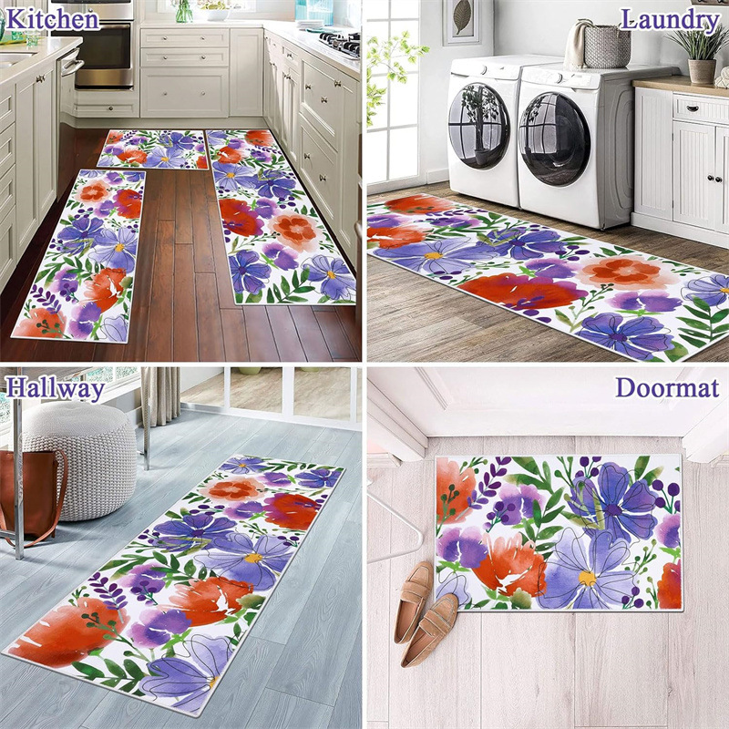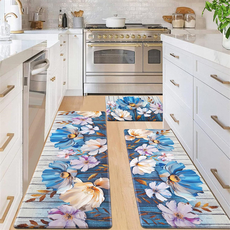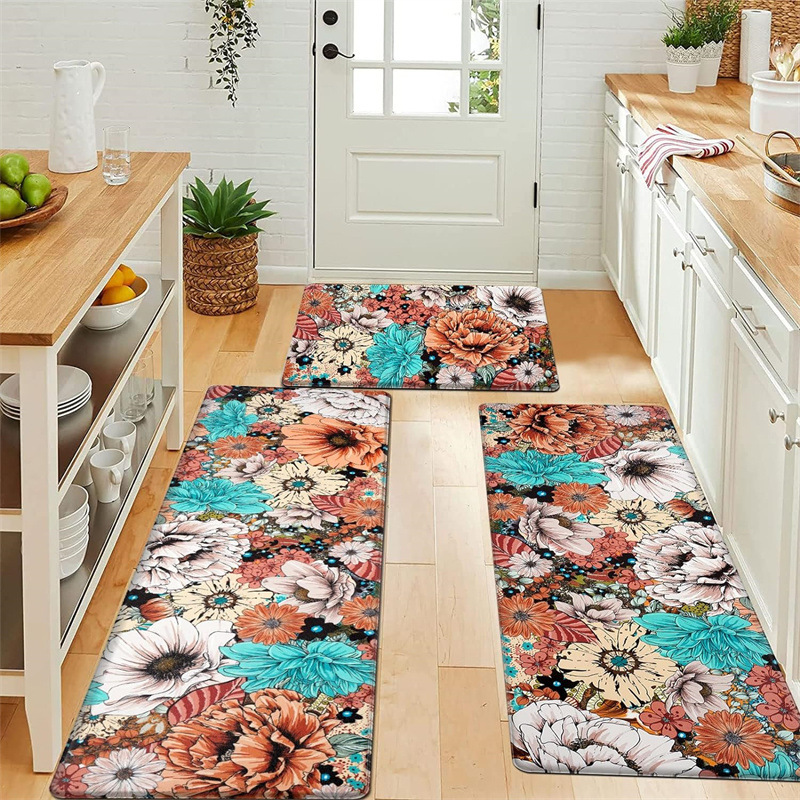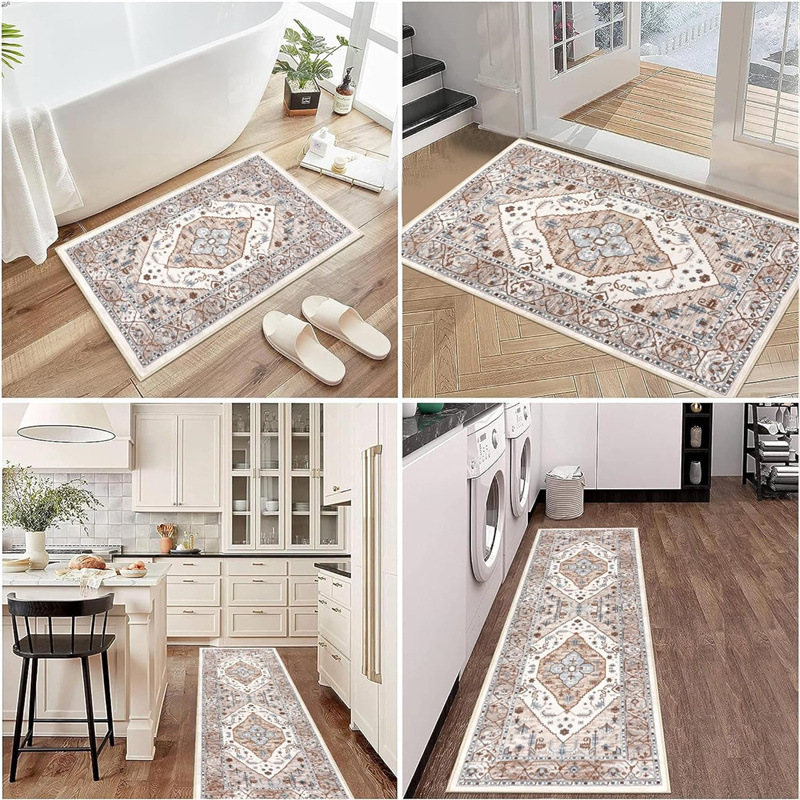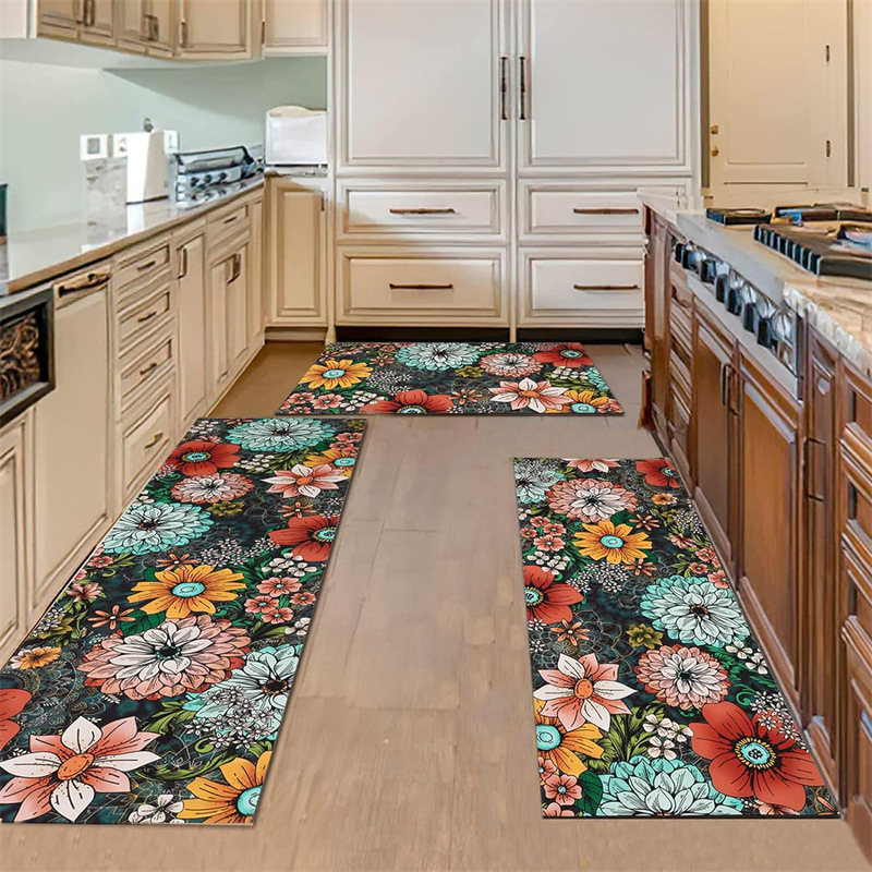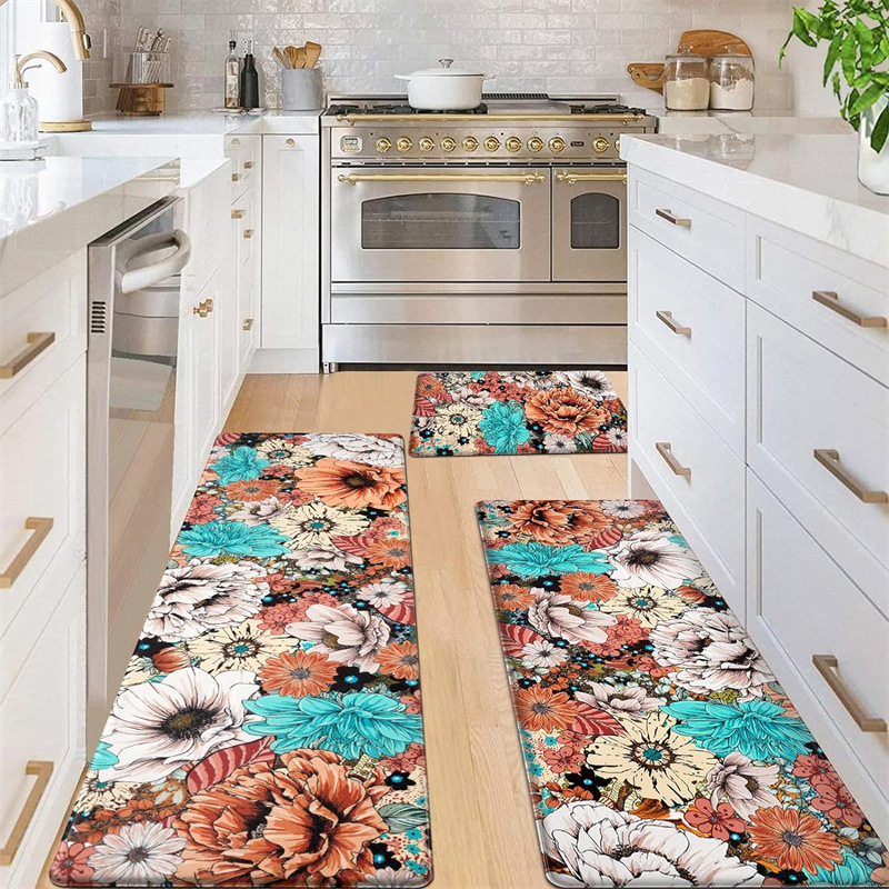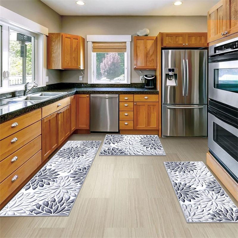 국경 간 페르시아 Luoshen 꽃 거실 3 피스 카펫 미끄럼 방지 침실 침실 침실 담요 소파 매트 간편한 케어 플로어 매트스토어 가기